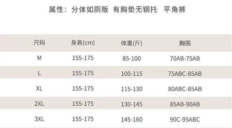| size m [suitable for 42.50 kg-50.00 kg]](M码【适合85-100斤】) | USD $7.46 | 99999 piece available |