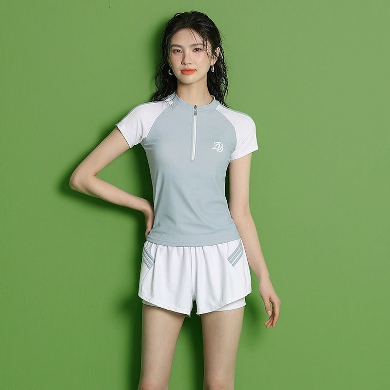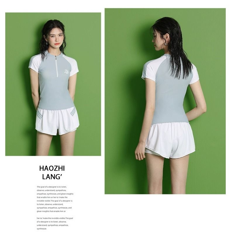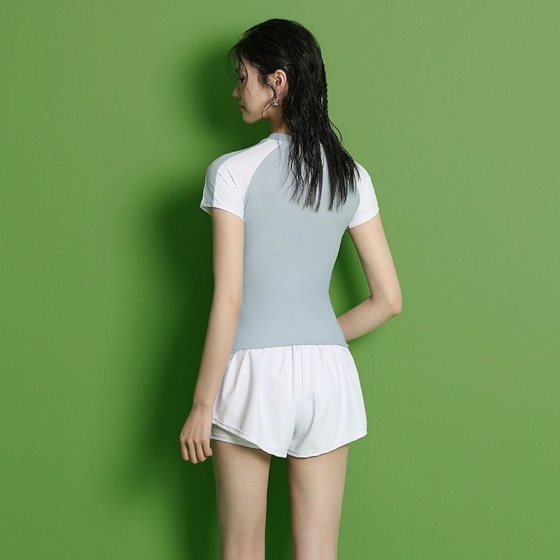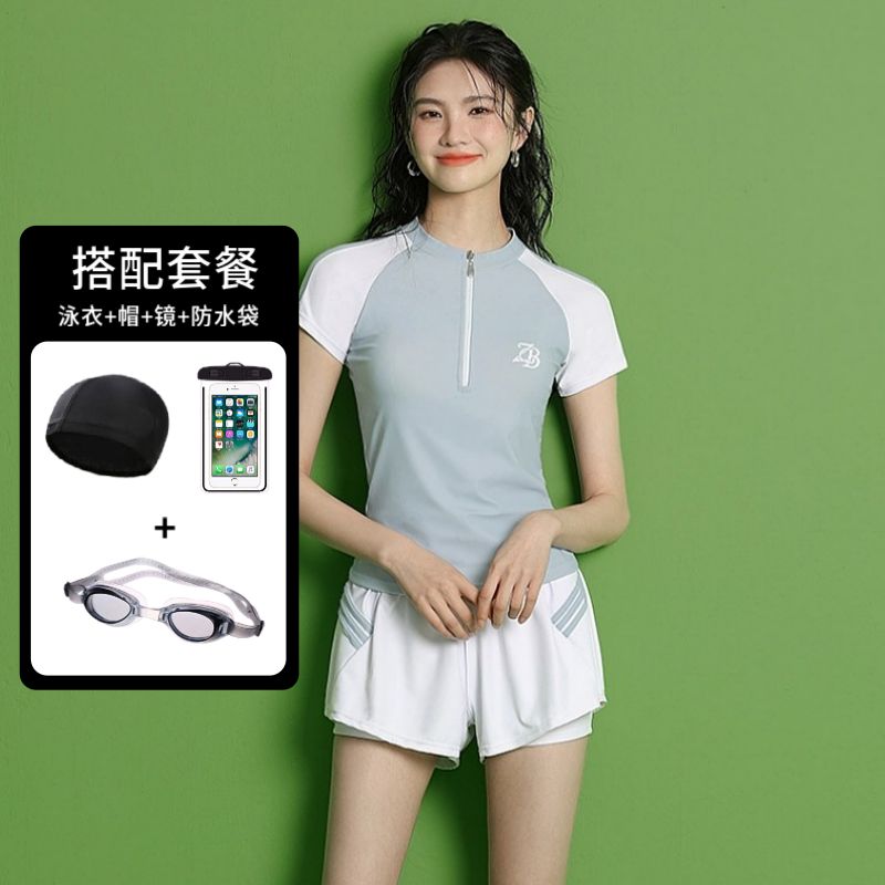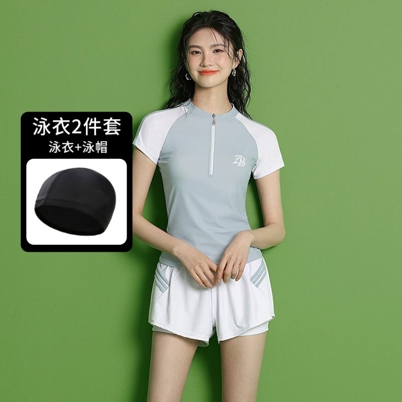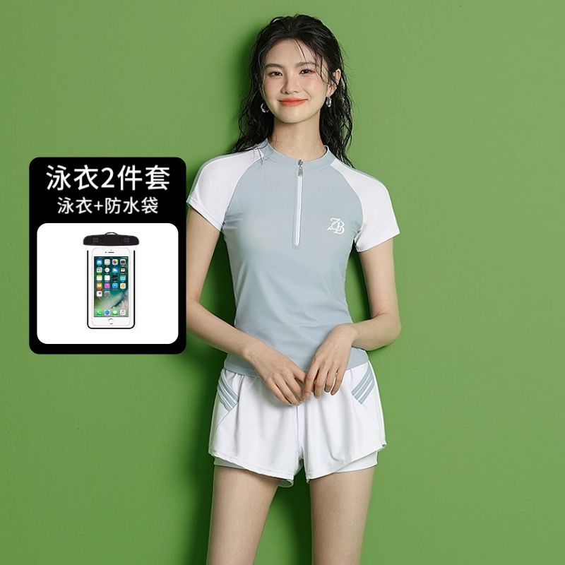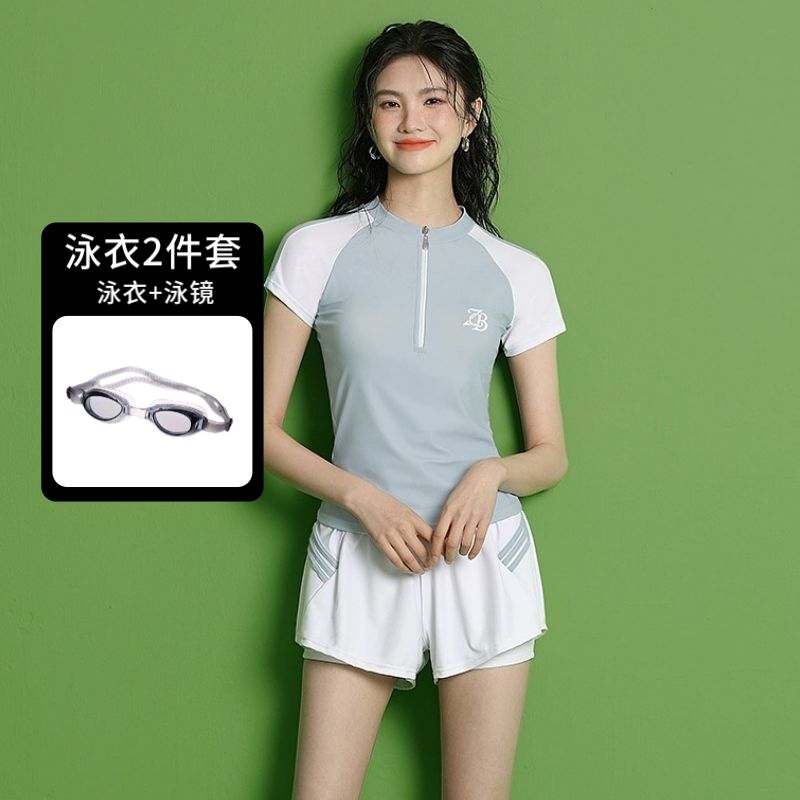 韩国ins风游泳衣女分体式两件套2024新款保守遮肚显瘦运动风泳装
