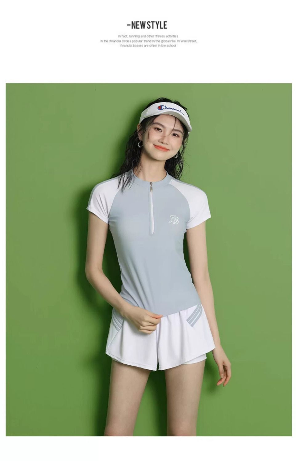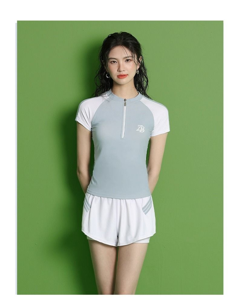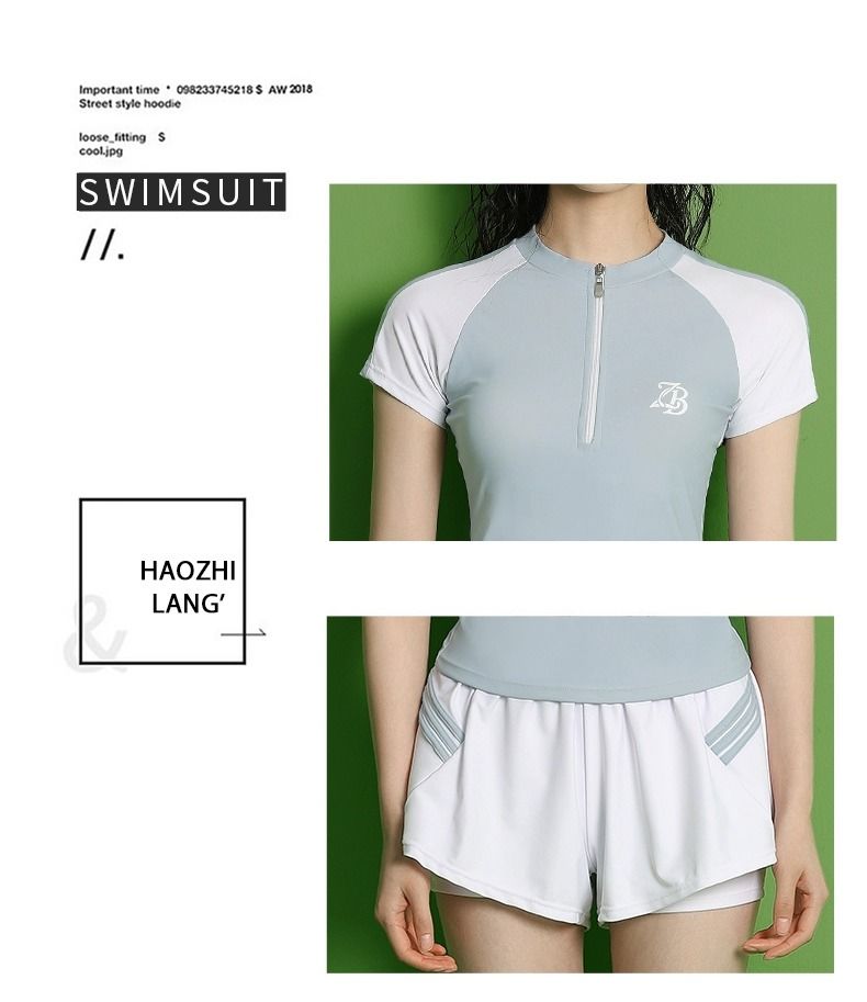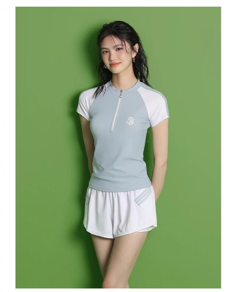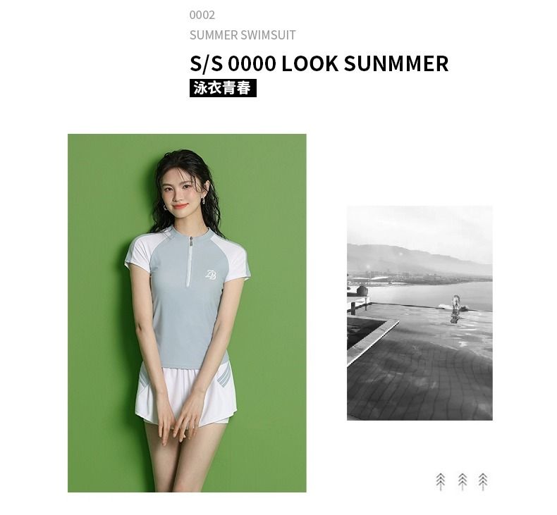 韩国ins风游泳衣女分体式两件套2024新款保守遮肚显瘦运动风泳装