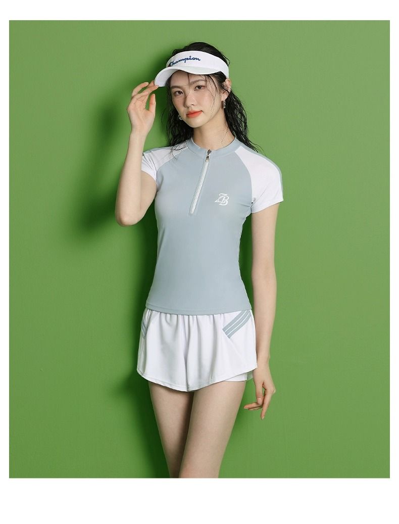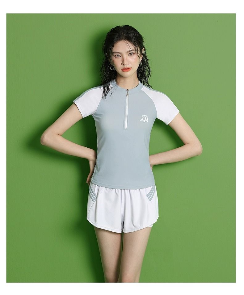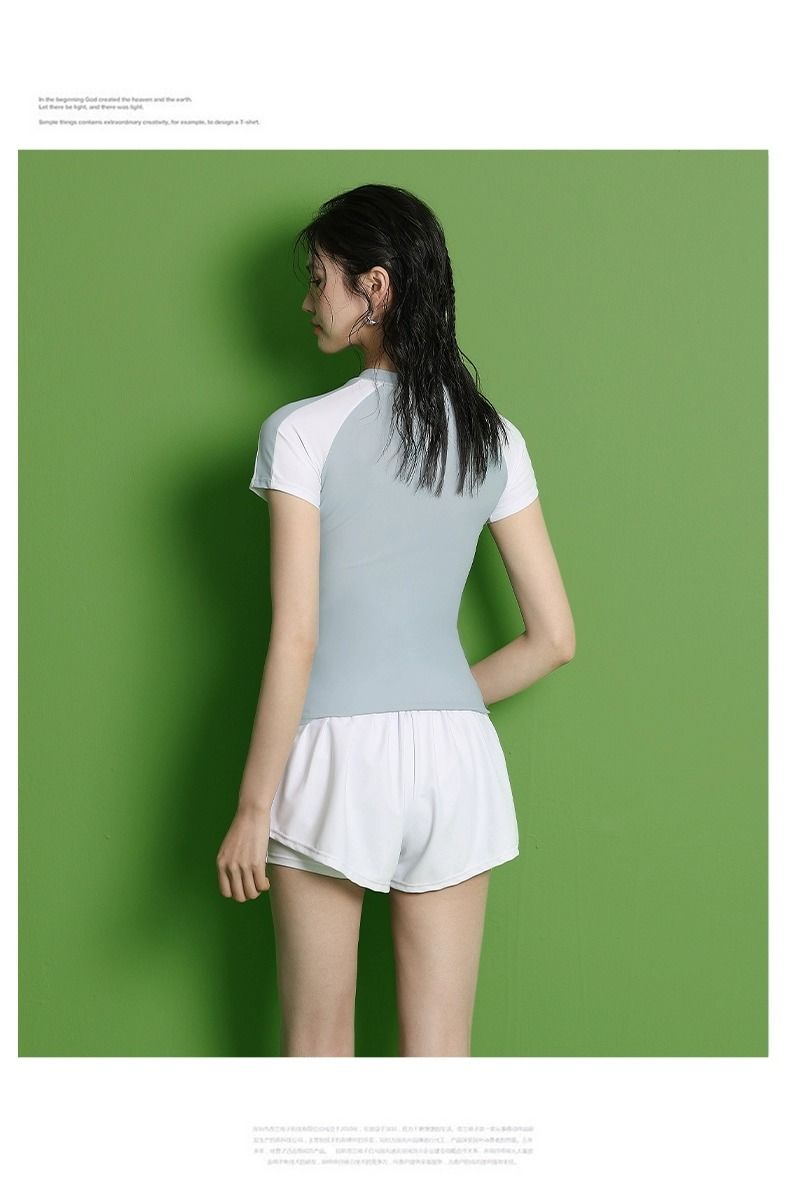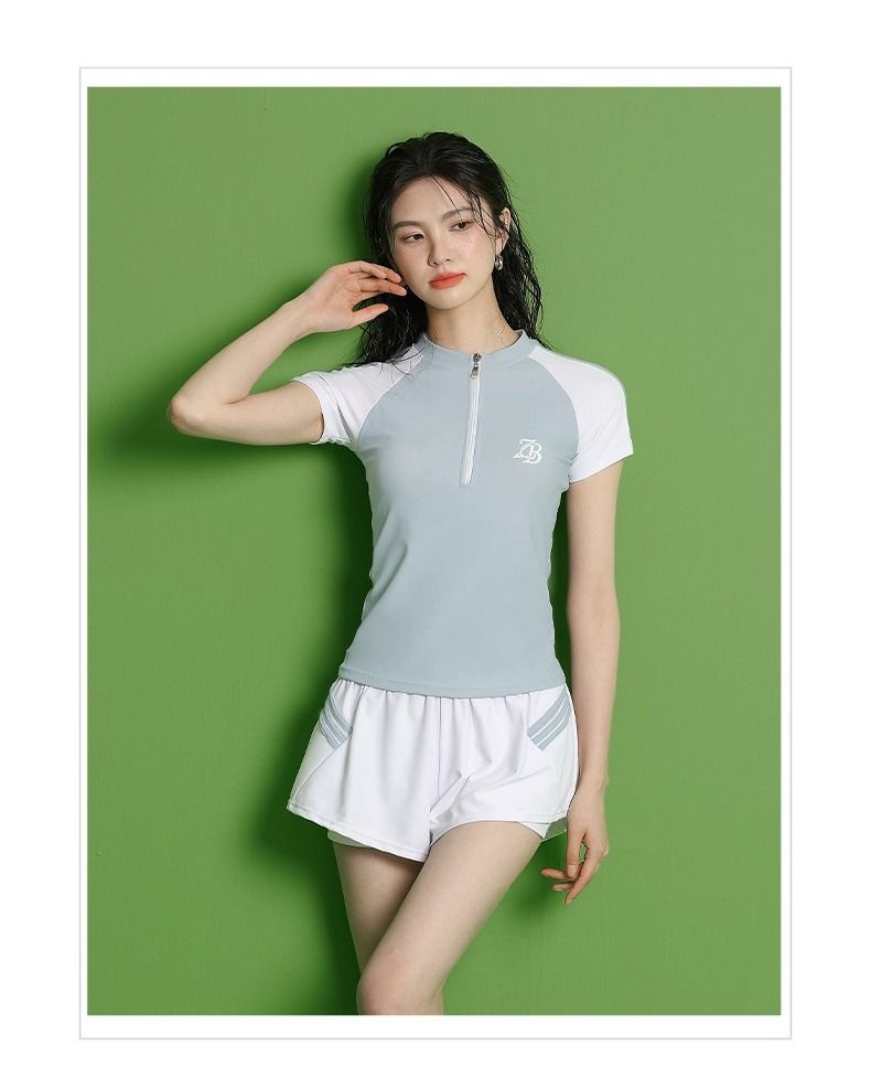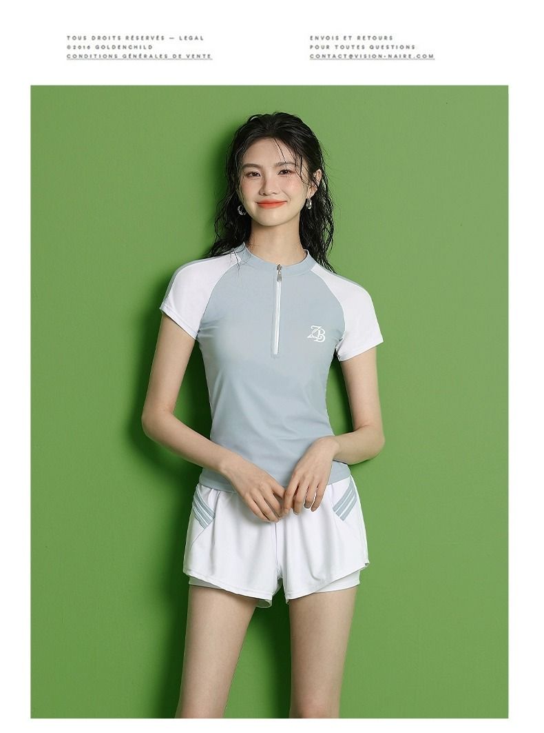 韩国ins风游泳衣女分体式两件套2024新款保守遮肚显瘦运动风泳装