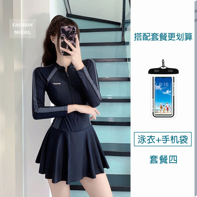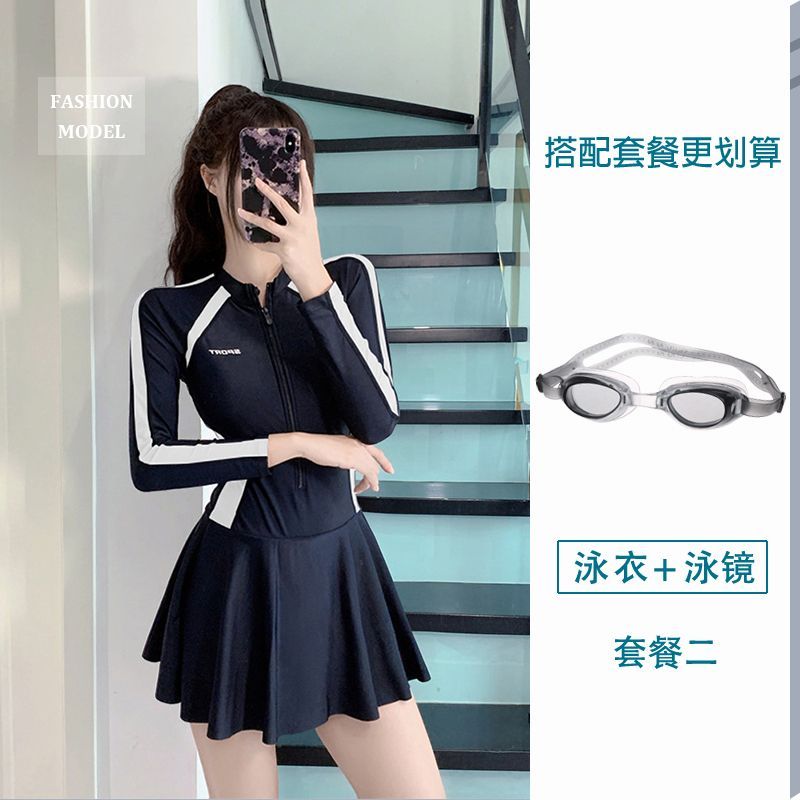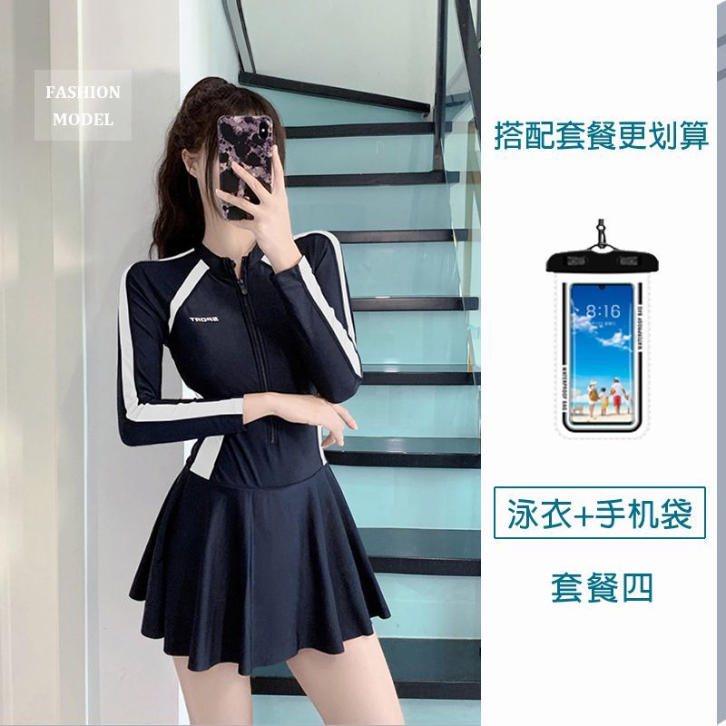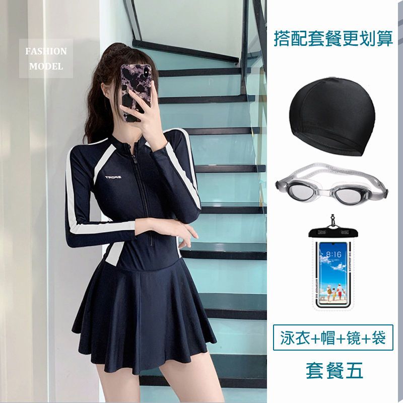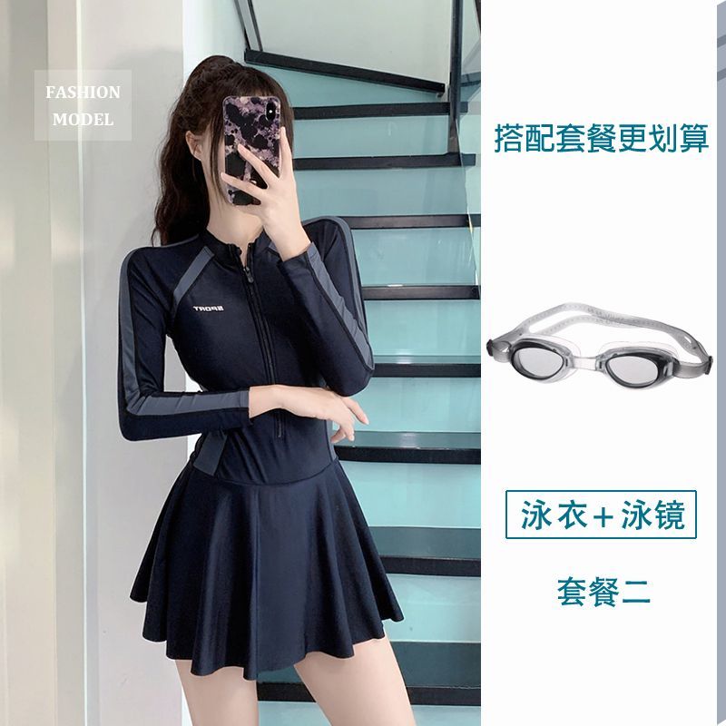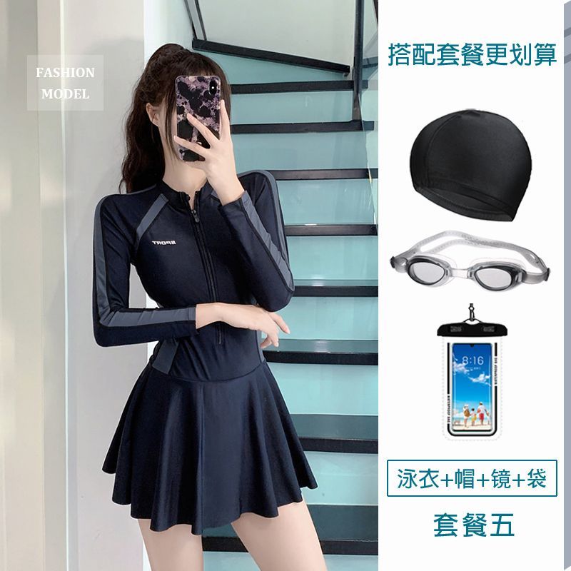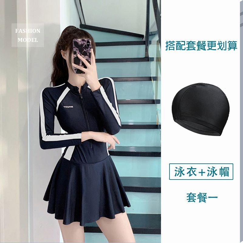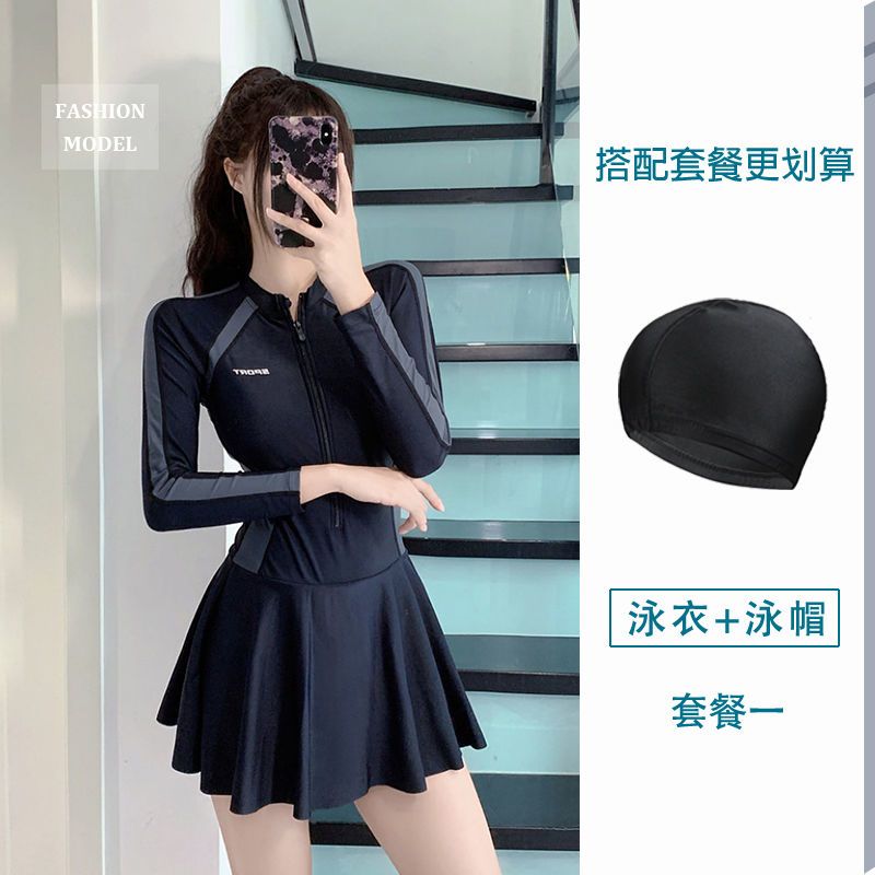 大码泳衣女2024新款连体长袖遮肚显瘦专业运动训练学生温泉游泳衣