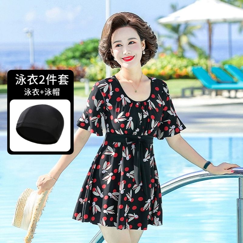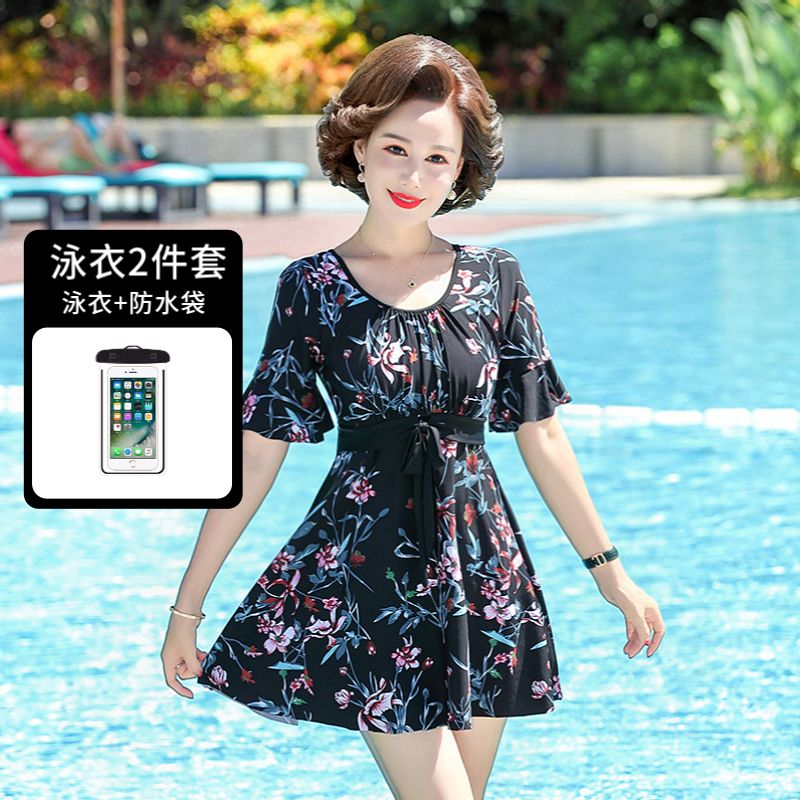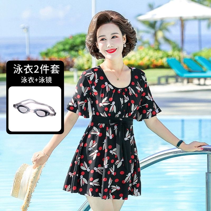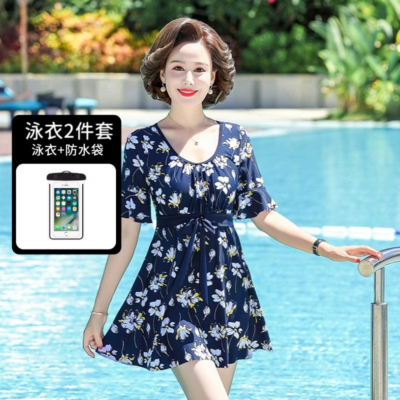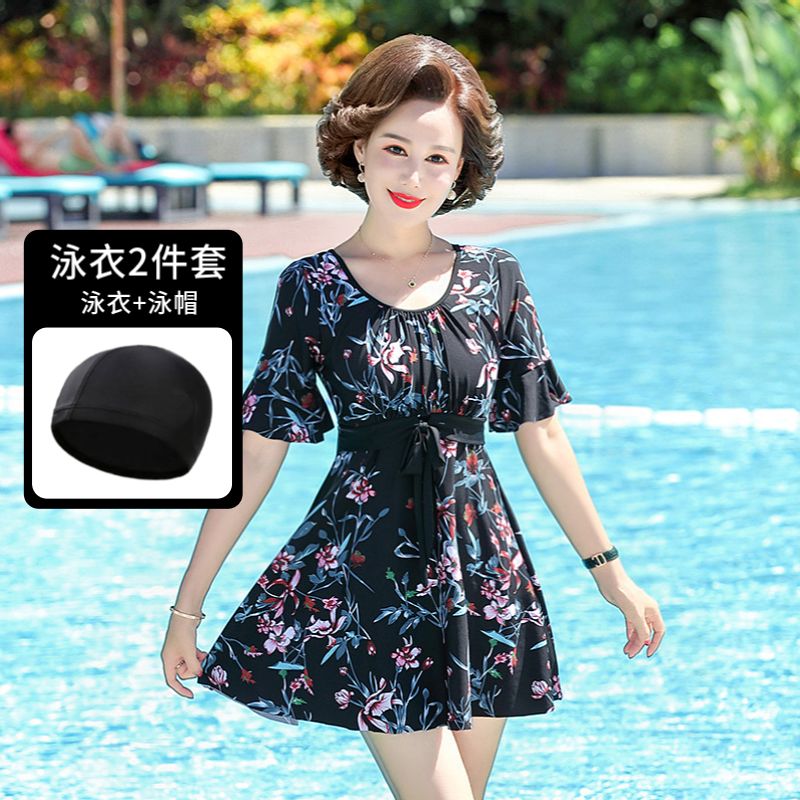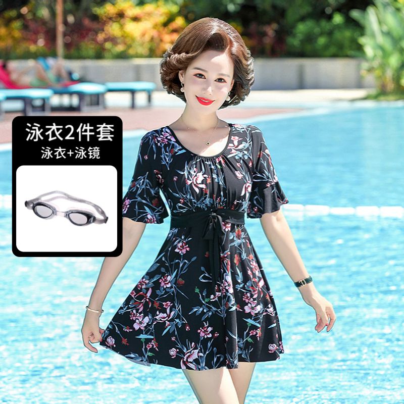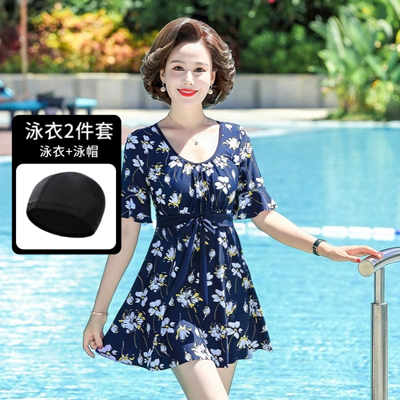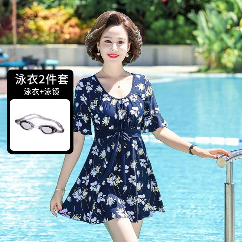 中老年人泳衣女2024新款连体宽松保守大码泡温泉遮肚胖mm显瘦泳装