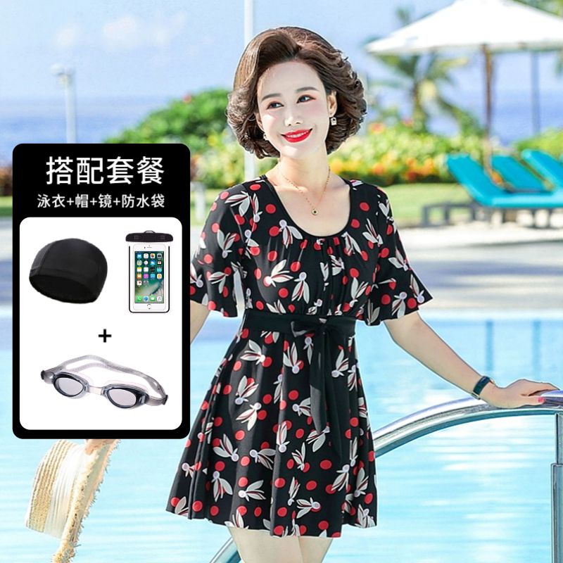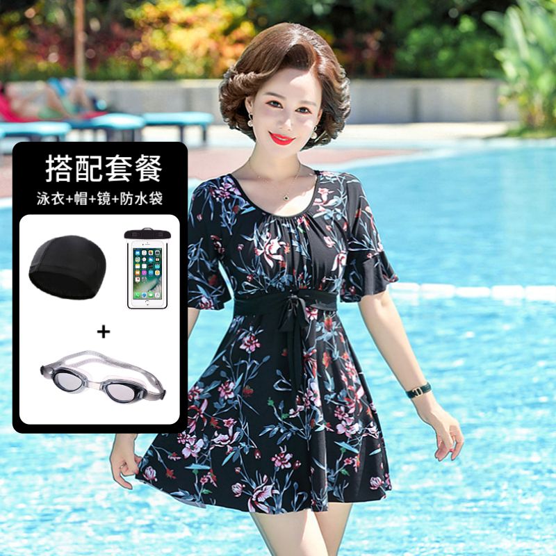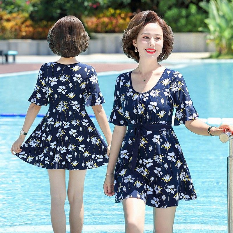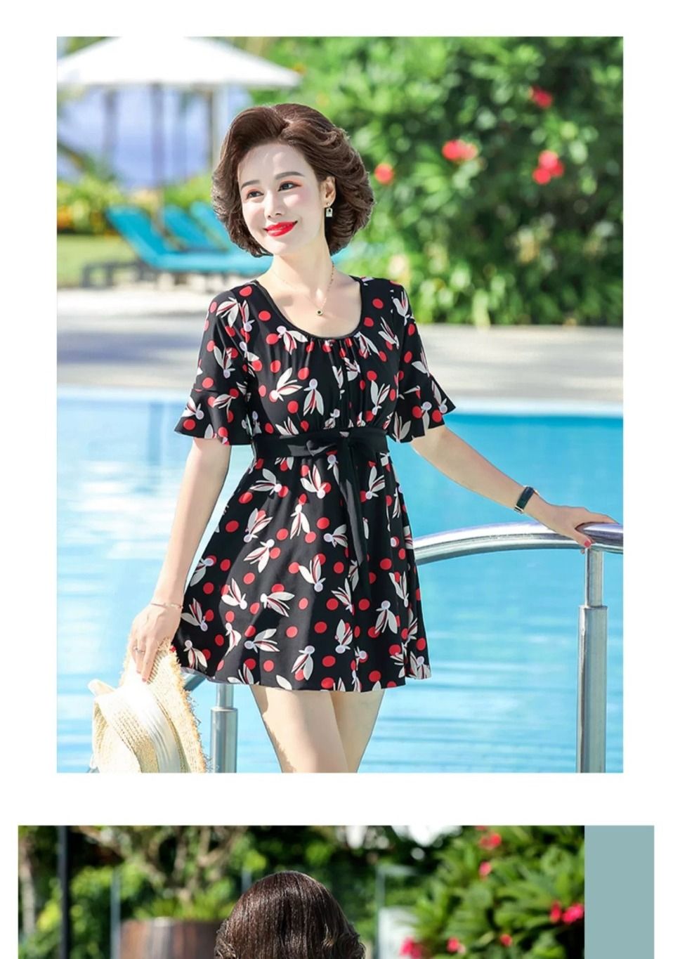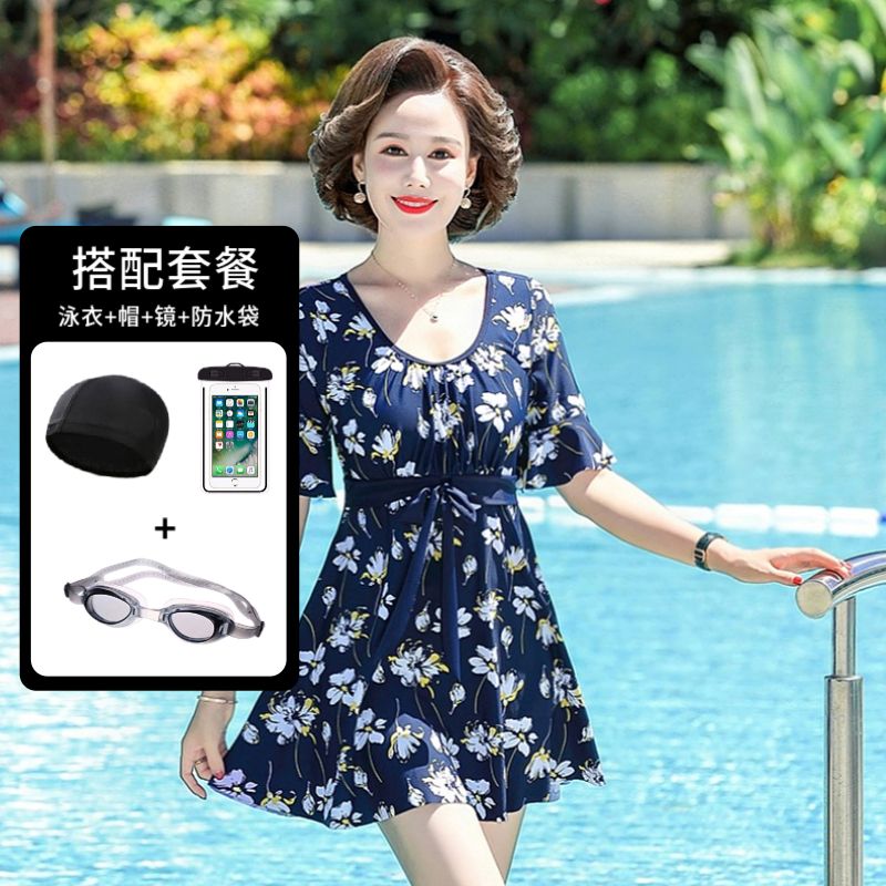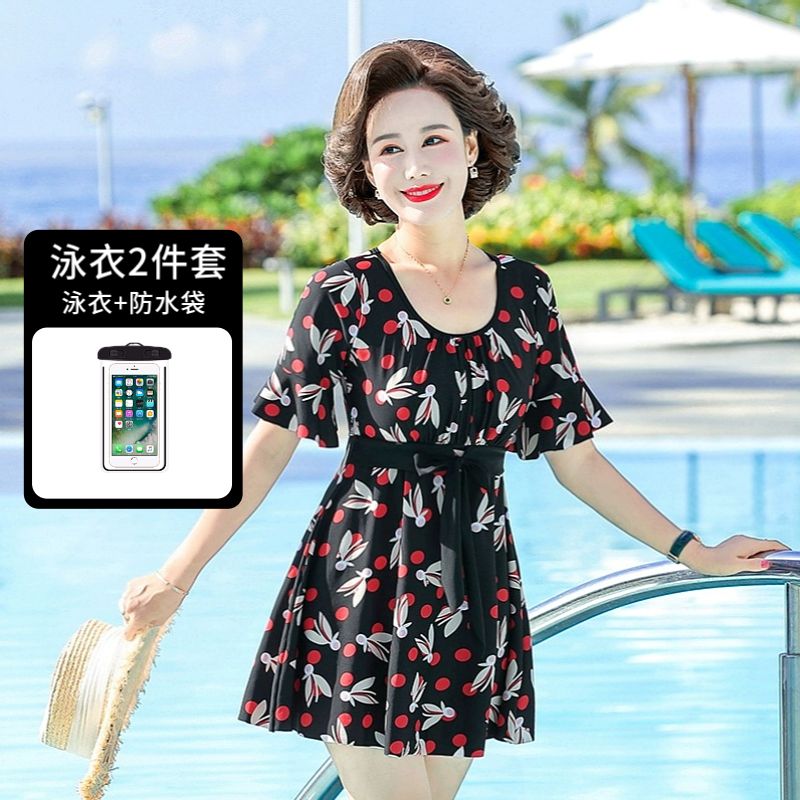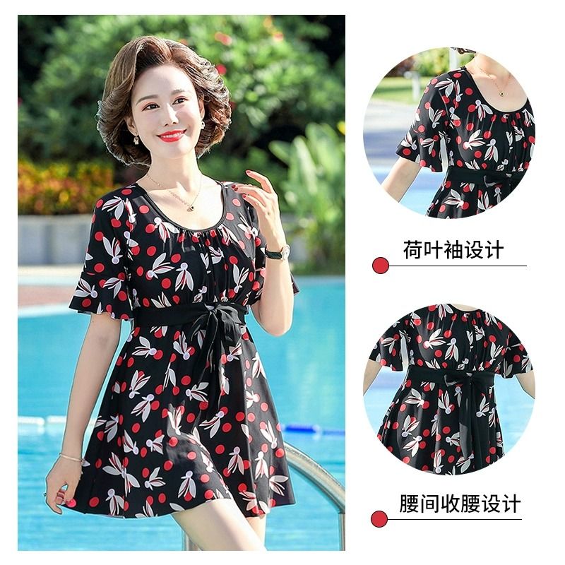 中老年人泳衣女2024新款连体宽松保守大码泡温泉遮肚胖mm显瘦泳装