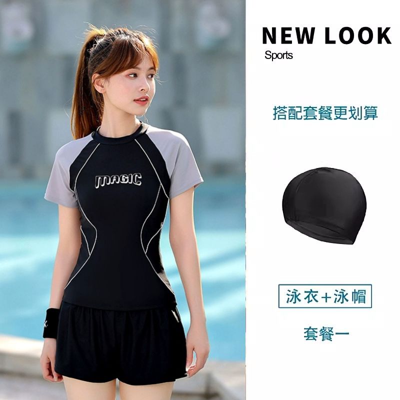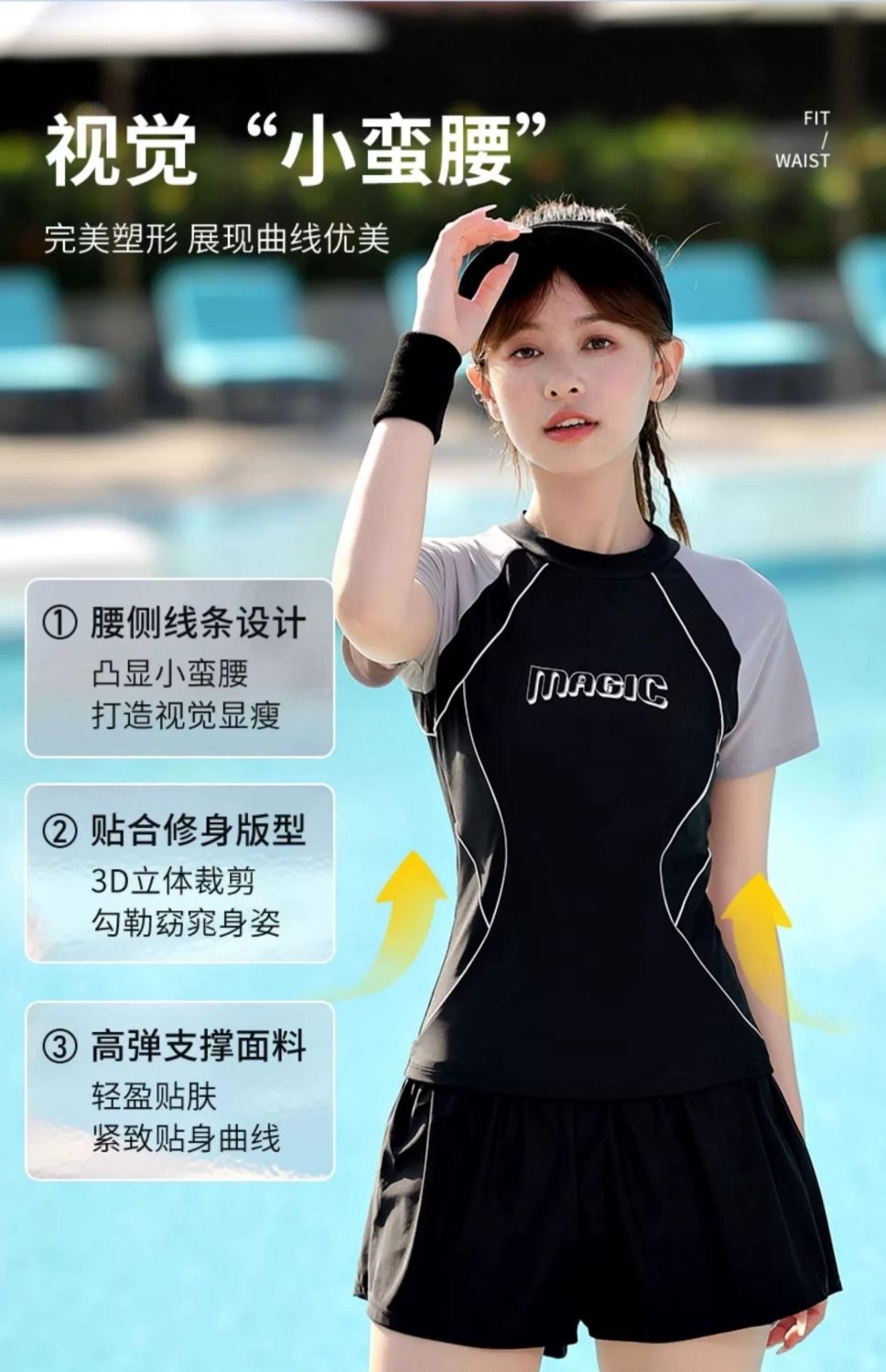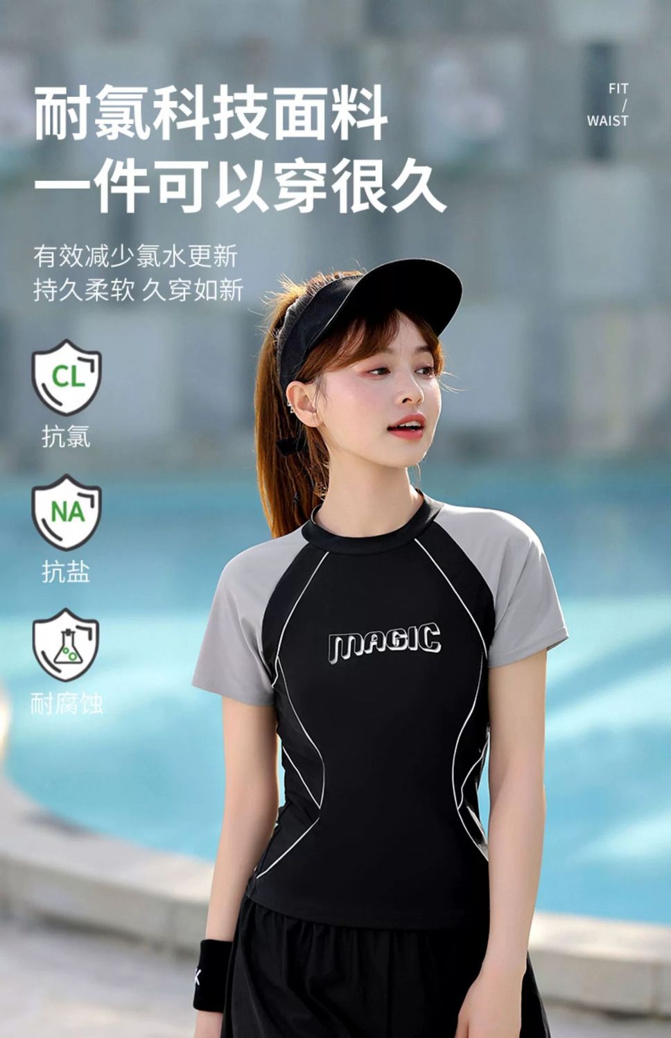 分体运动风泳衣女2024新款小清新修身显瘦遮肚速干防走光游泳泳装