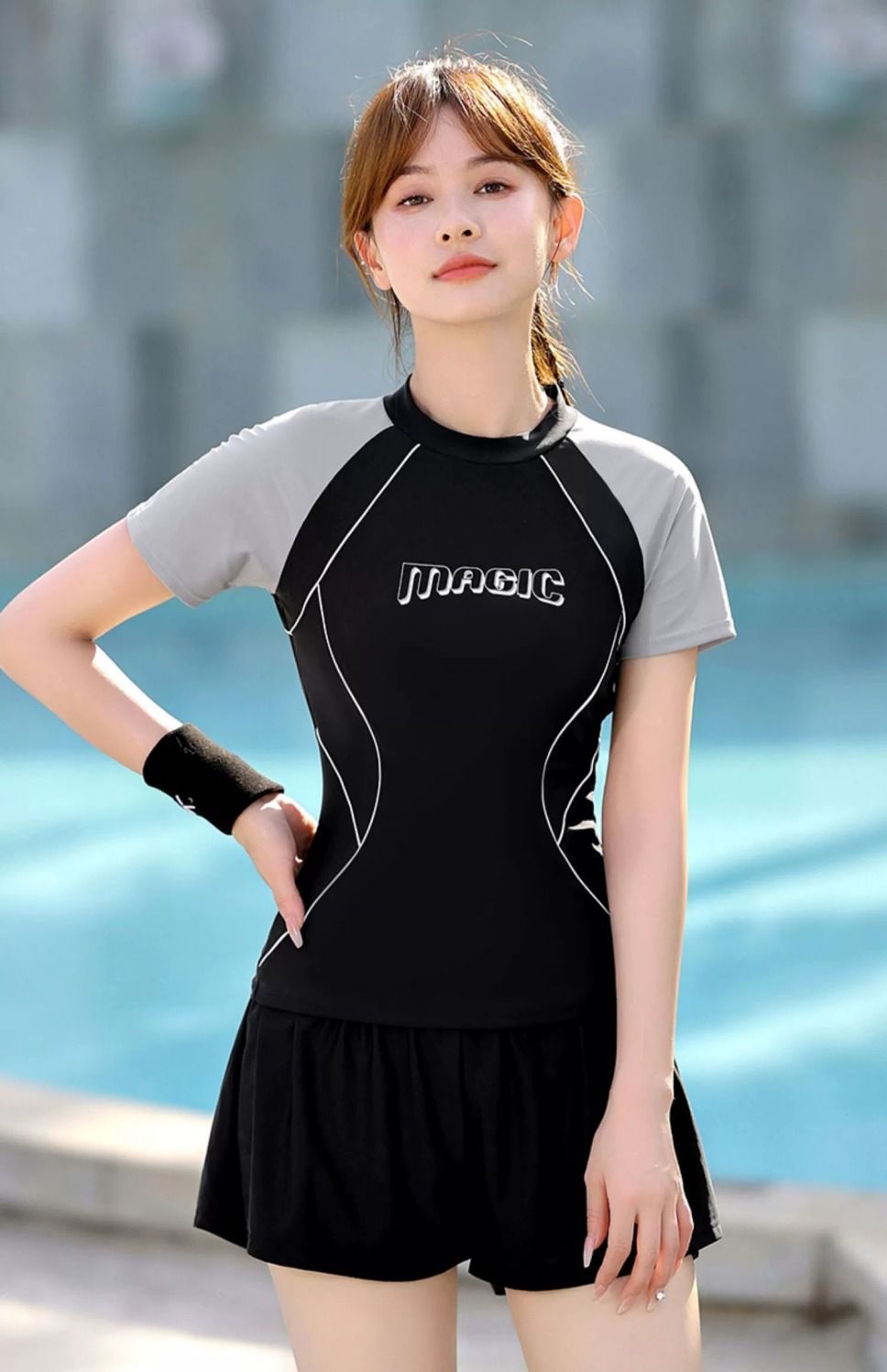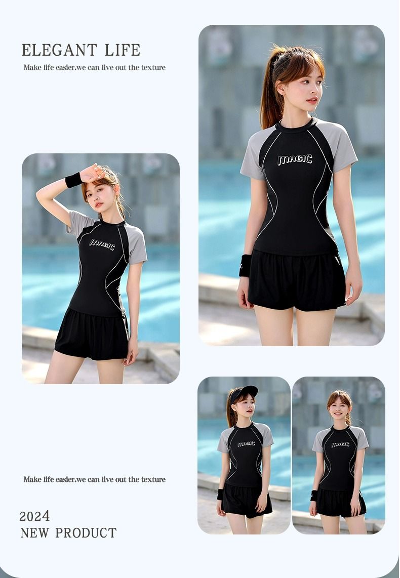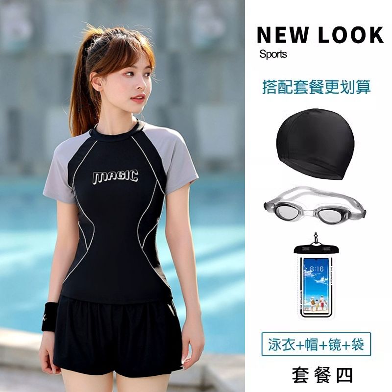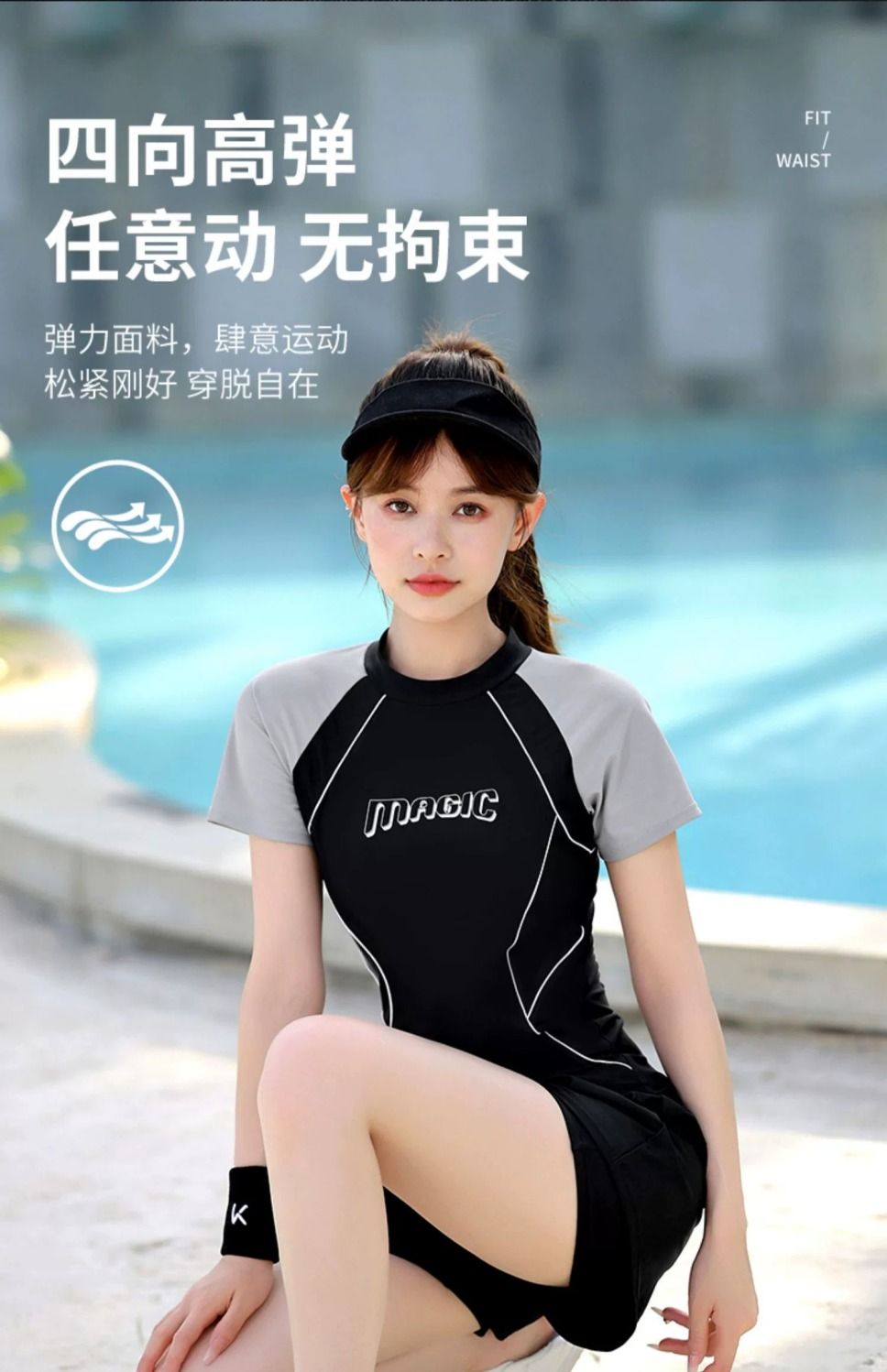 分体运动风泳衣女2024新款小清新修身显瘦遮肚速干防走光游泳泳装