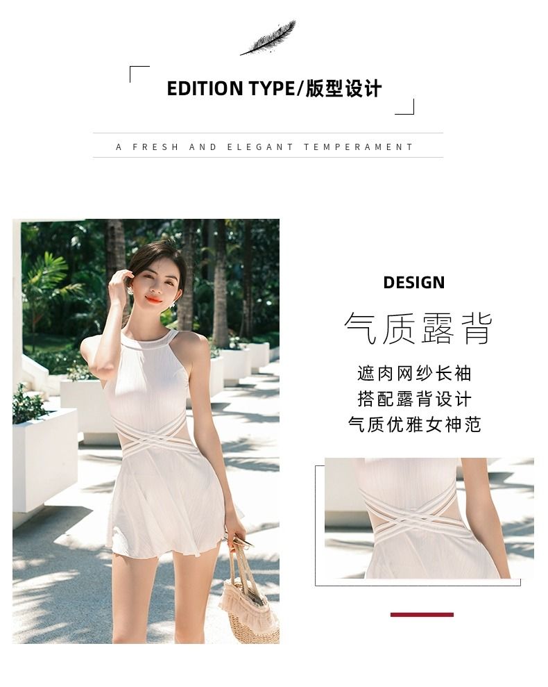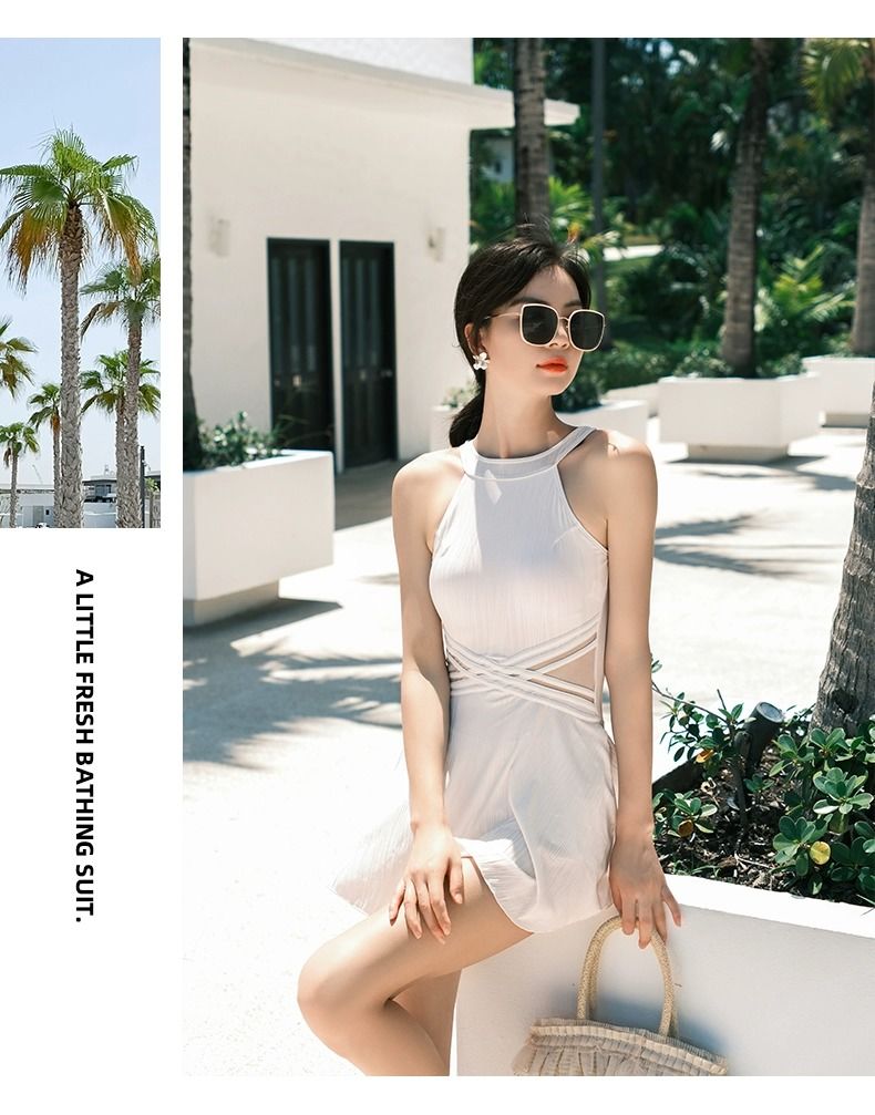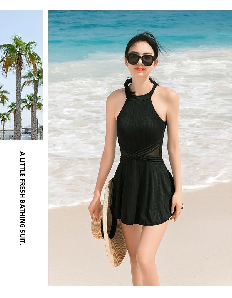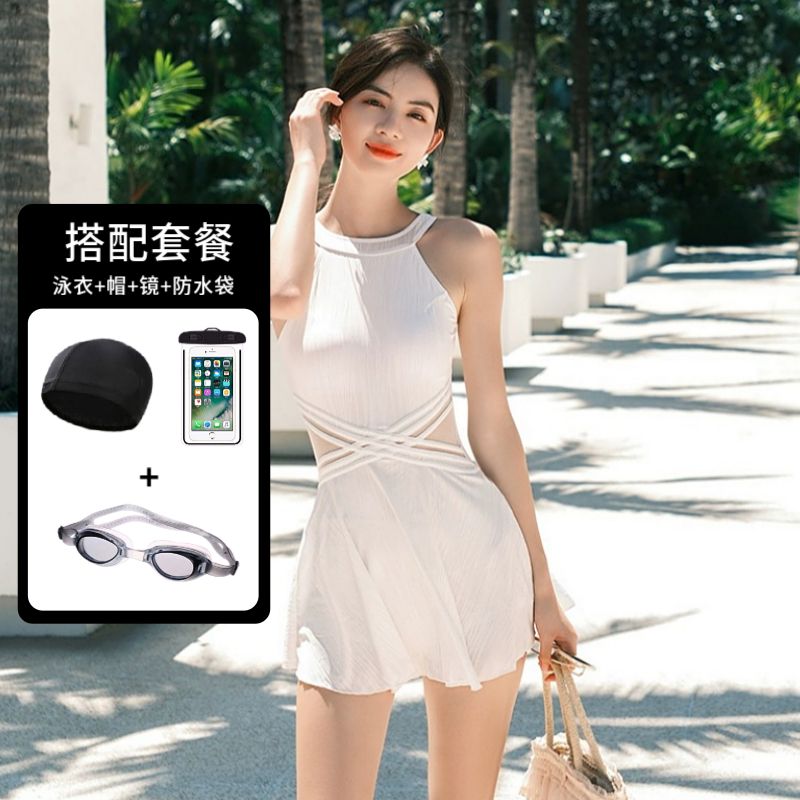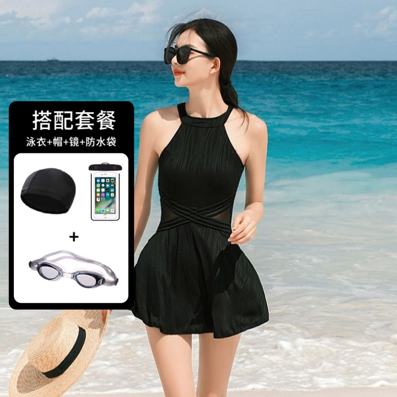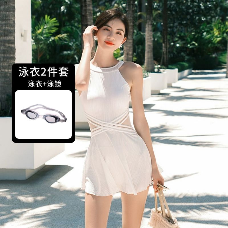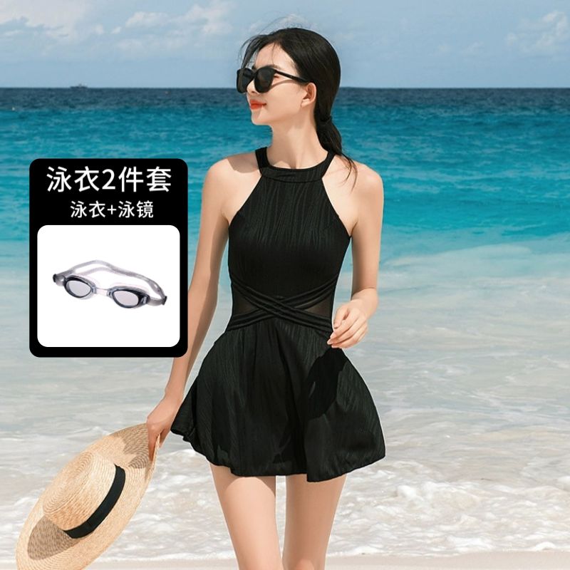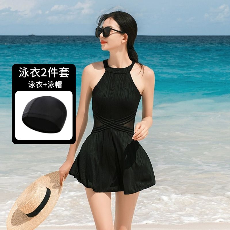 高级感连体泳衣女夏季裙式2024新款网红风遮肚显瘦保守海边游泳衣