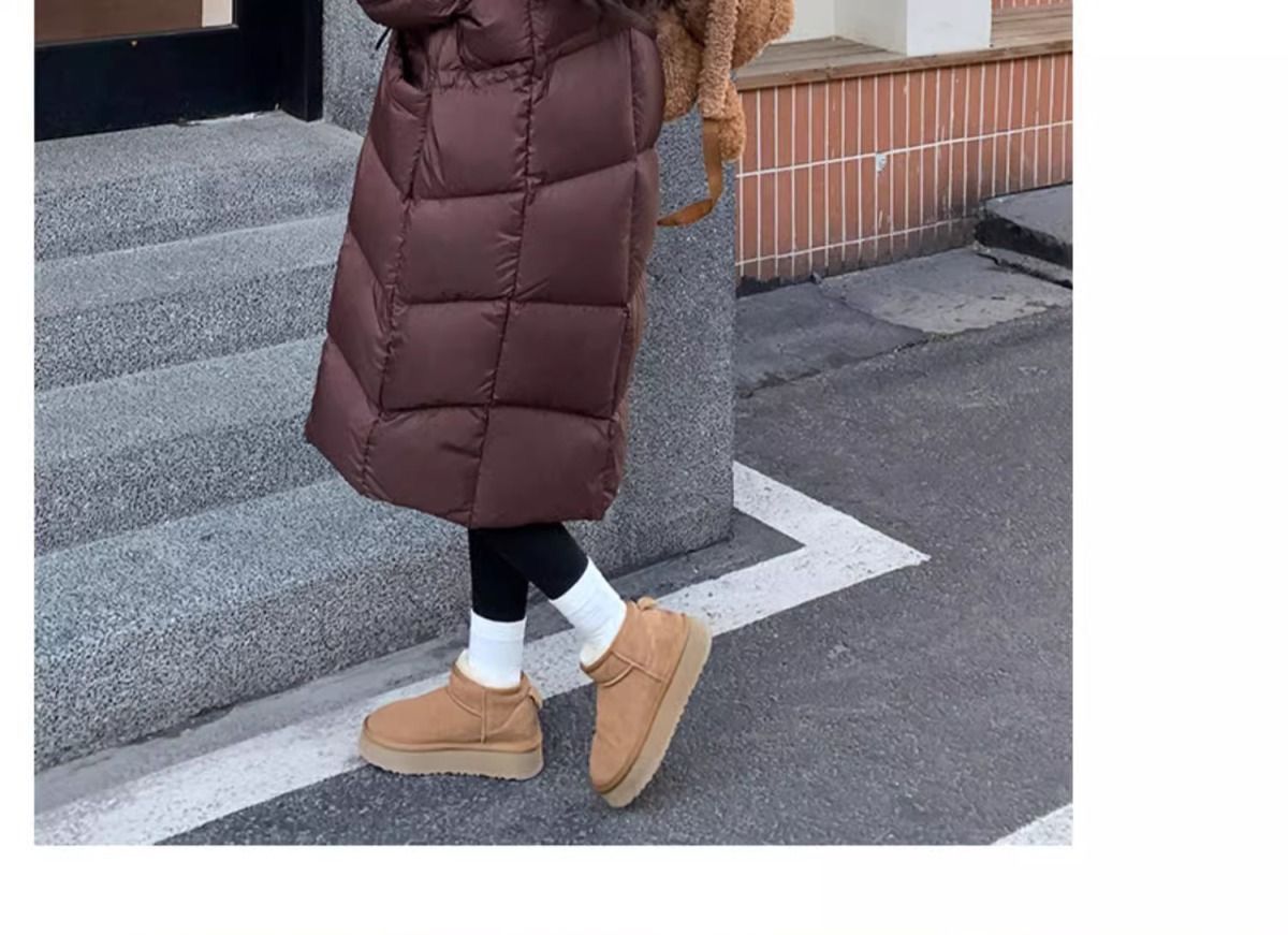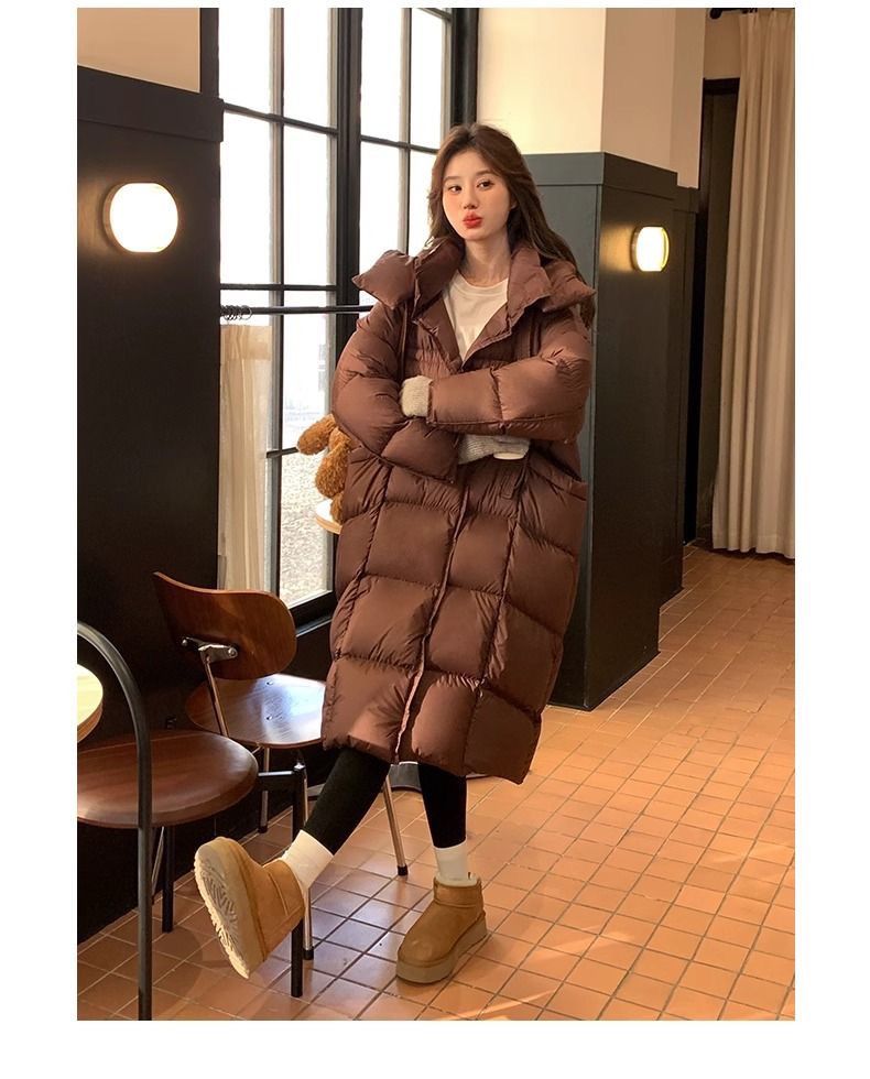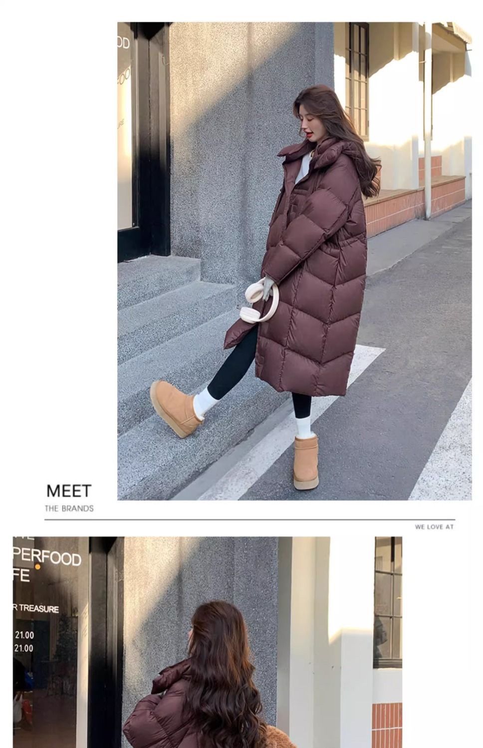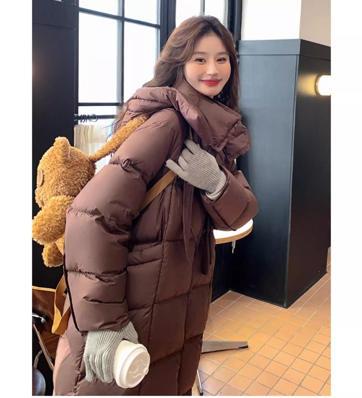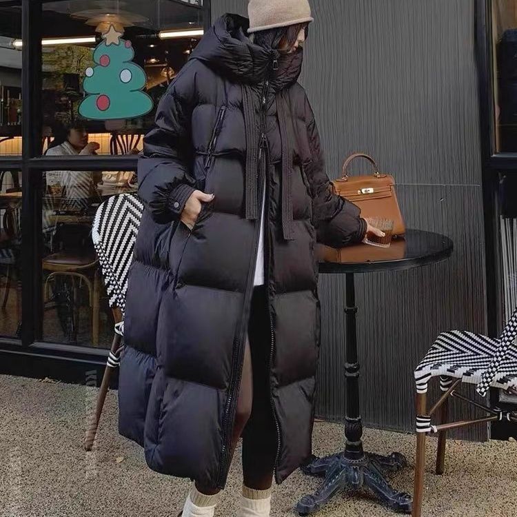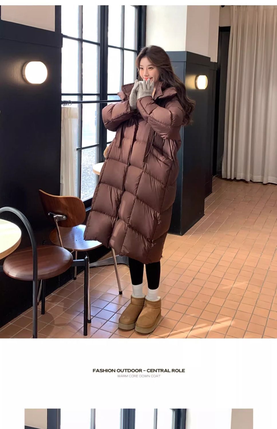 2024新款飘带羽绒服冬季加厚保暖连帽时尚简约过膝白鸭绒长款外套