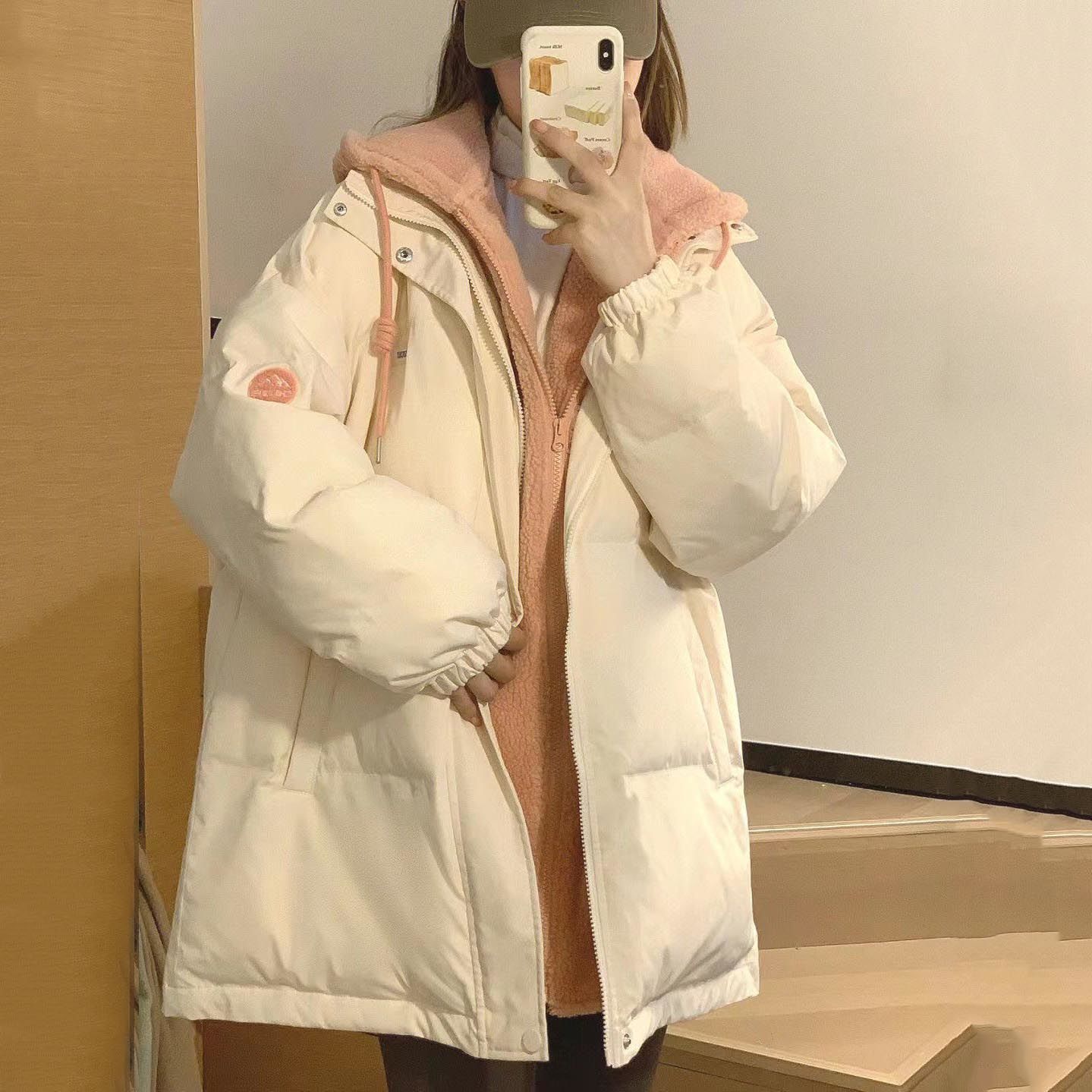 假两件羽绒服女冬季2024新款韩系宽松冬装羊羔毛外套女款加绒加厚