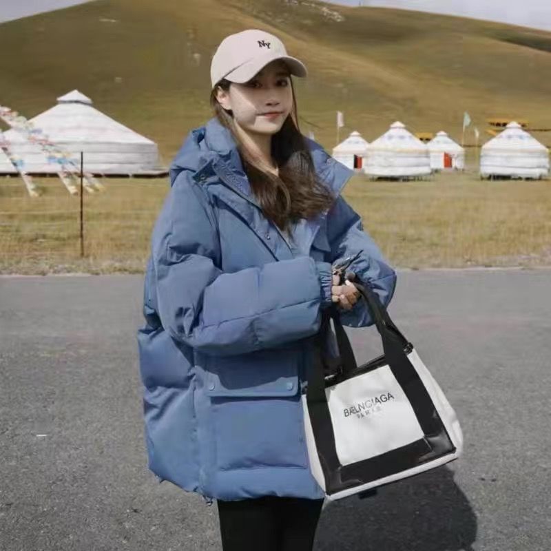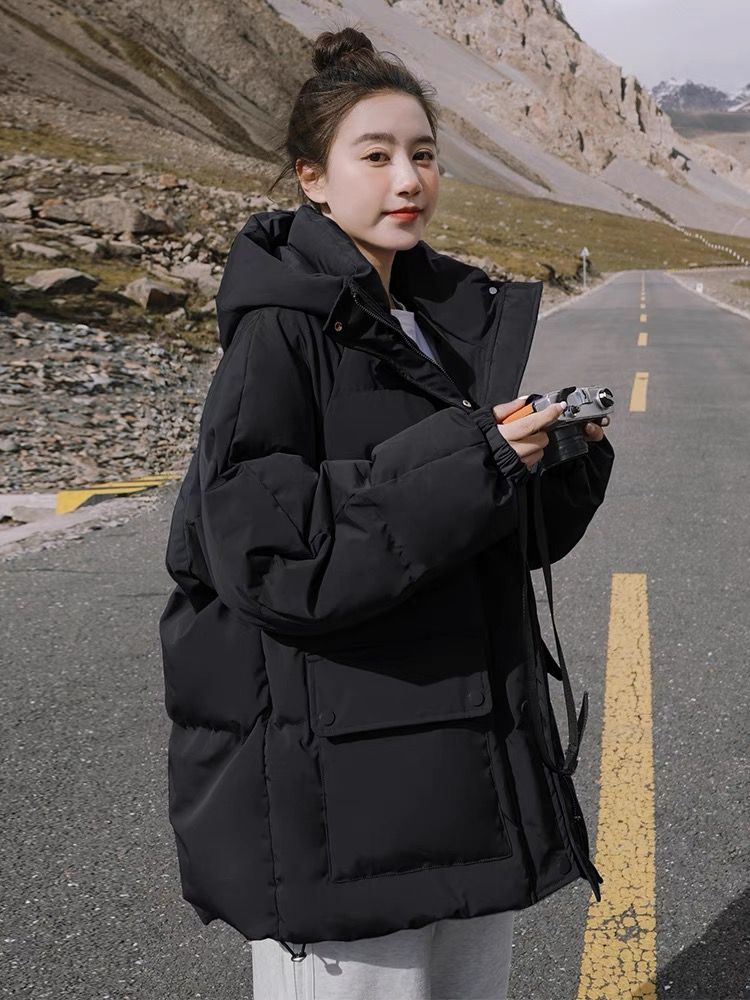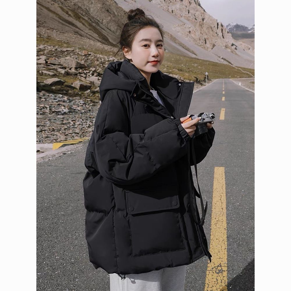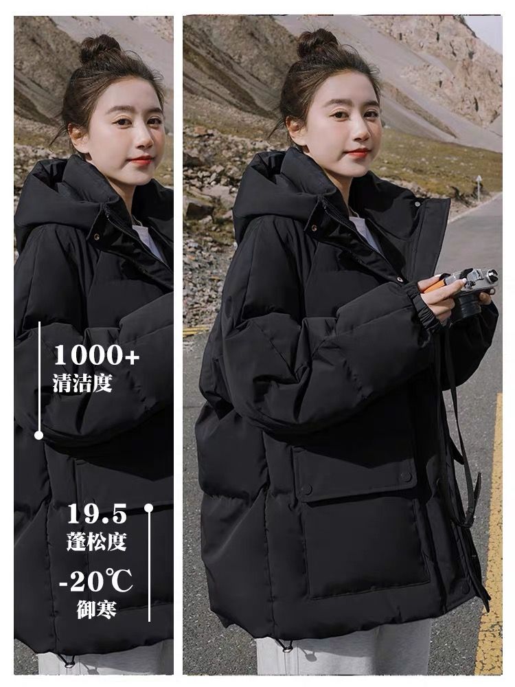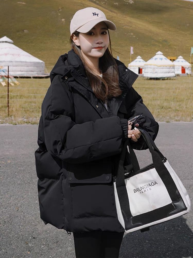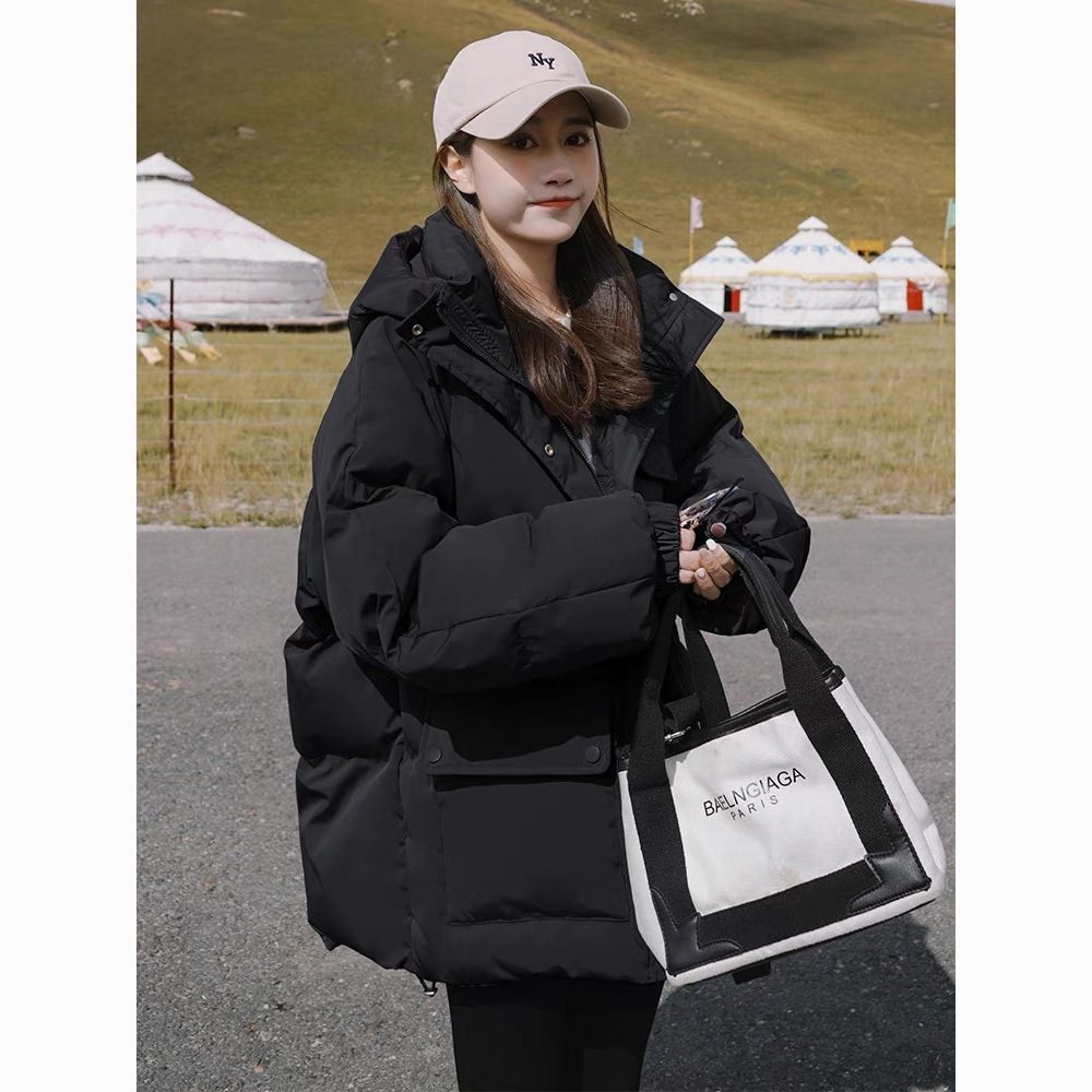 羽绒服2023年新款女白鸭绒小个子加厚面包服黑色短款外套冬季爆款