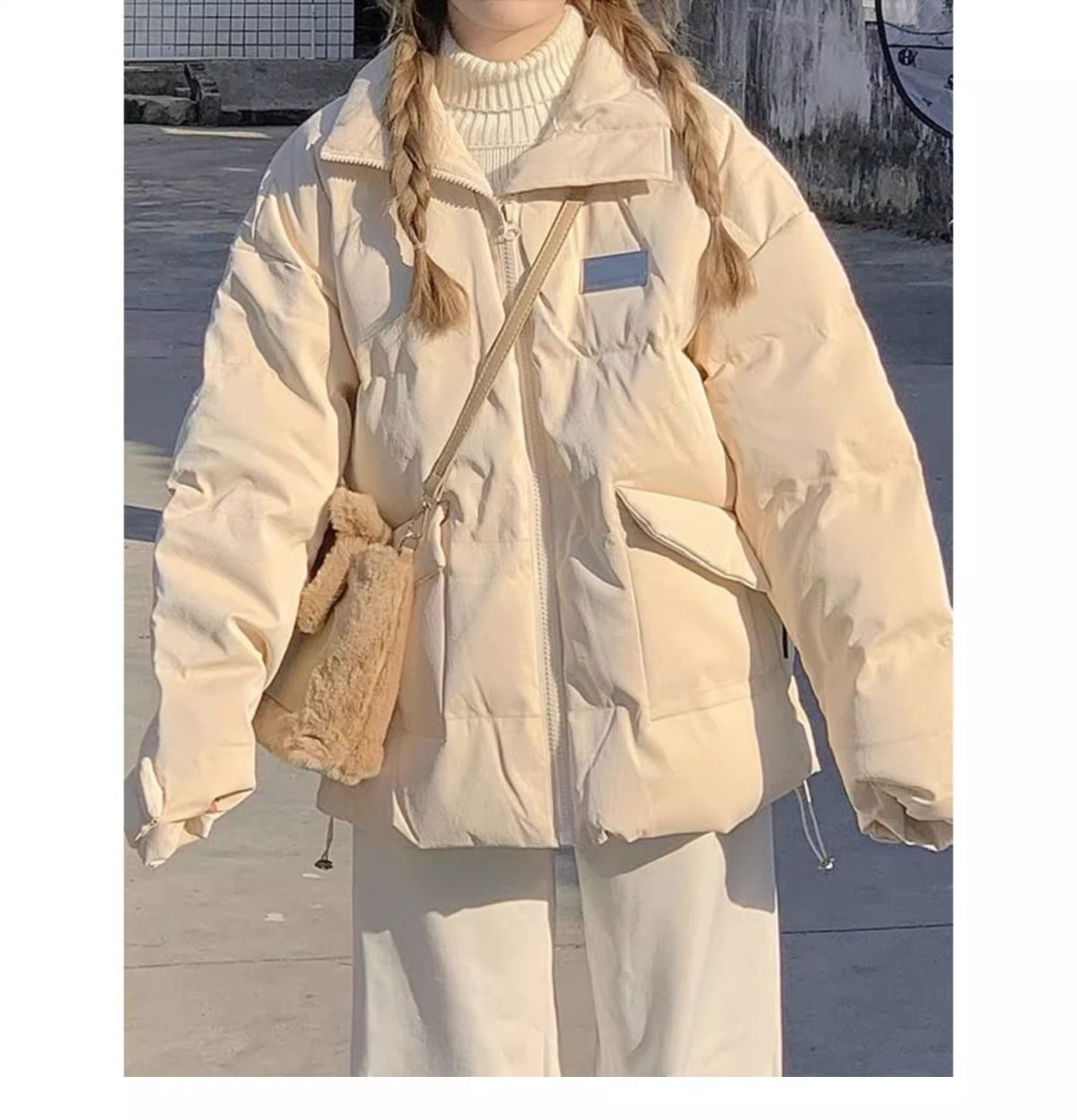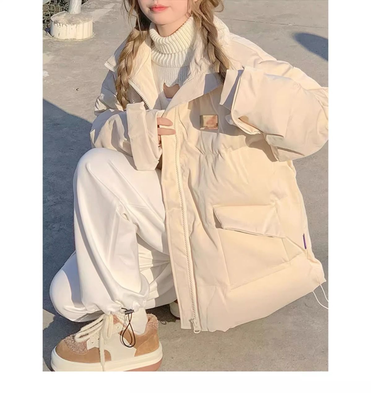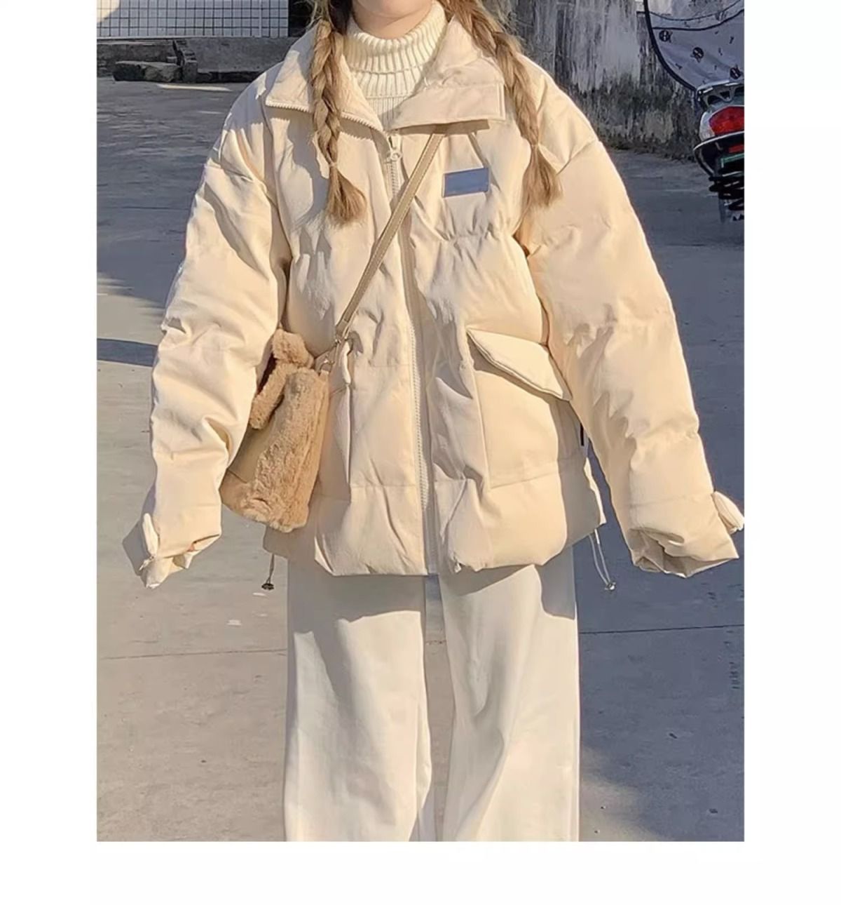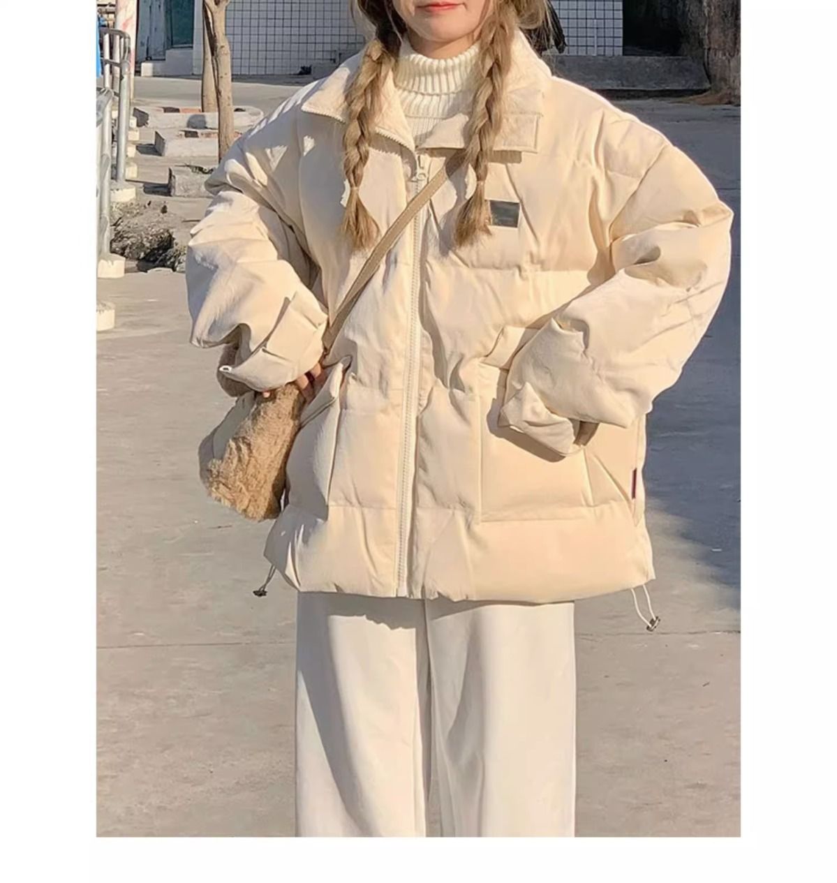 白鸭绒小个子羽绒服女冬季2024年新款pu皮加厚设计感百搭保暖外套