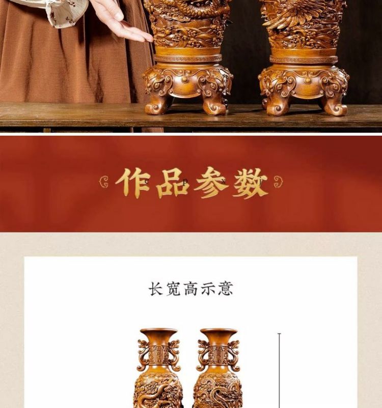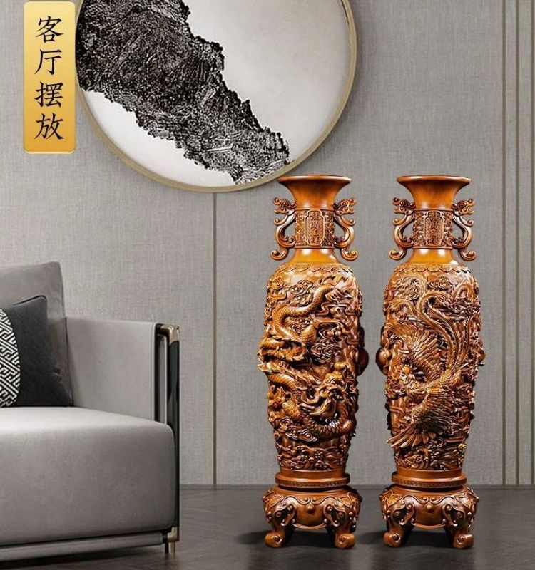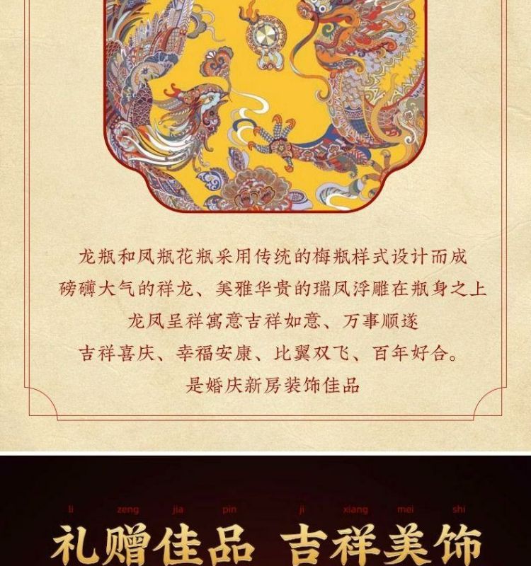 龙凤花瓶摆件一对电视柜旁边工艺品乔迁新居礼品客厅欧古落地花瓶