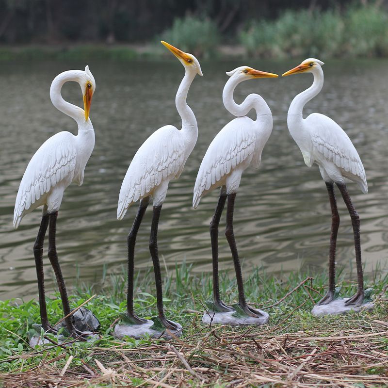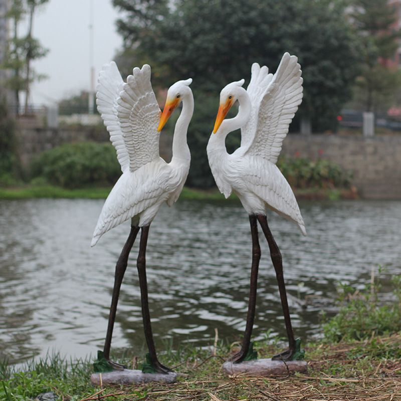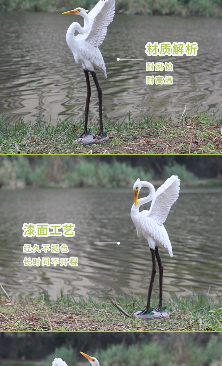 户外花园鱼池装饰仿真动物树脂白鹭庭院假山造景仙鹤摆件室外水池