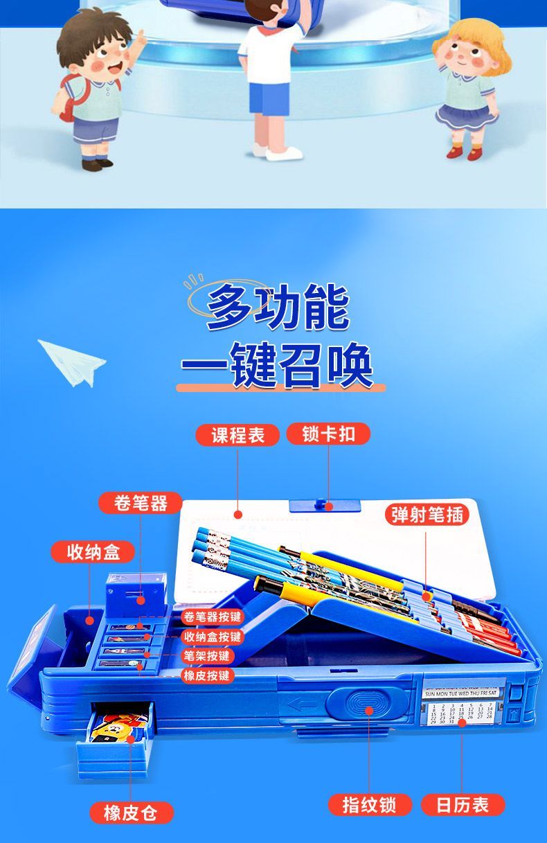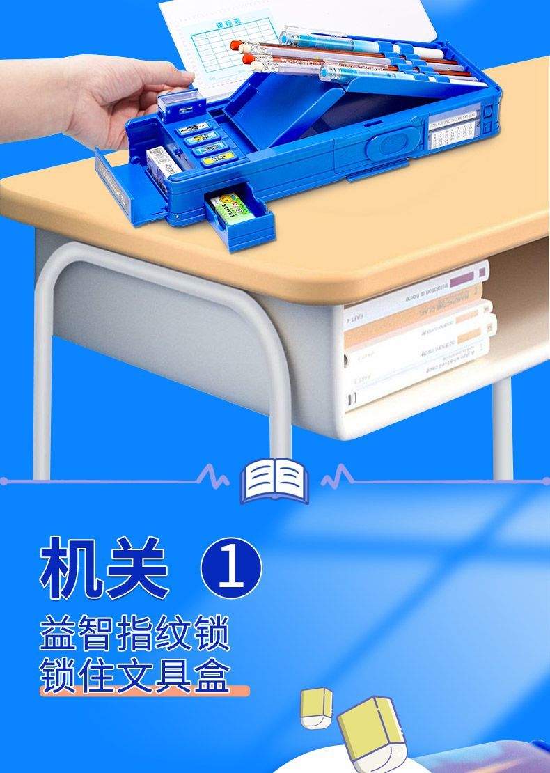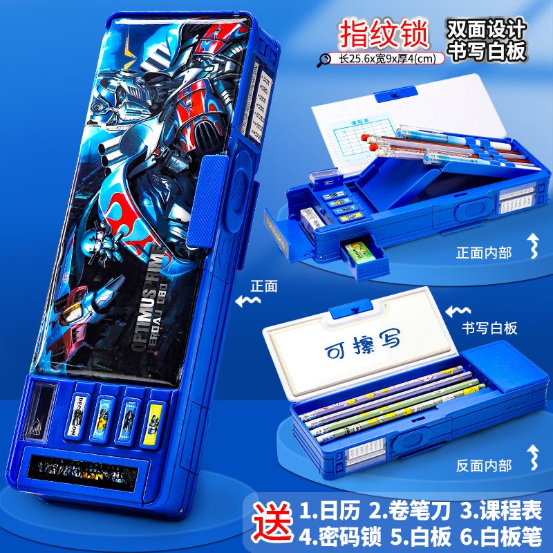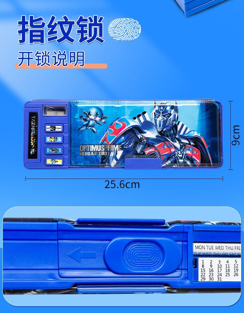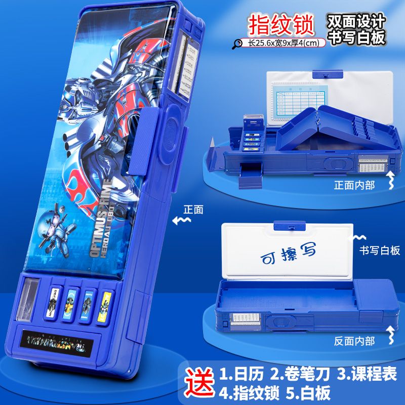 文具盒幼儿园男孩幼小文具盒男孩指纹锁多功能机关收纳小众文具盒