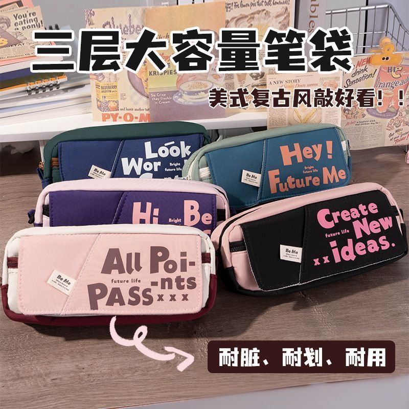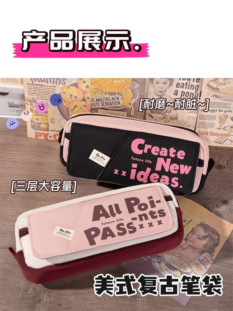 【开学季】美式复古笔袋ins大容量小众不撞款学生铅笔笔袋高颜值