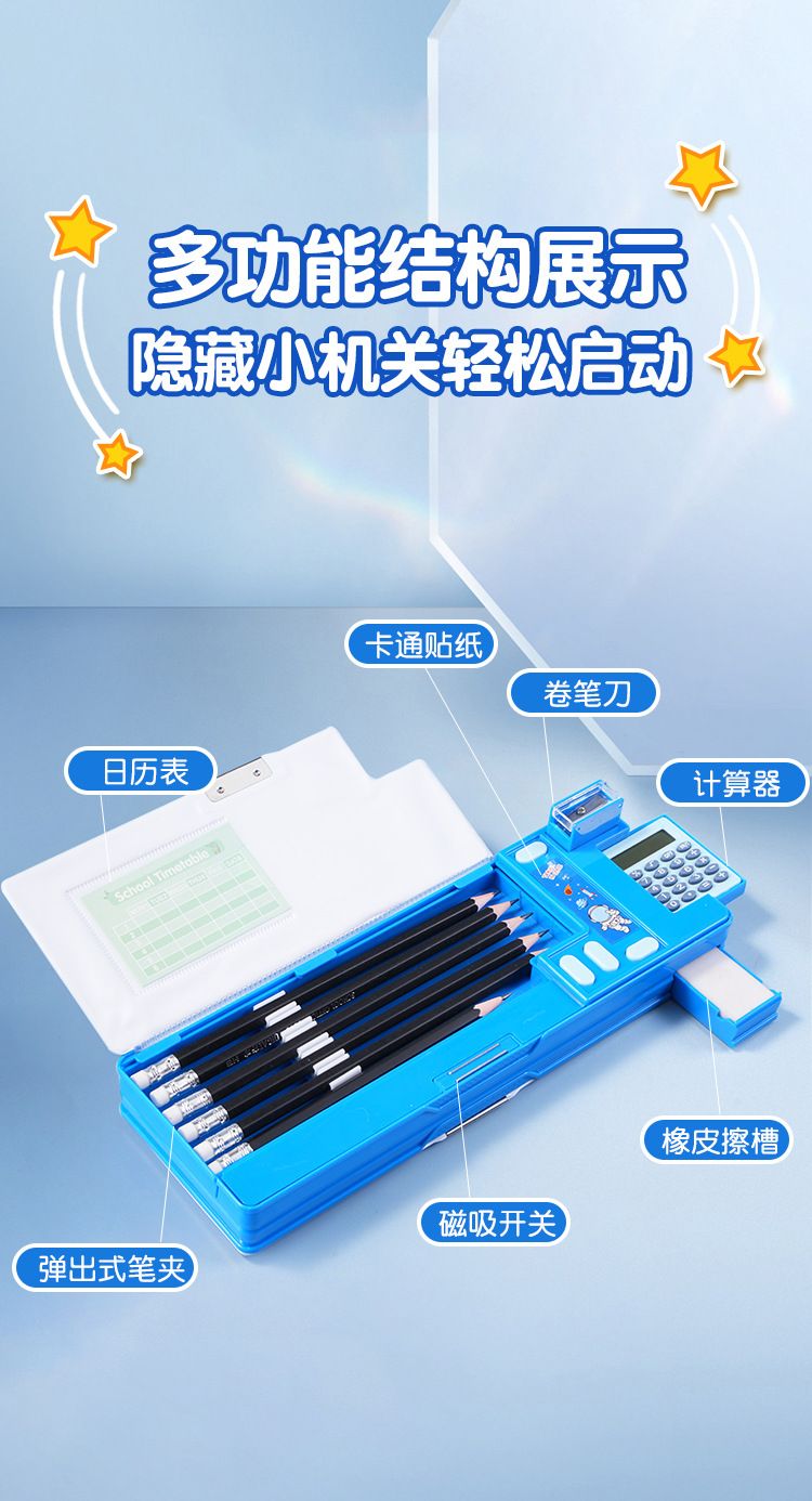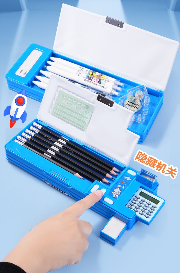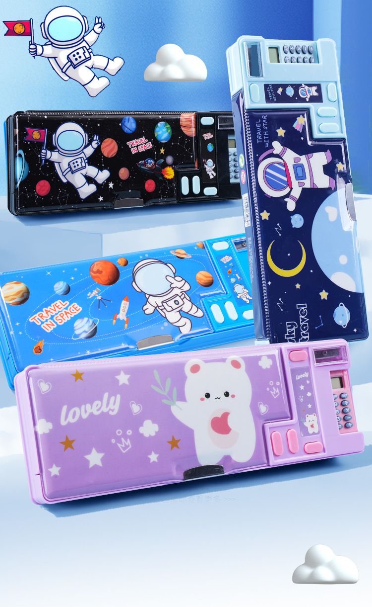 笔盒文具盒双层小学生卡通多功能儿童铅笔盒塑料大容量女孩计算器