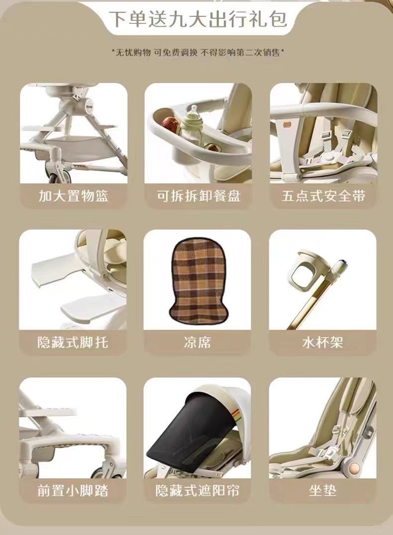 | khaki color + independent shock absorber + one foot double brake + dinner plate(卡其色+独立避震+一脚双刹+餐盘) | USD $43.77 | 99999 piece available |