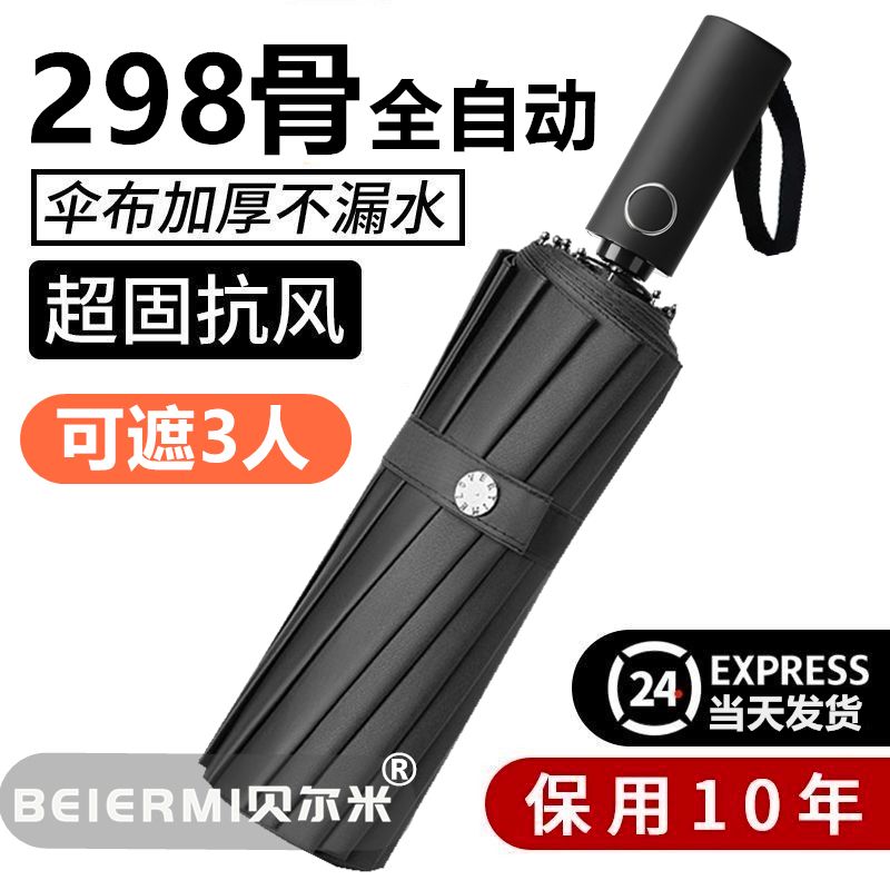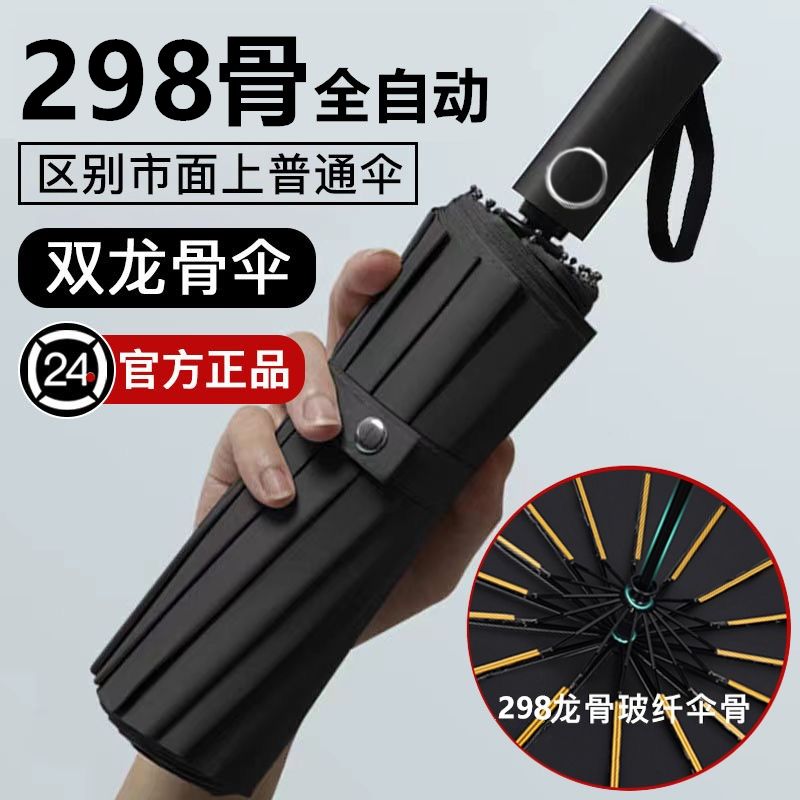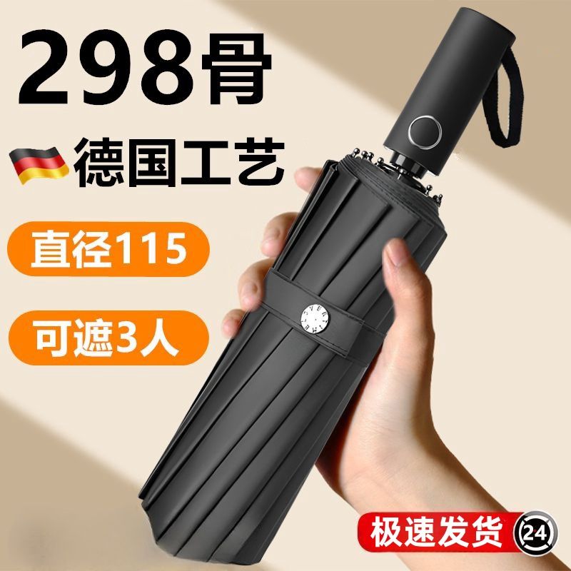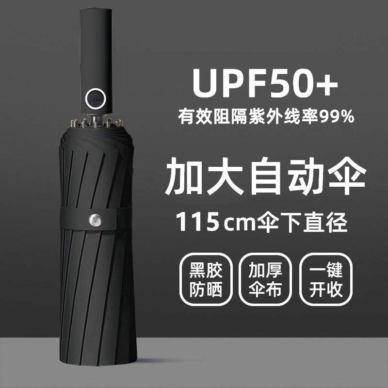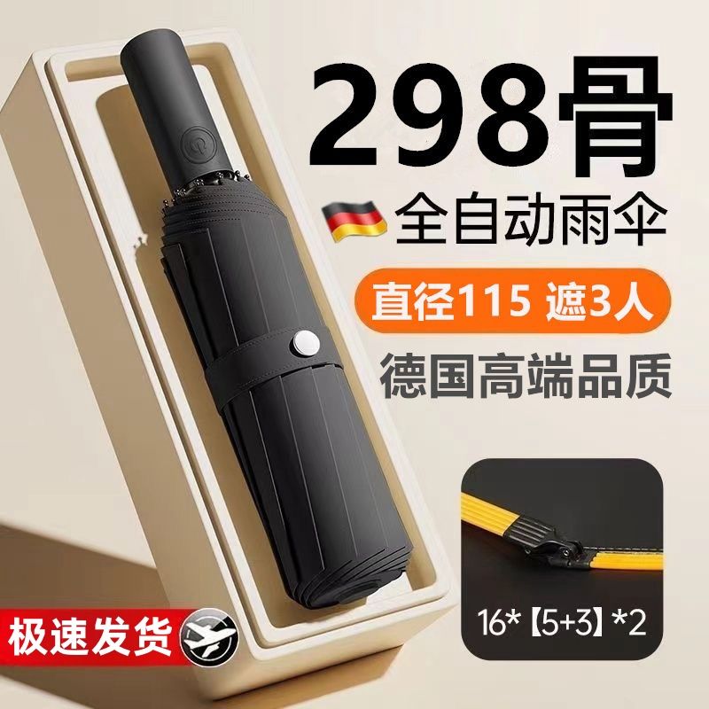 298骨全自动雨伞加厚防晒太阳伞遮阳黑胶加固抗风折叠学生紫外线