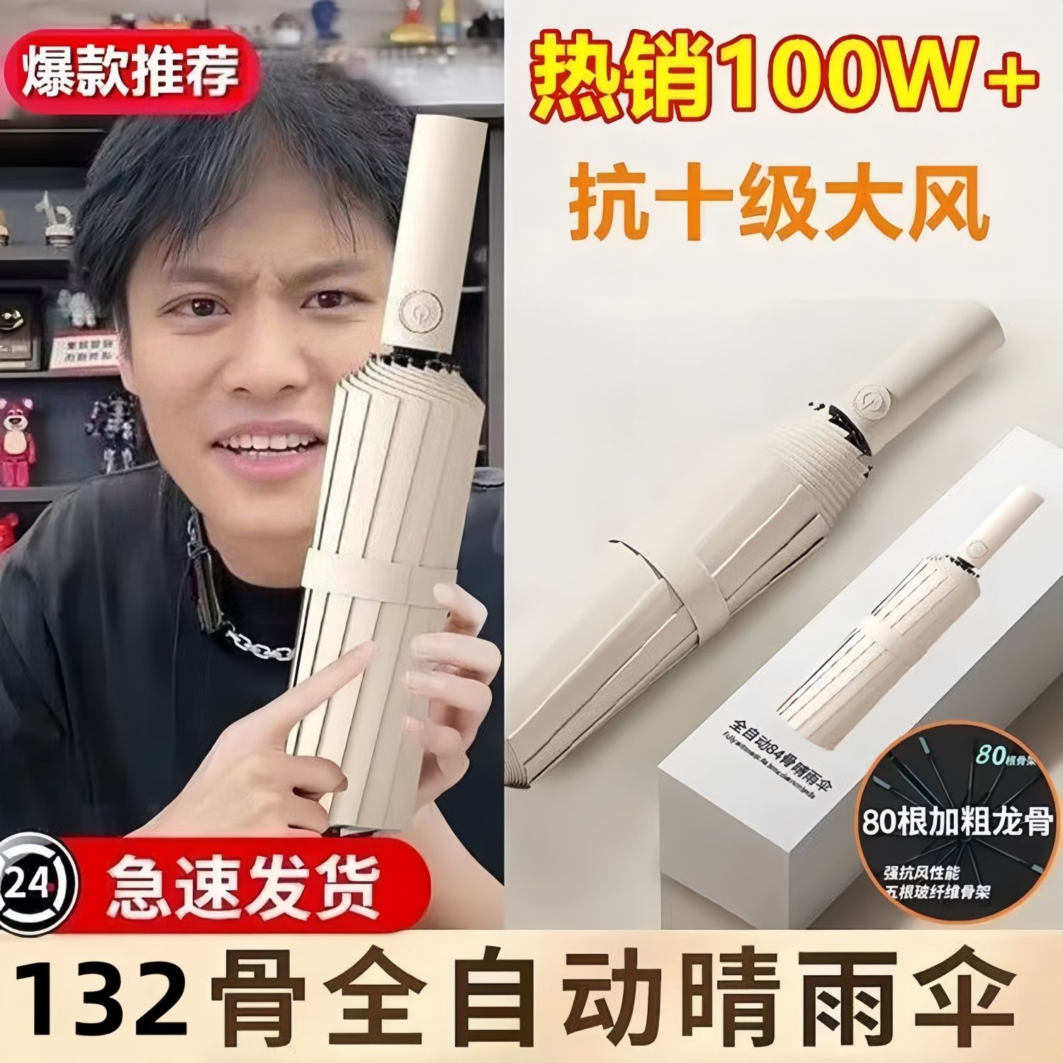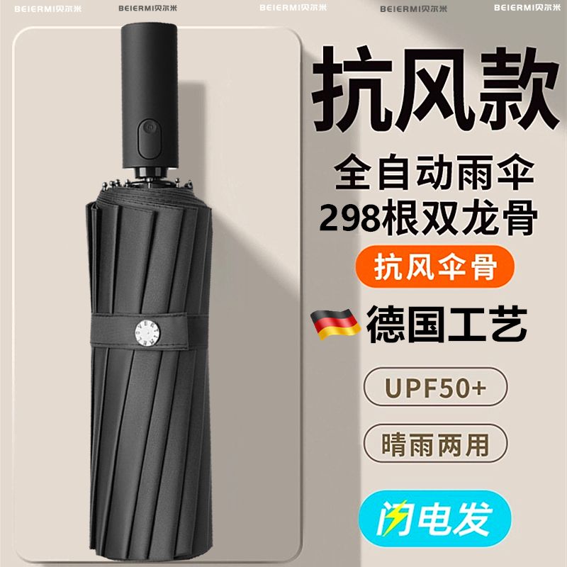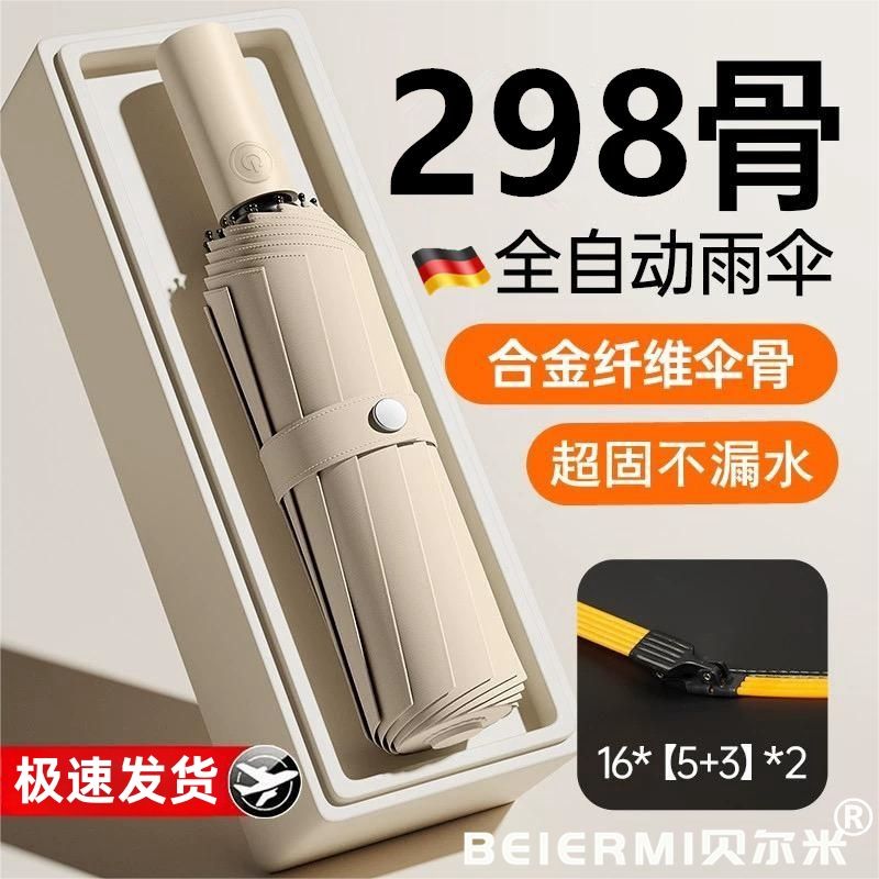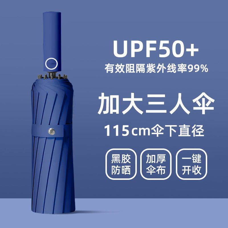 298骨全自动雨伞加厚防晒太阳伞遮阳黑胶加固抗风折叠学生紫外线