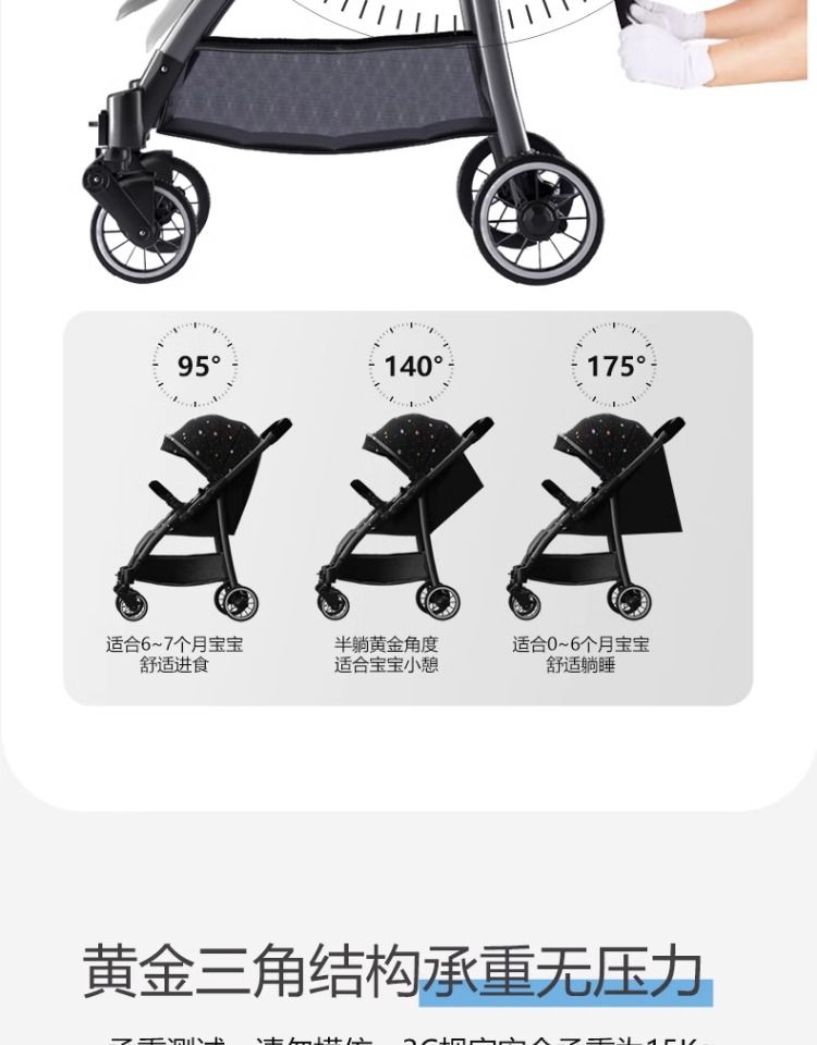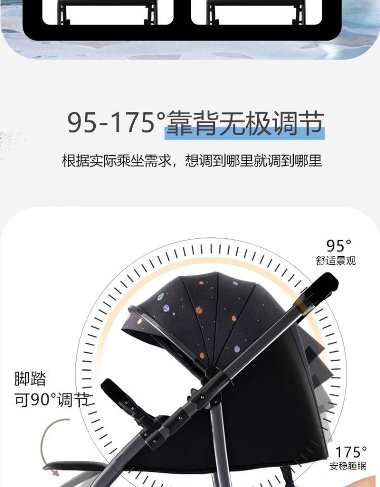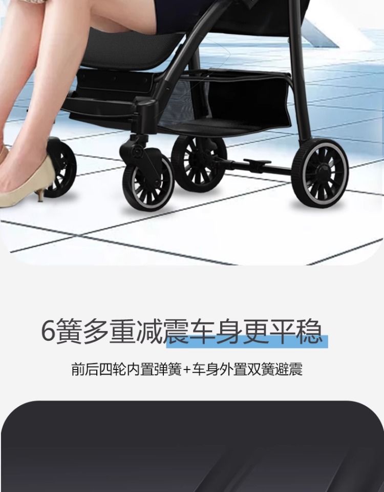 宝宝手推车可坐可躺轻便可折叠一键收车双向遛娃婴儿童车四轮减震
