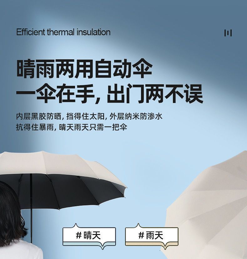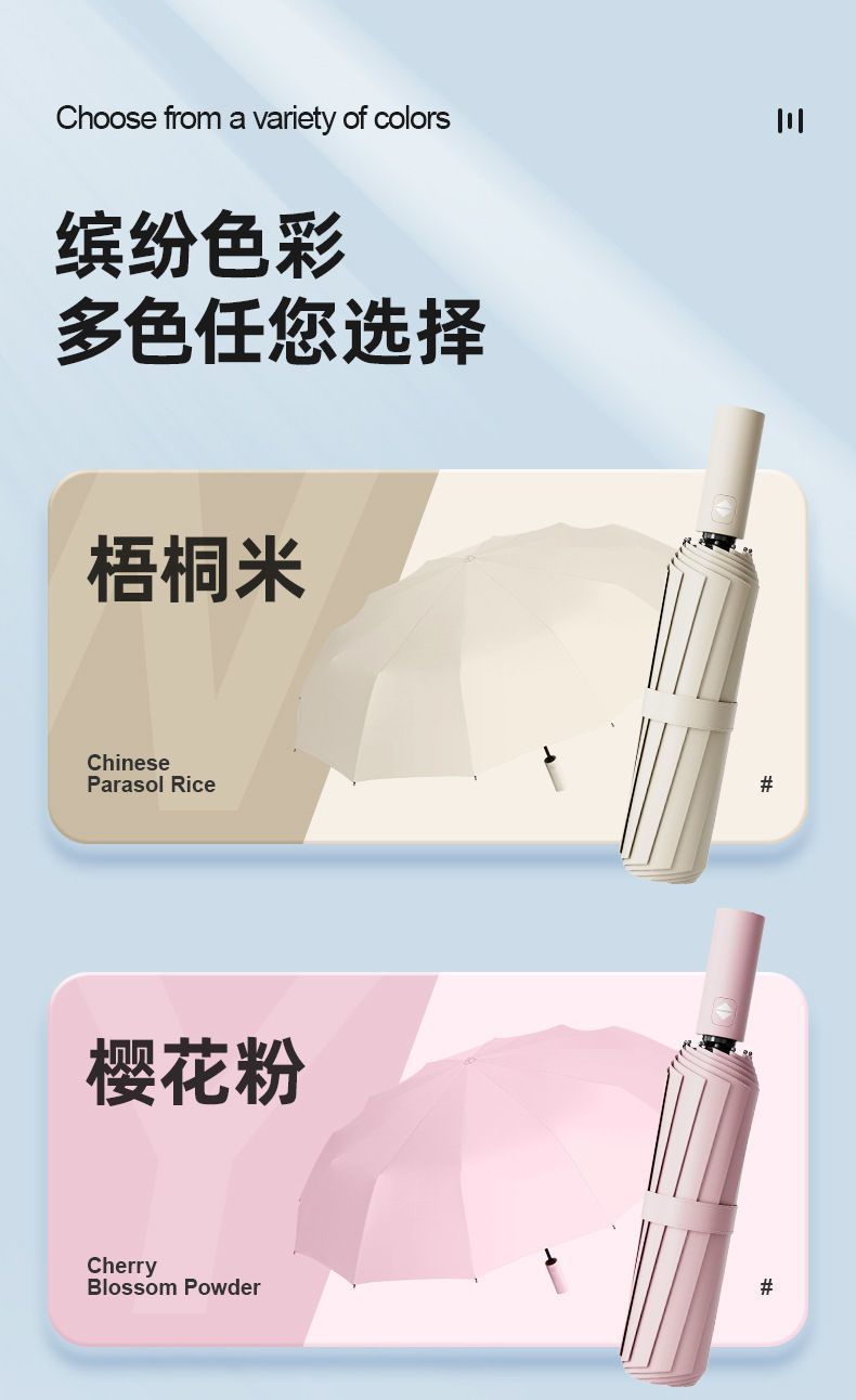 雨伞折叠全自动伞晴雨两用学生夏季防紫外线三折雨伞防风反向伞