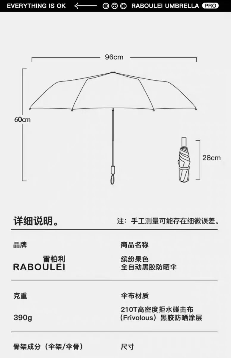 雷柏利新款雨伞晴雨两用伞加厚坚固结实耐用高颜值雨伞男女学生