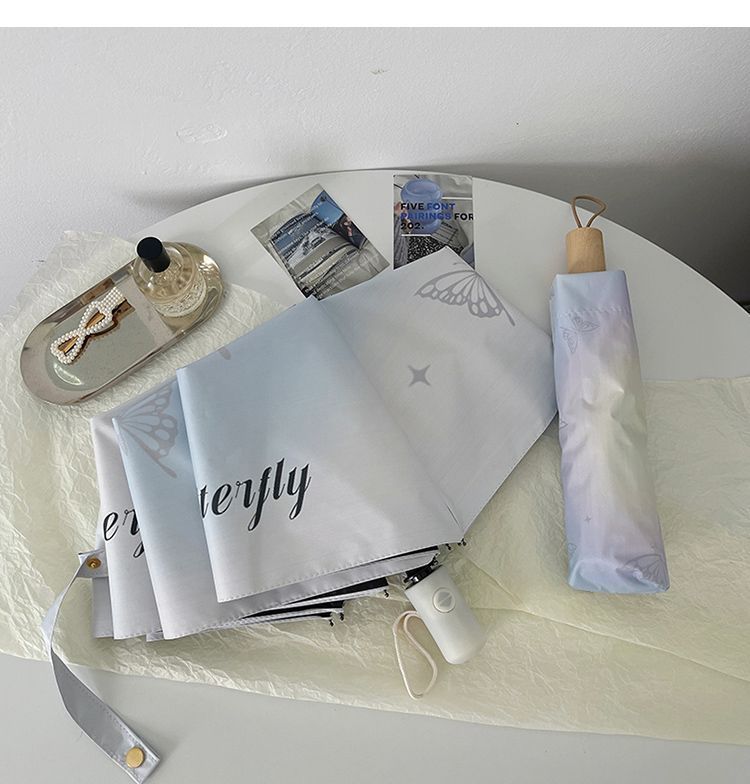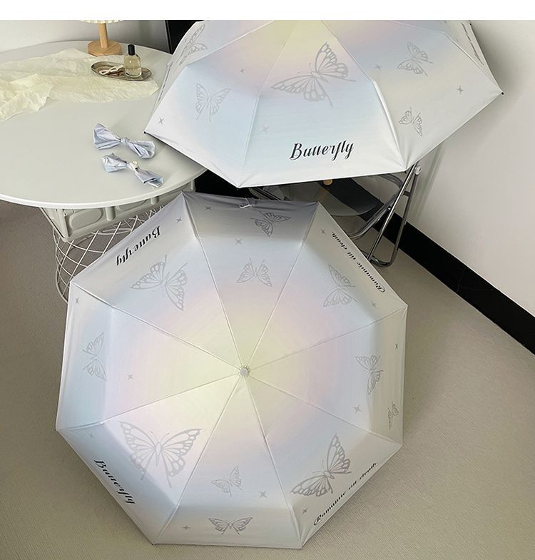 新款ins风渐变系蝴蝶折叠伞防晒防紫外线女晴雨两用伞便携遮阳伞