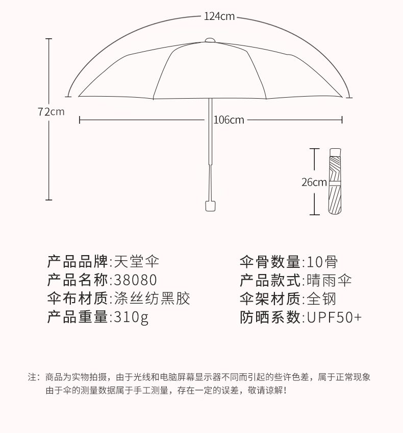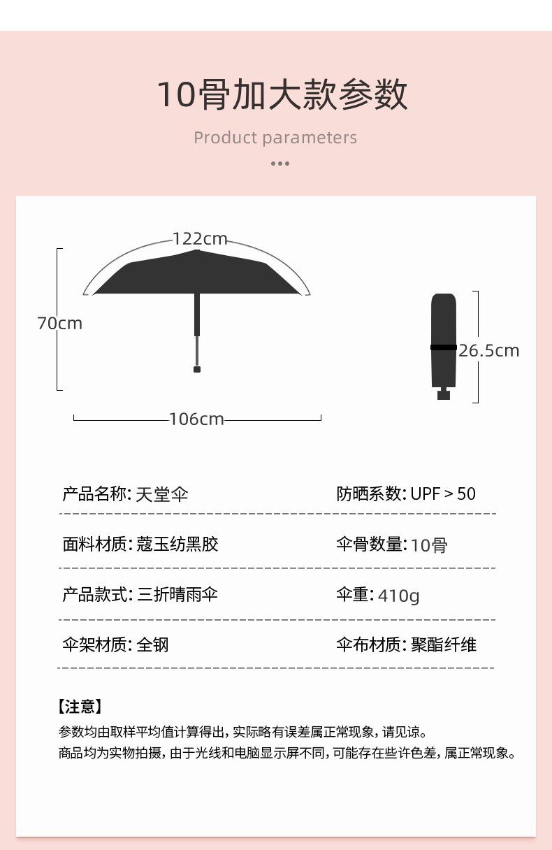 天堂伞防晒黑胶晴雨紫外线太阳伞遮阳伞小巧便携折叠晴雨伞两用