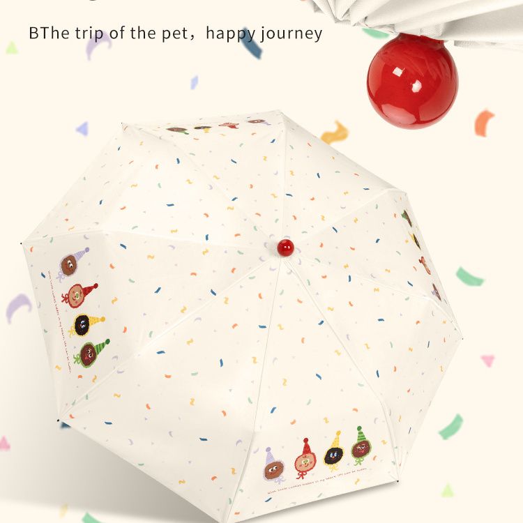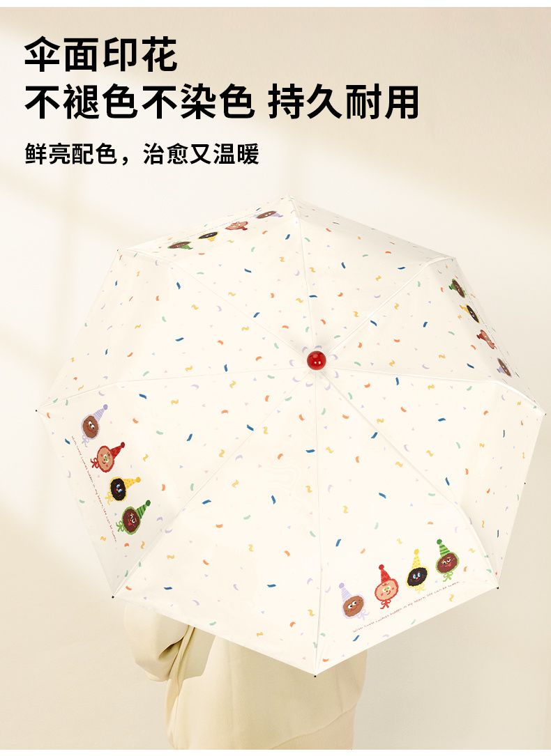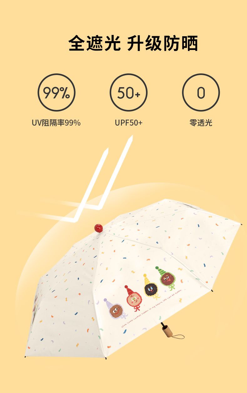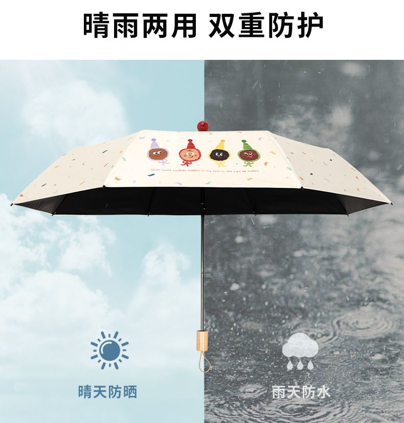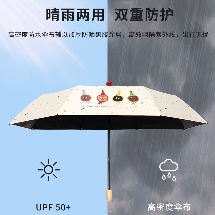 红球萌趣晴雨伞两用女防晒防紫外线折叠遮阳伞黑胶手动加固太阳伞