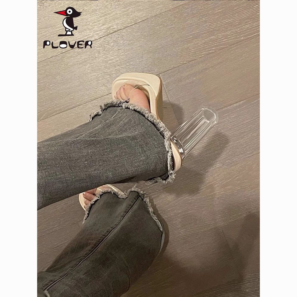 PLOVER透明高跟鞋2024夏季新款防水台粗跟厚底水晶凉鞋拖鞋女外穿