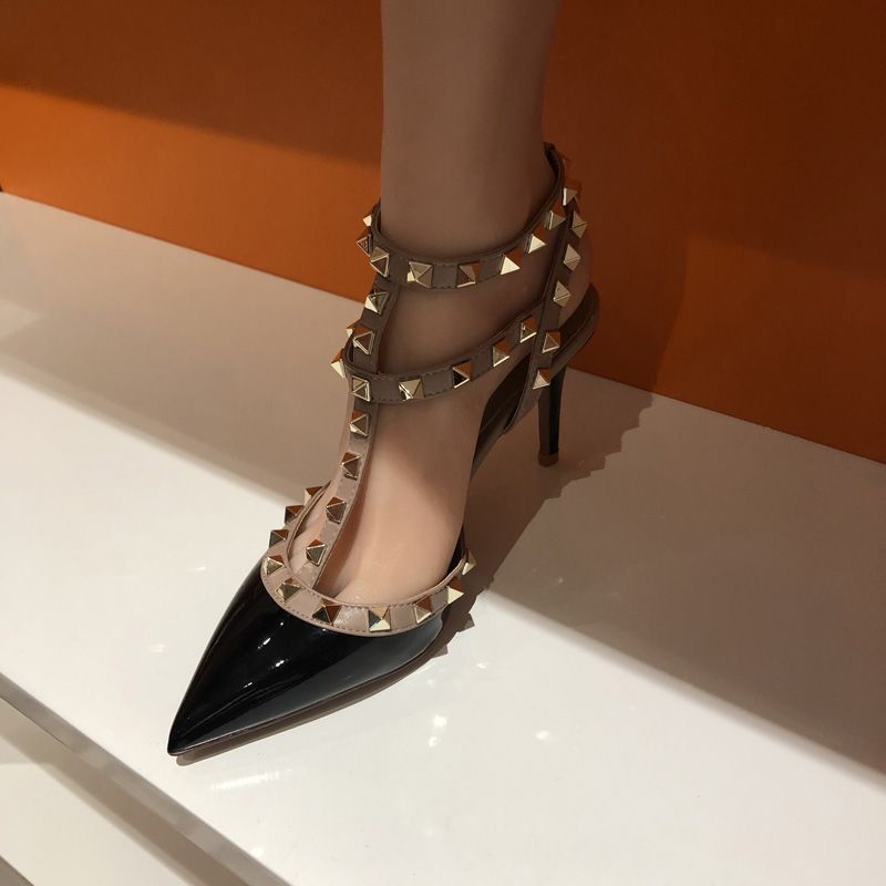 2024夏季新款尖头黑色铆钉高跟鞋女凉鞋细跟绝美裸色单鞋柳丁浅口