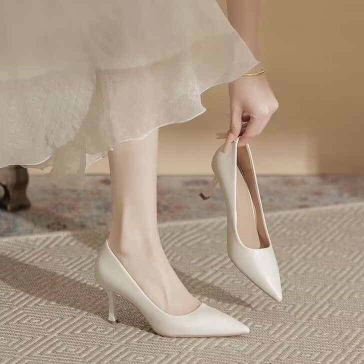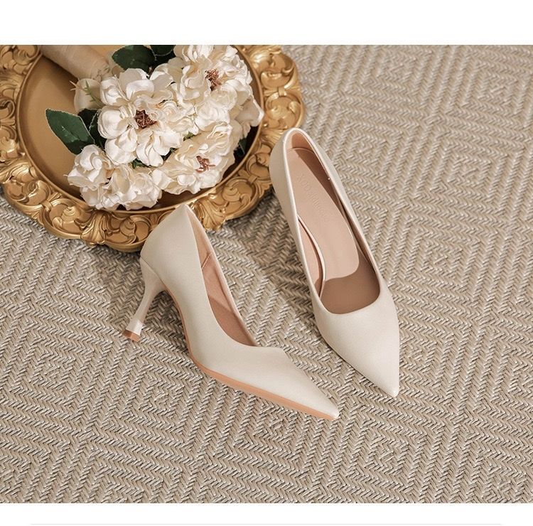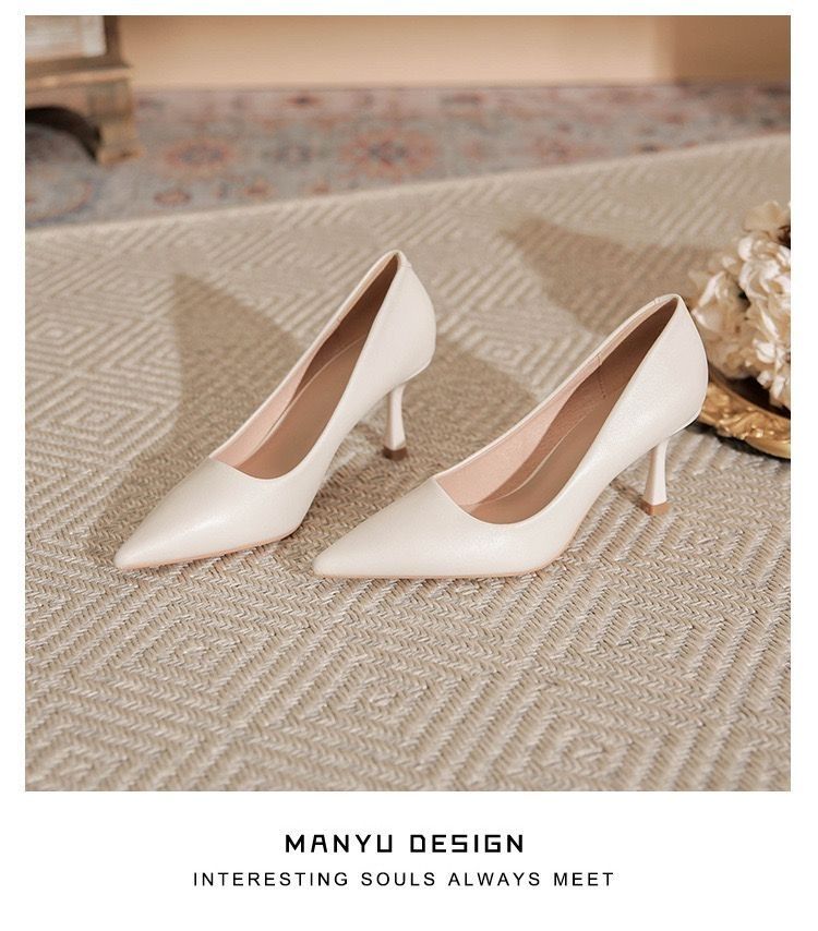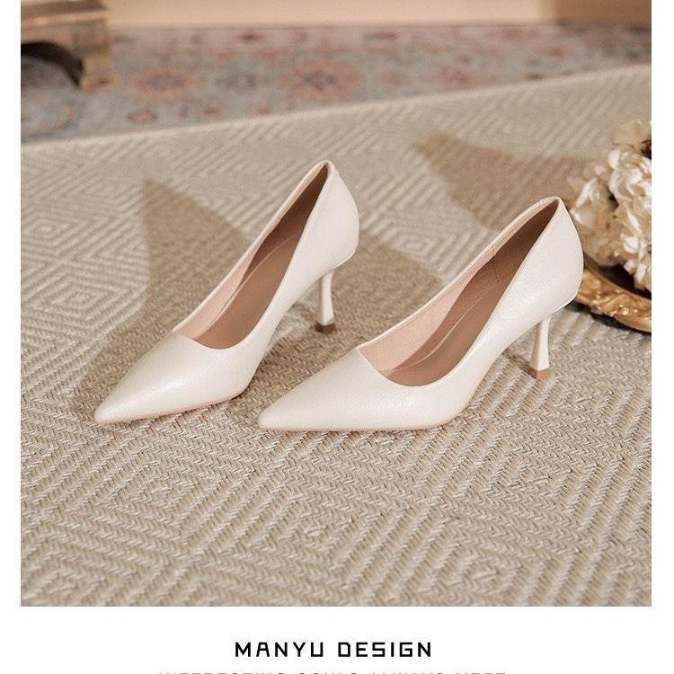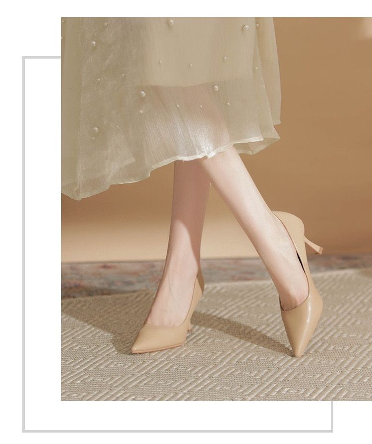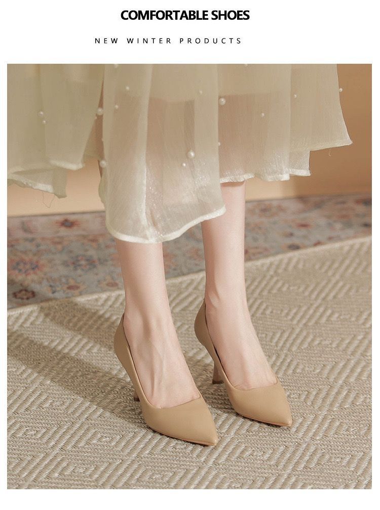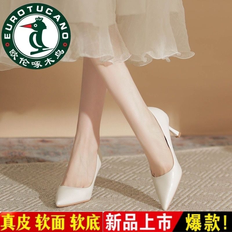 欧伦啄木鸟2024新款高跟鞋法式裸色百搭细单鞋尖头职业不累工作鞋