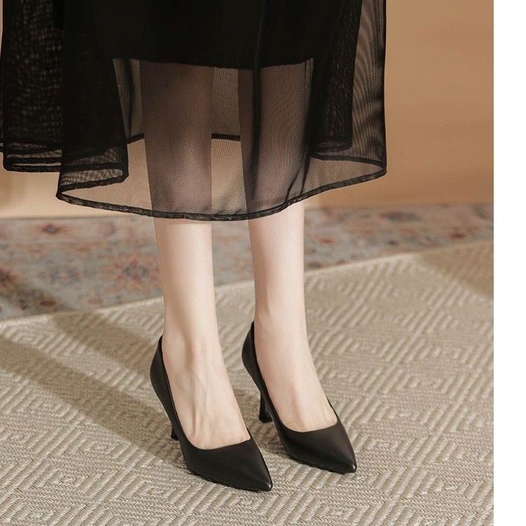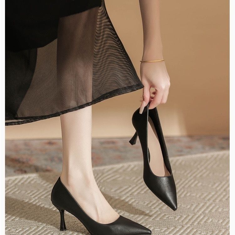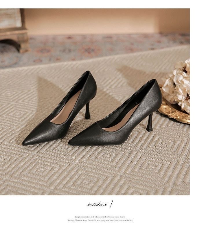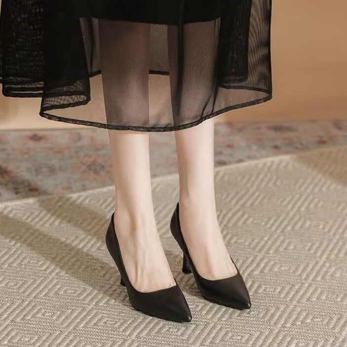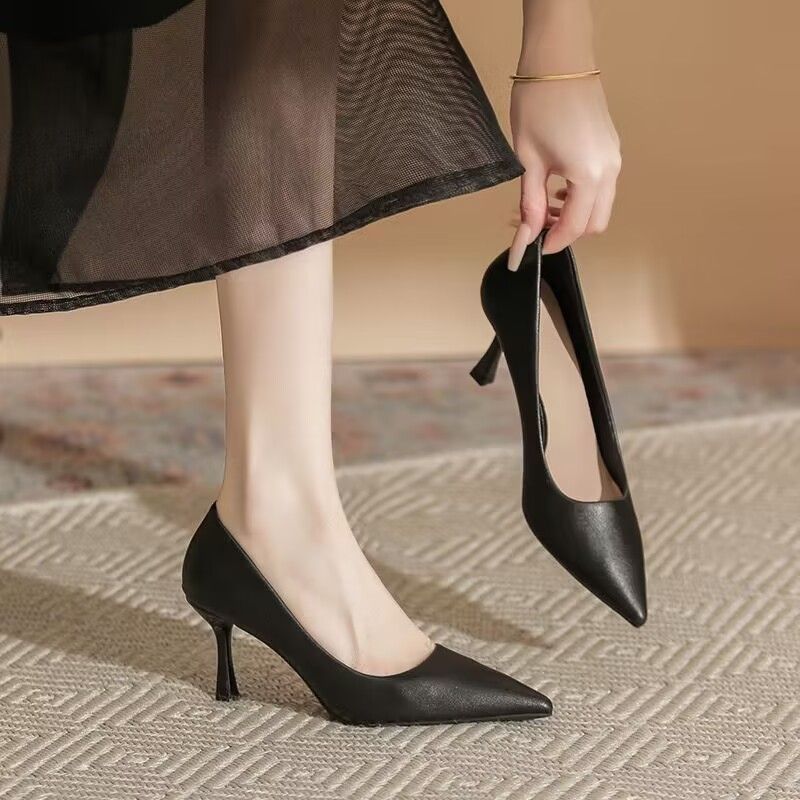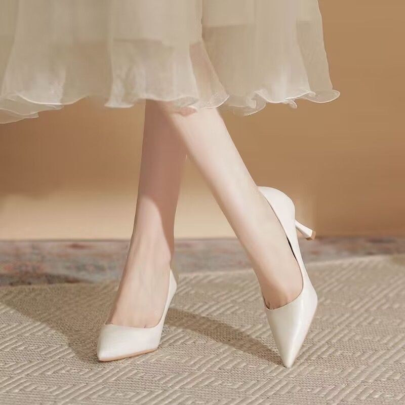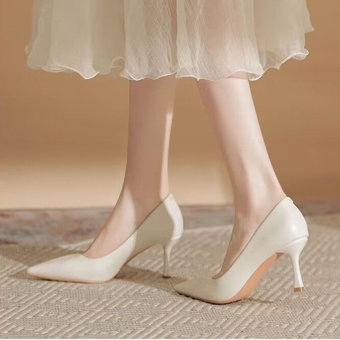欧伦啄木鸟2024新款高跟鞋法式裸色百搭细单鞋尖头职业不累工作鞋