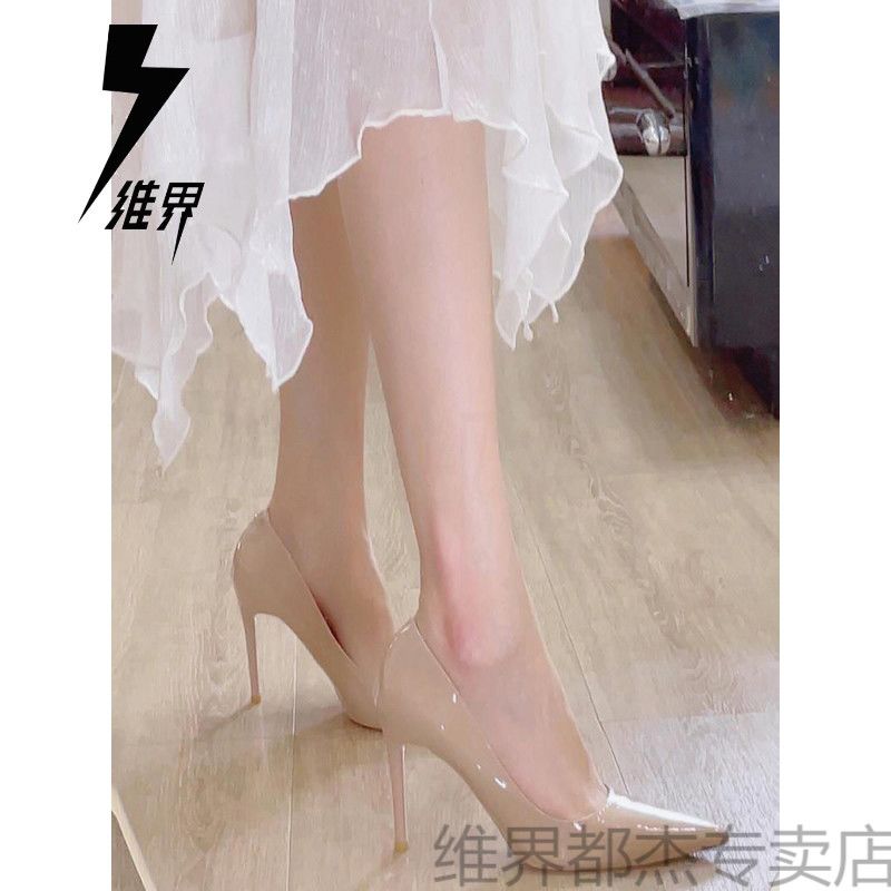 维界裸色高跟鞋女性感细跟黑色春季新款法式尖头百搭职业气质单鞋
