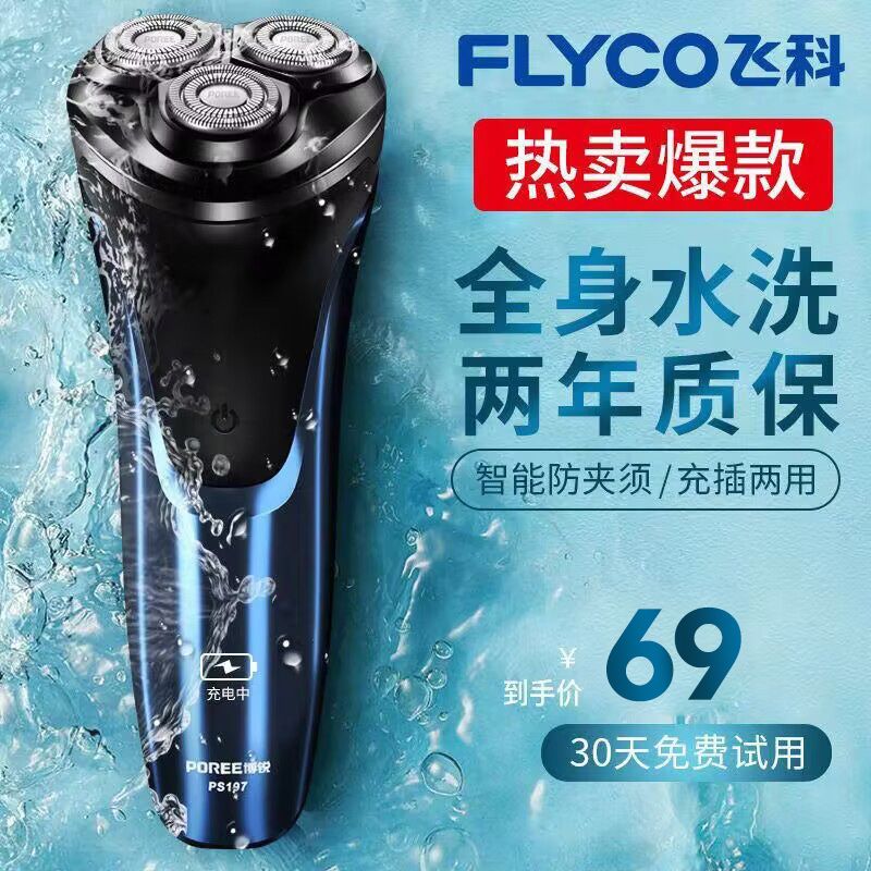 飞科博锐剃须刀电动新款刮胡刀鬓角刀智能充电快充全身水洗胡须刀
