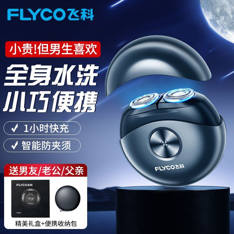 飞科圆形剃须刀电动飞碟男士刮胡刀水洗高端便携式礼盒男友情人节