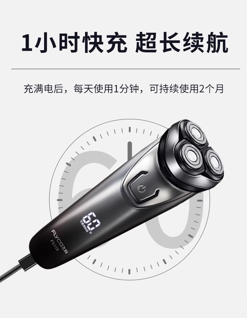 飞科剃须刀男士智能充电式电动刮胡刀全身水洗typec快充博锐正品