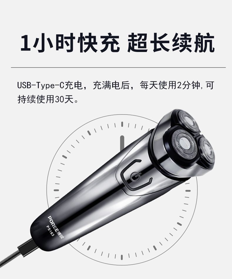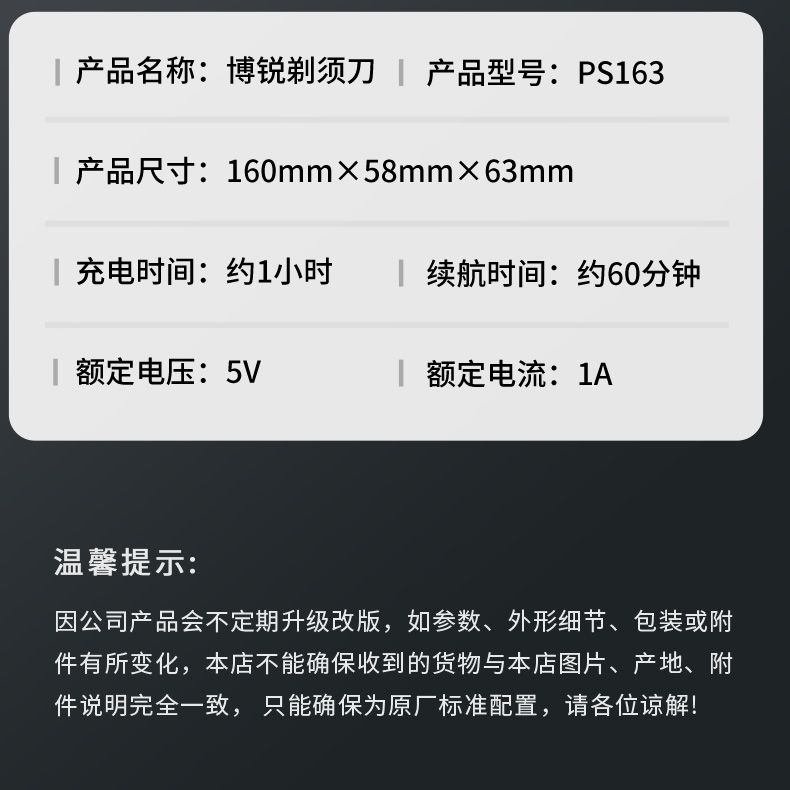 飞科博锐剃须刀电动男士刮胡刀全身水洗快充便携胡须刀新款PS163