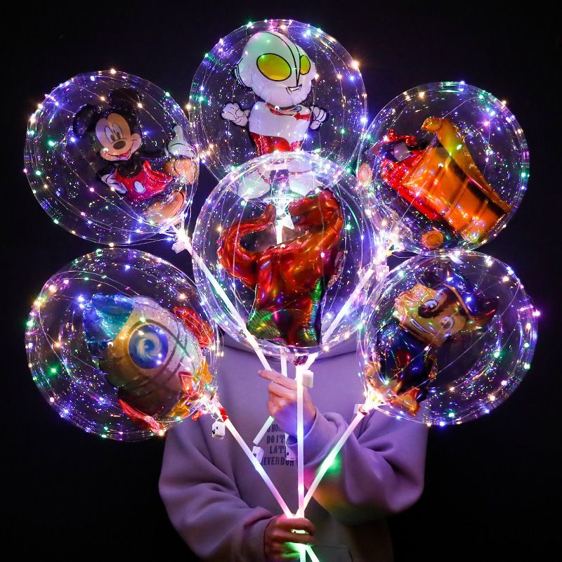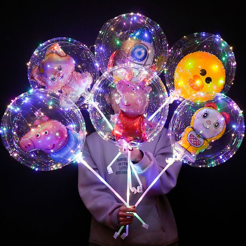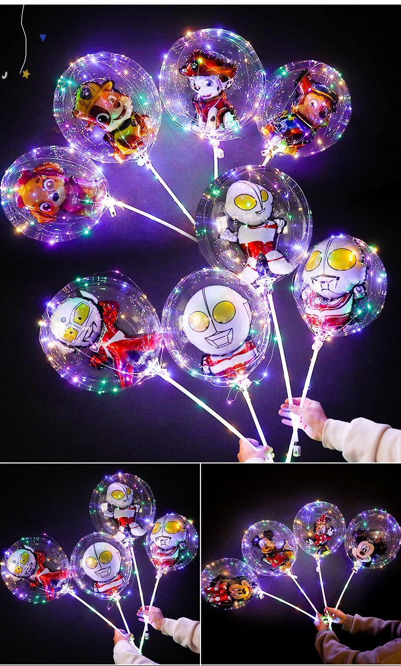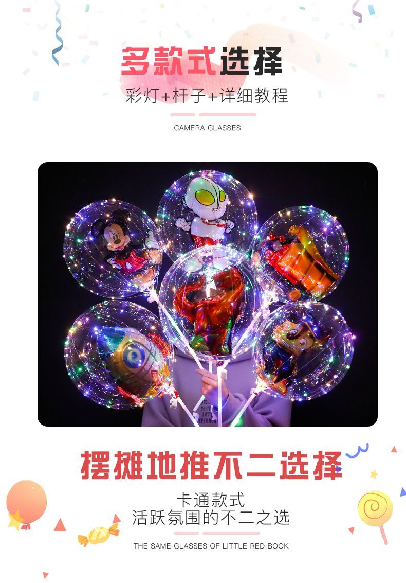 网红透明波波球摆摊夜市带灯卡通发光气球闪光彩灯球儿童玩具地推