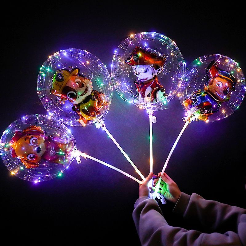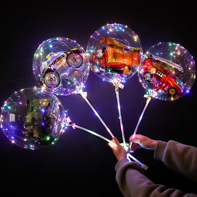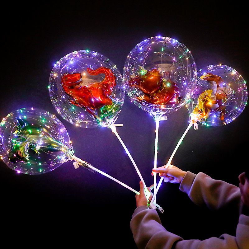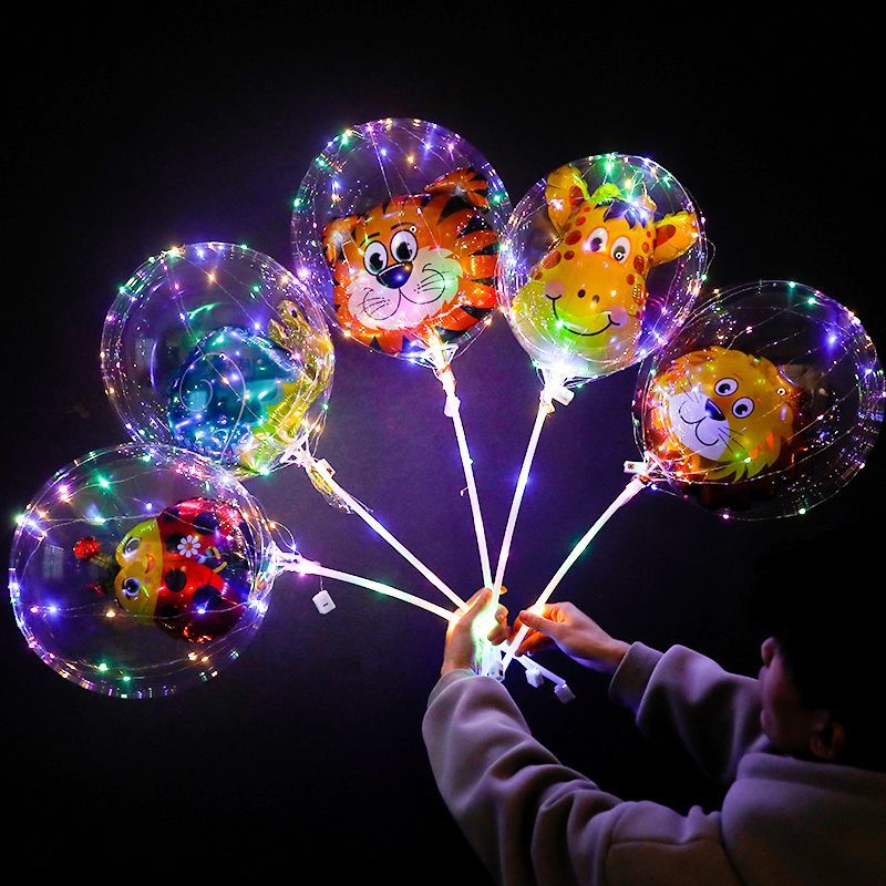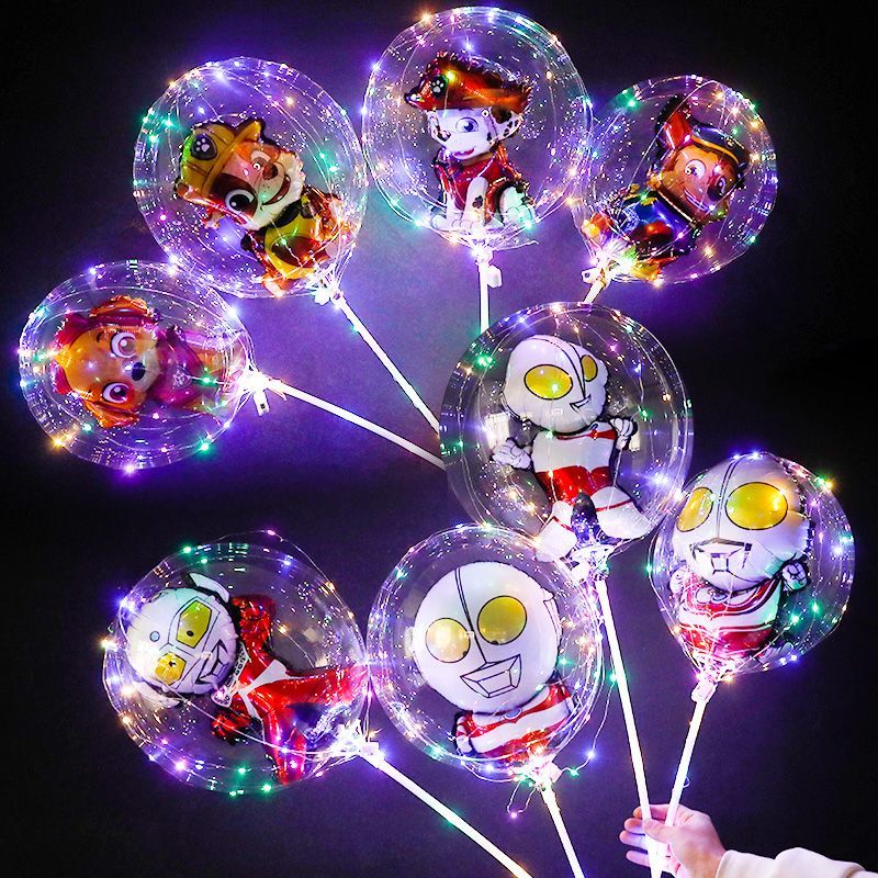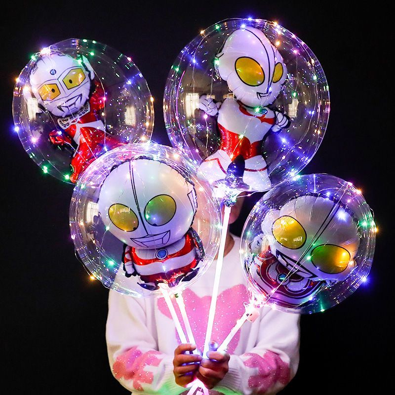 网红透明波波球摆摊夜市带灯卡通发光气球闪光彩灯球儿童玩具地推