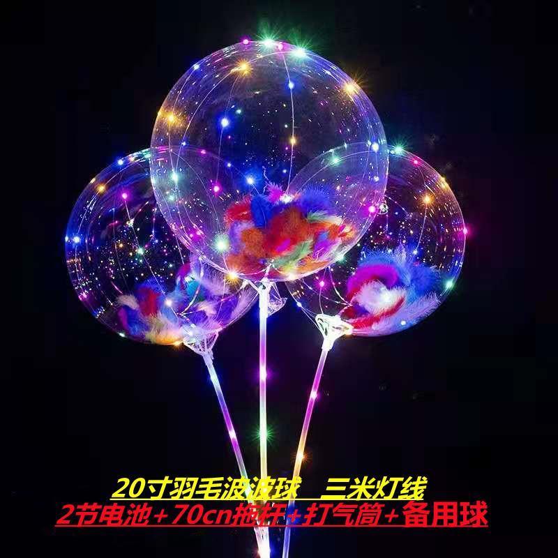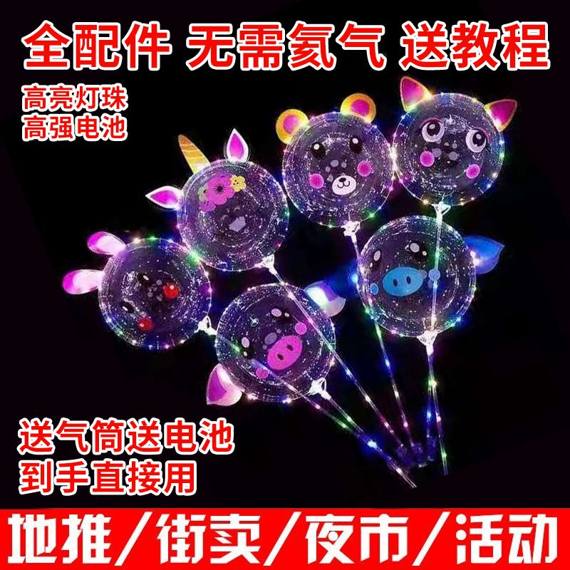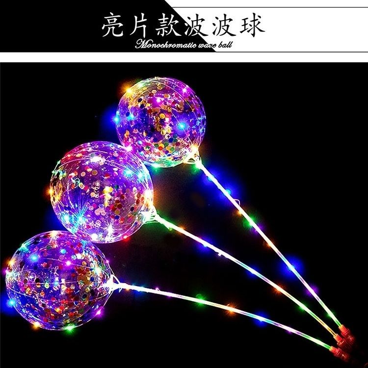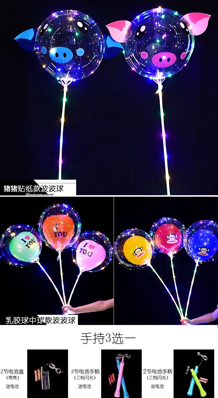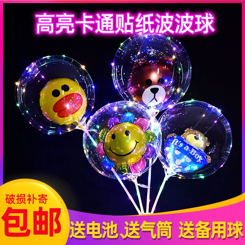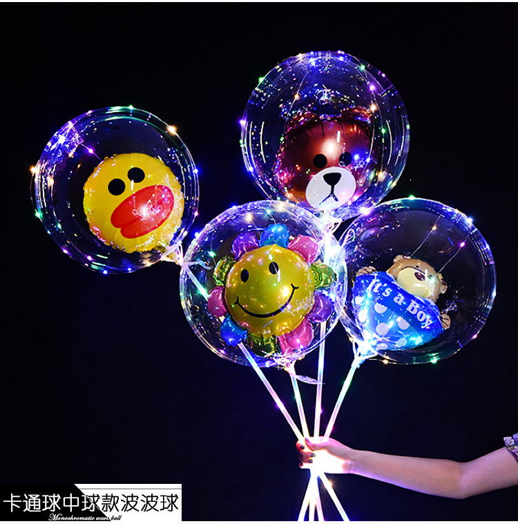 网红波波球透明带灯发光飘空夜光闪光地推街卖卡通儿童球中球批发