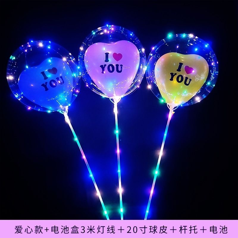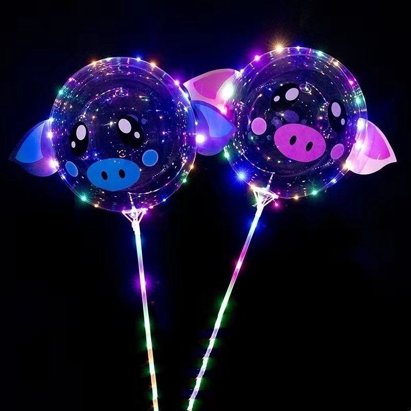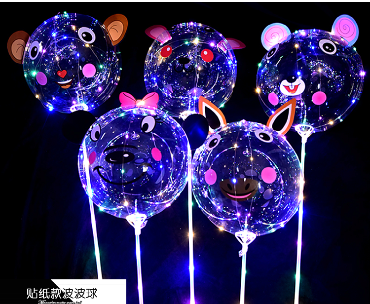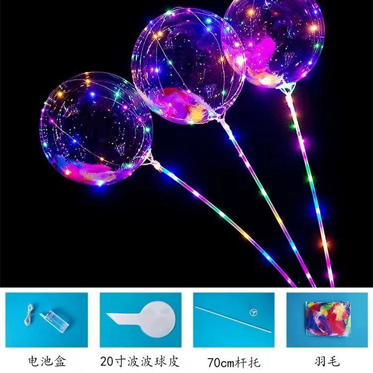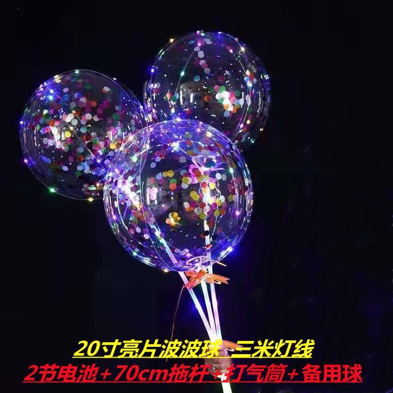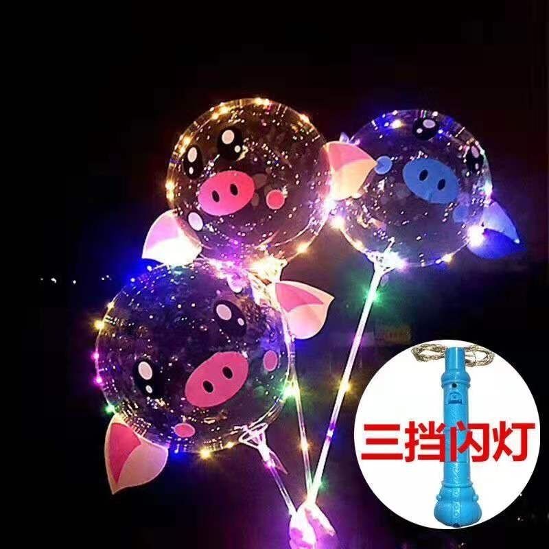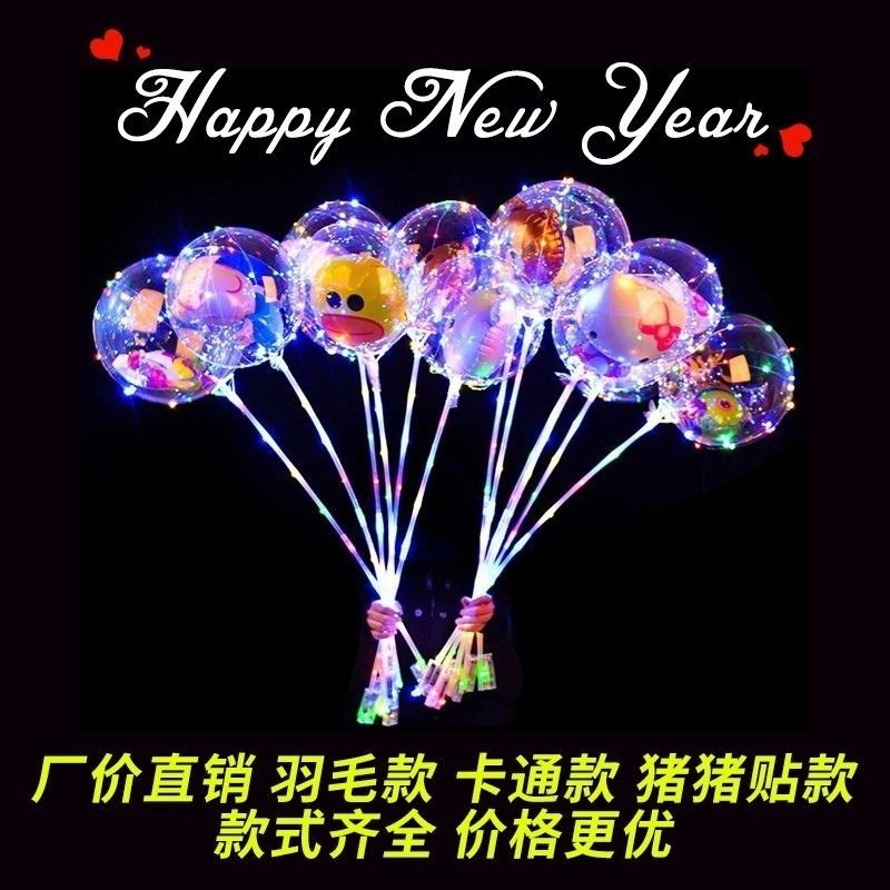 网红波波球透明带灯发光飘空夜光闪光地推街卖卡通儿童球中球批发