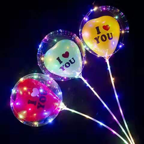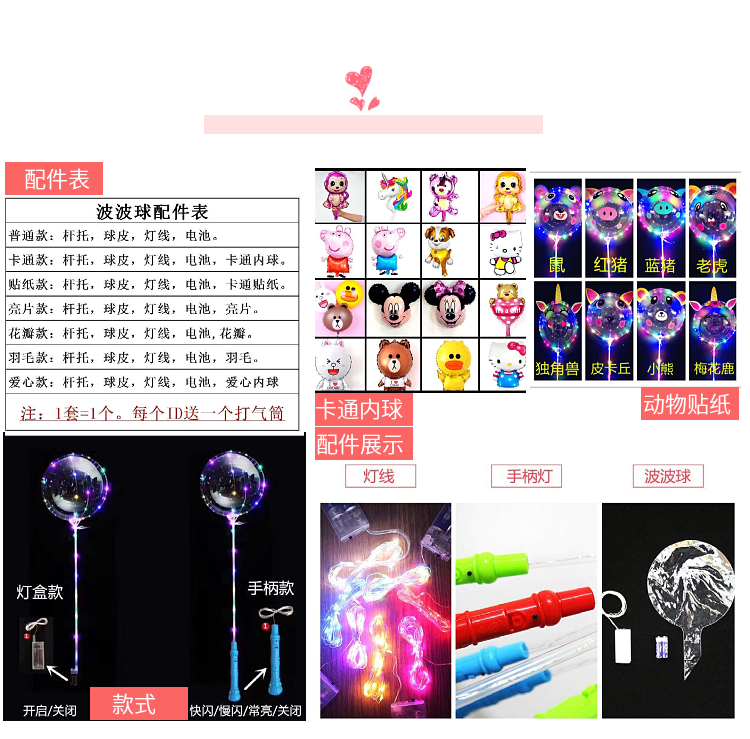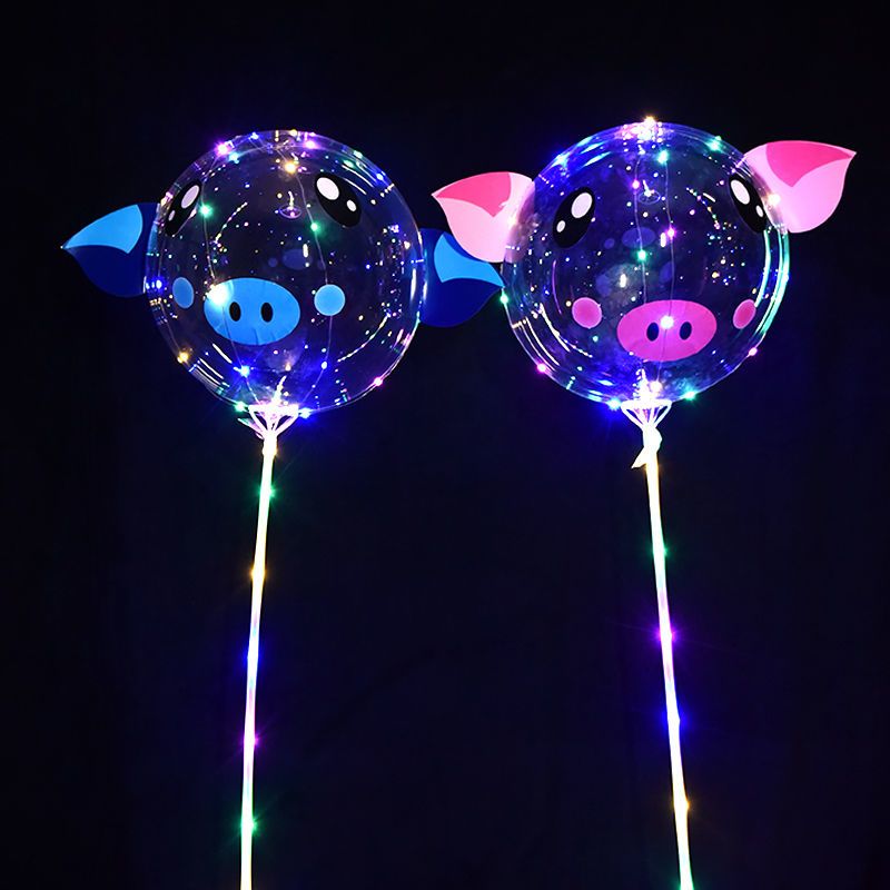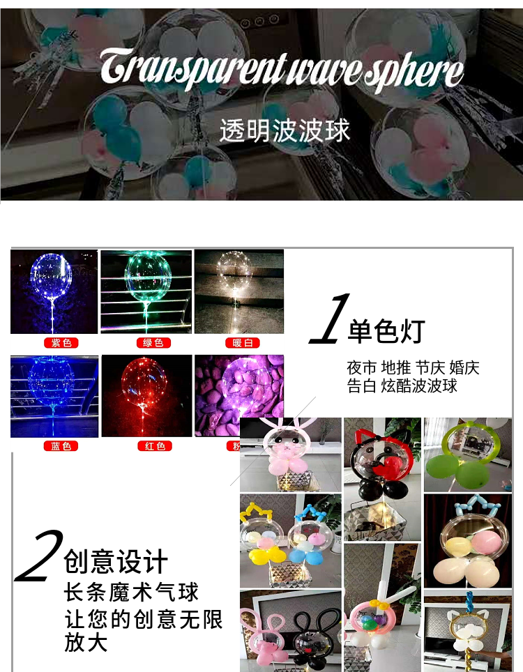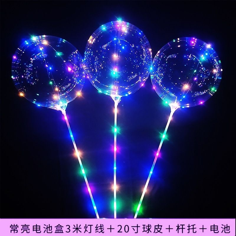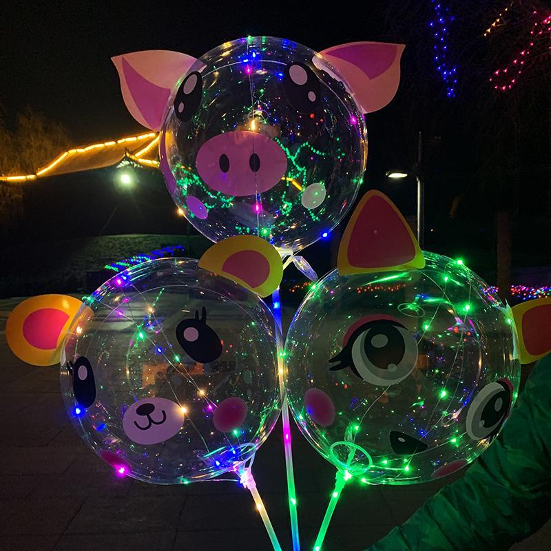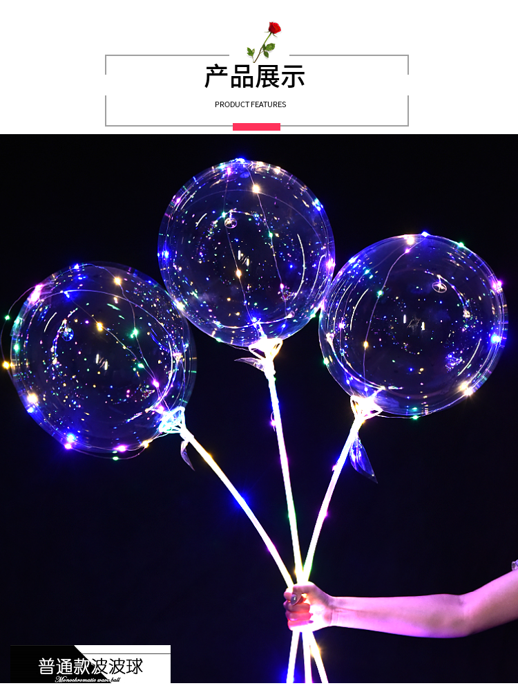 网红波波球透明带灯发光飘空夜光闪光地推街卖卡通儿童球中球批发