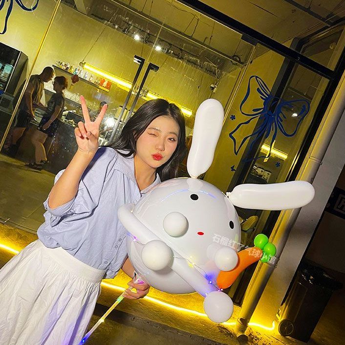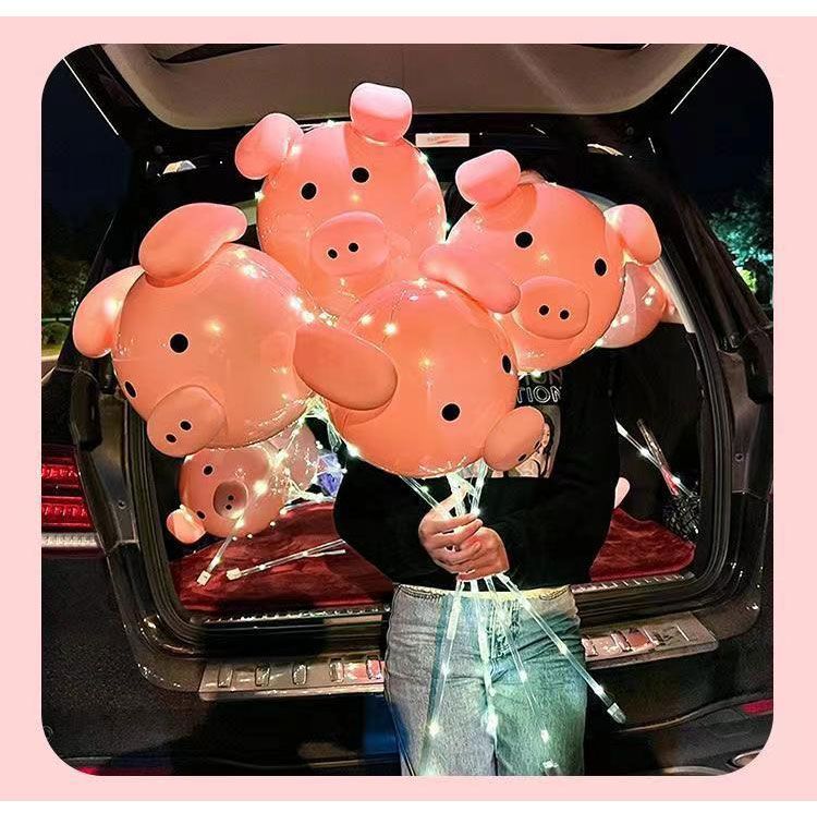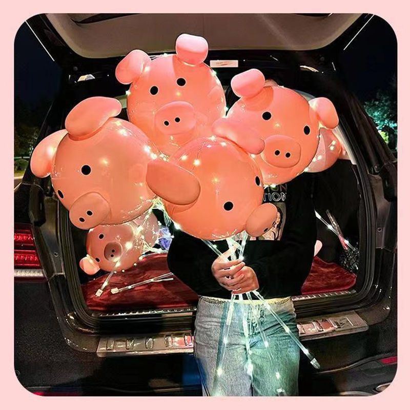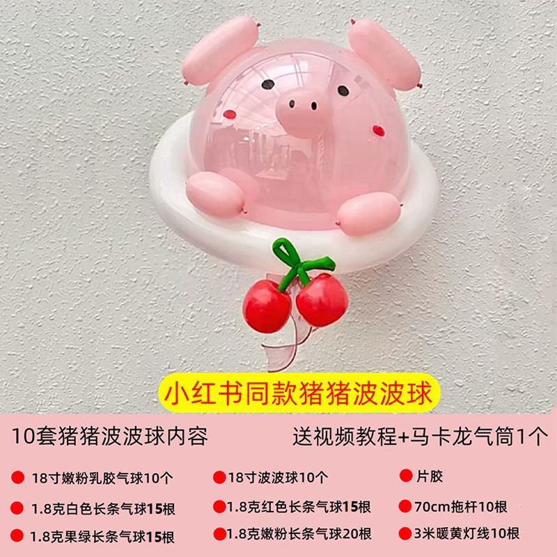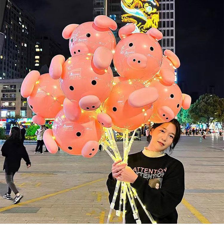 抖音同款超萌粉猪头波波球批发网红长条充气卡通波波球小商品地推