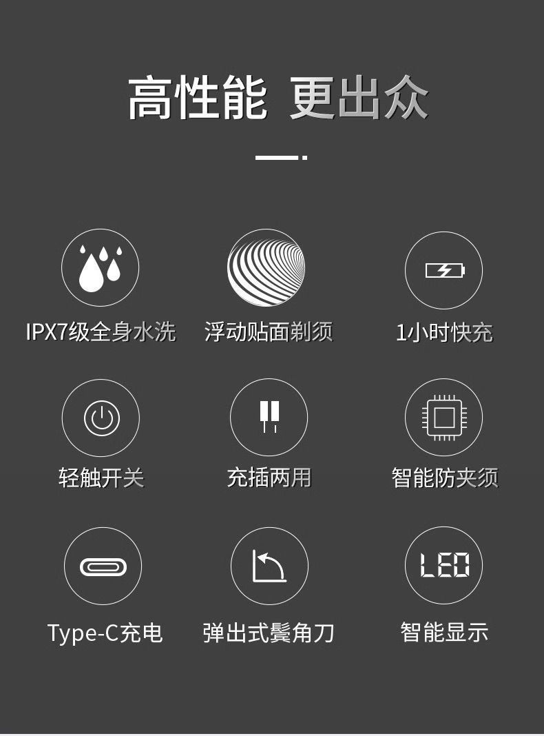 | [standard configuration] + storage box + customized nose hair trimmer + cutter head * 3(【标配】+收纳盒+定制鼻毛器+刀头*3) | USD $50.21 | 99999 piece available |