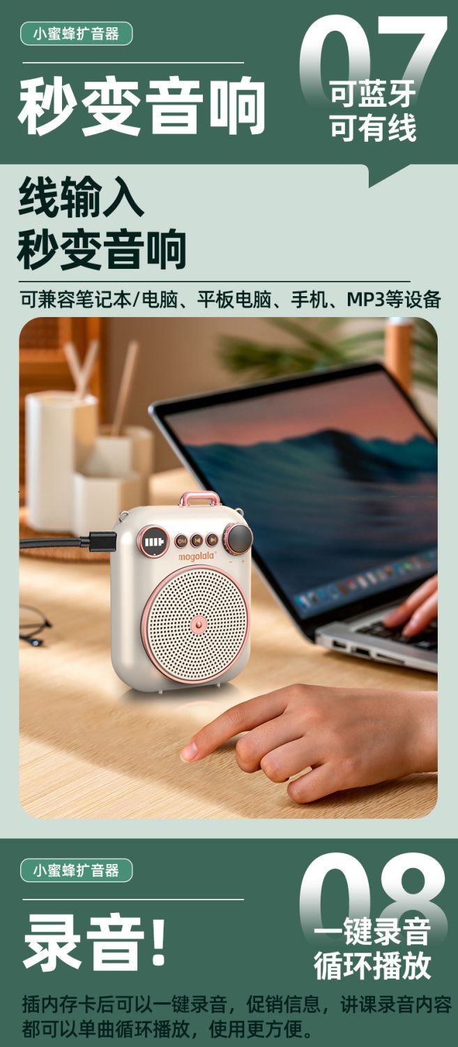 小蜜蜂扩音器教师讲课大喇叭学生上课录音喊话器户外演讲摆摊叫卖