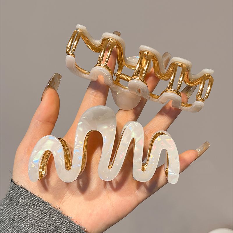 高级感醋酸波浪发夹女2024新款盘发抓夹大号鲨鱼夹头饰发卡轻奢