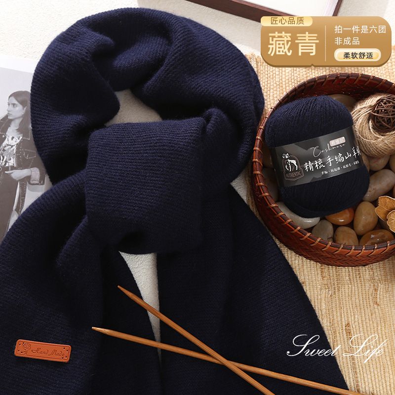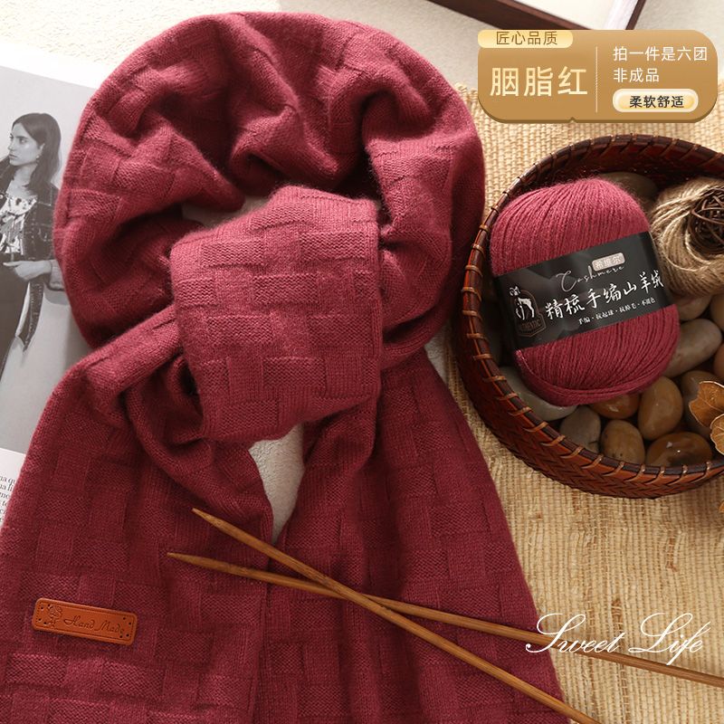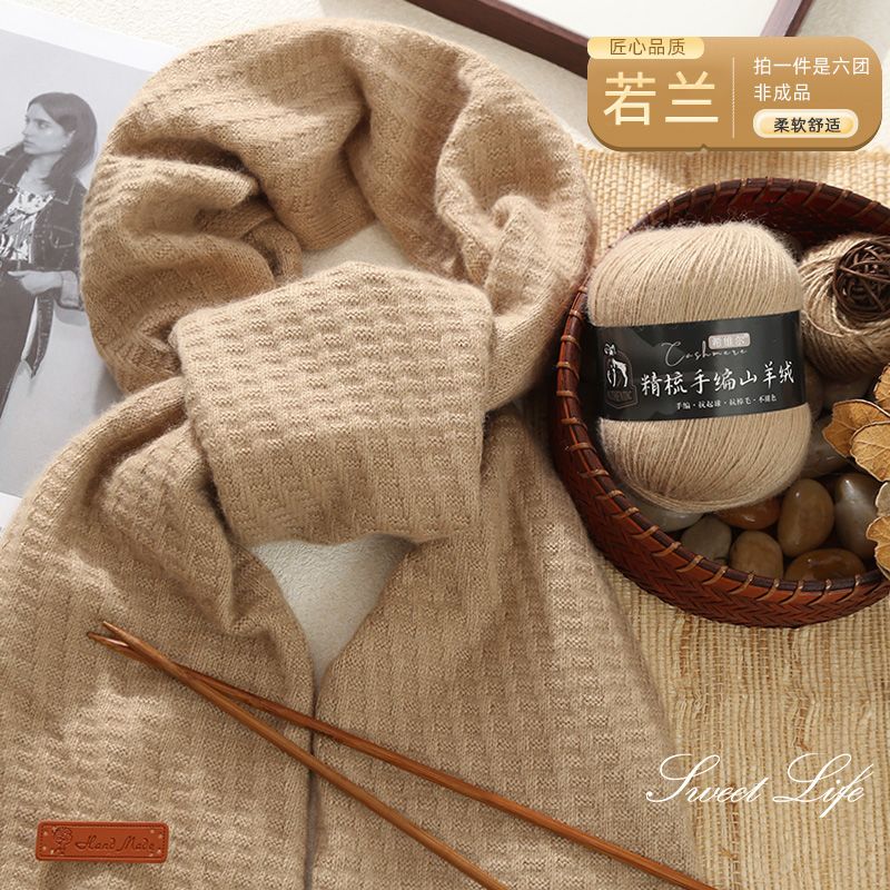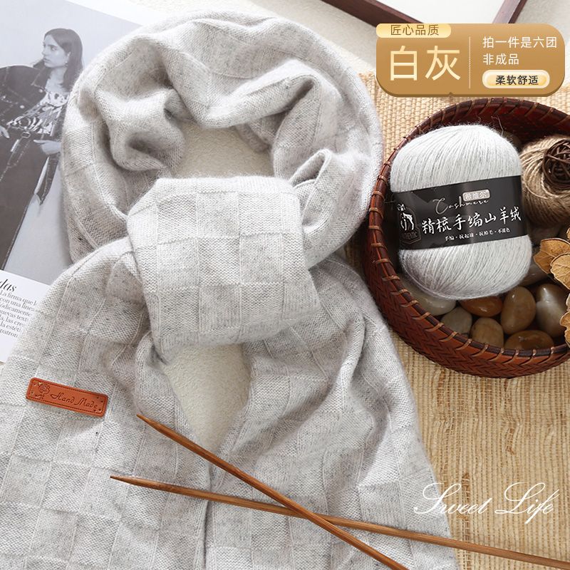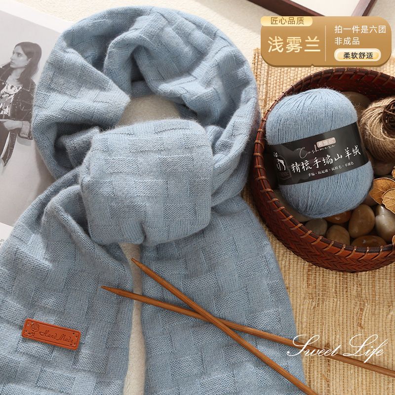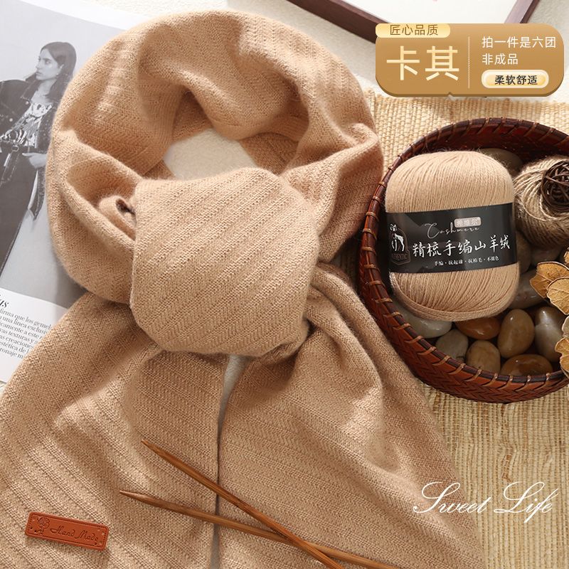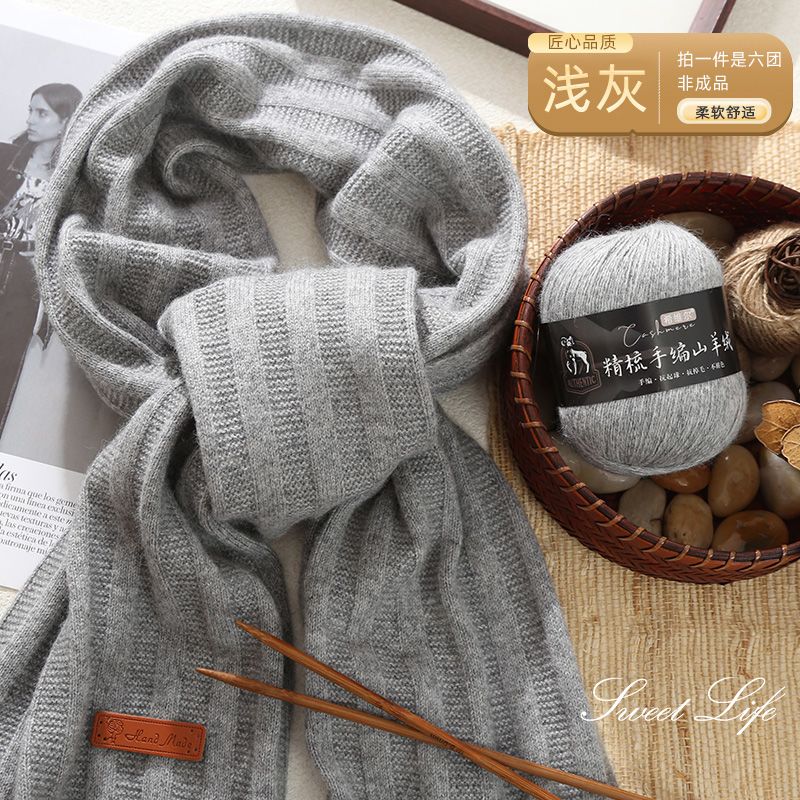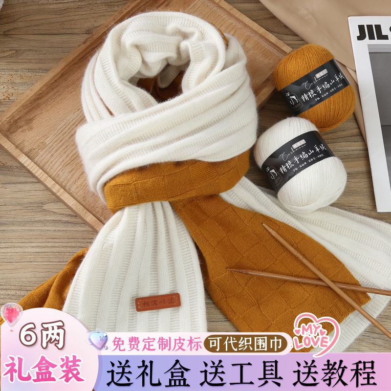 围巾毛线手工diy纯山羊绒中粗毛线团女自织围脖送男友编织材料包