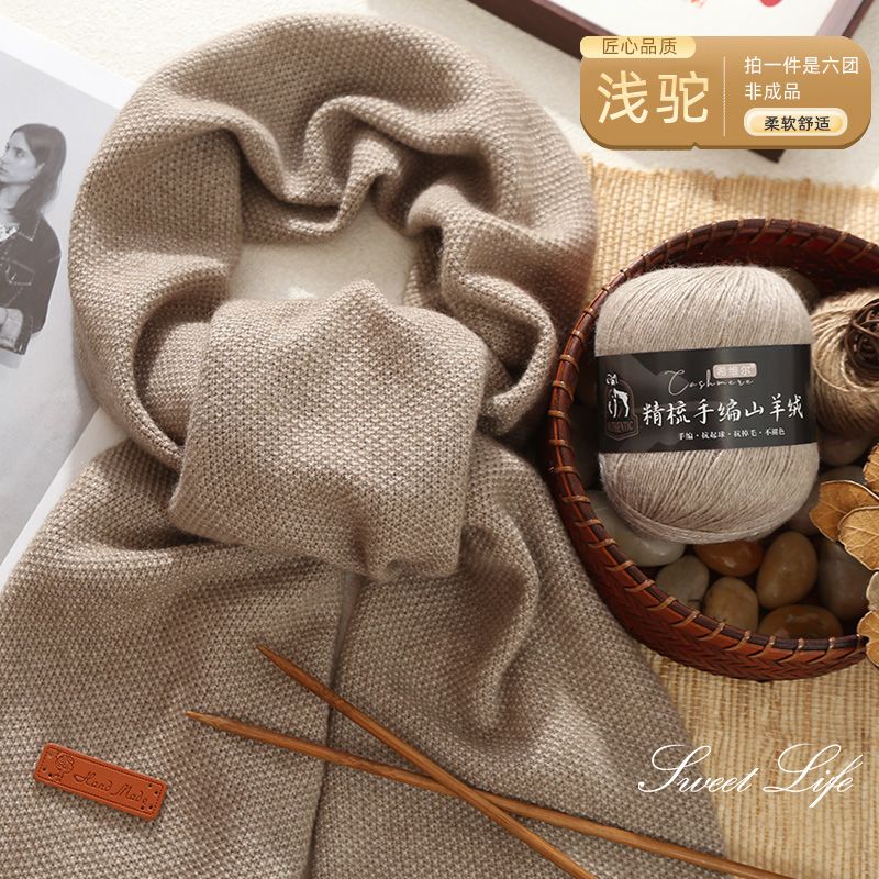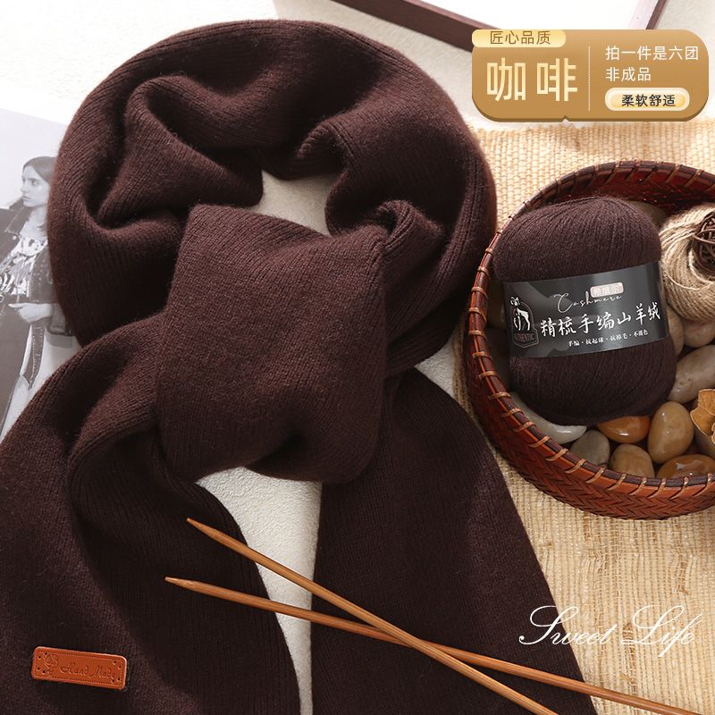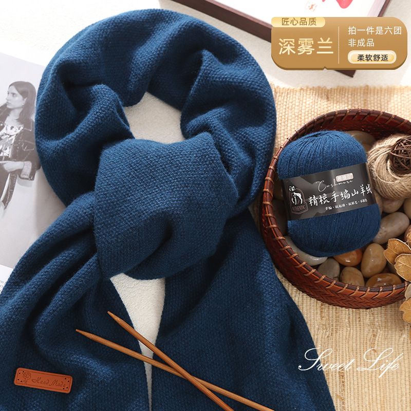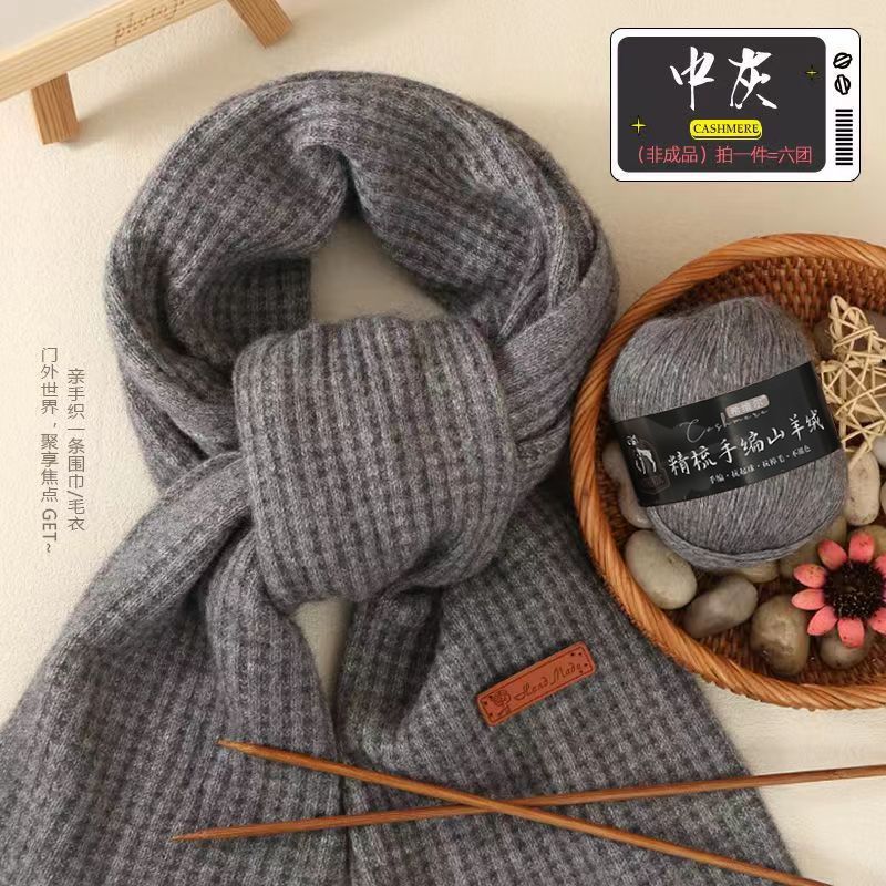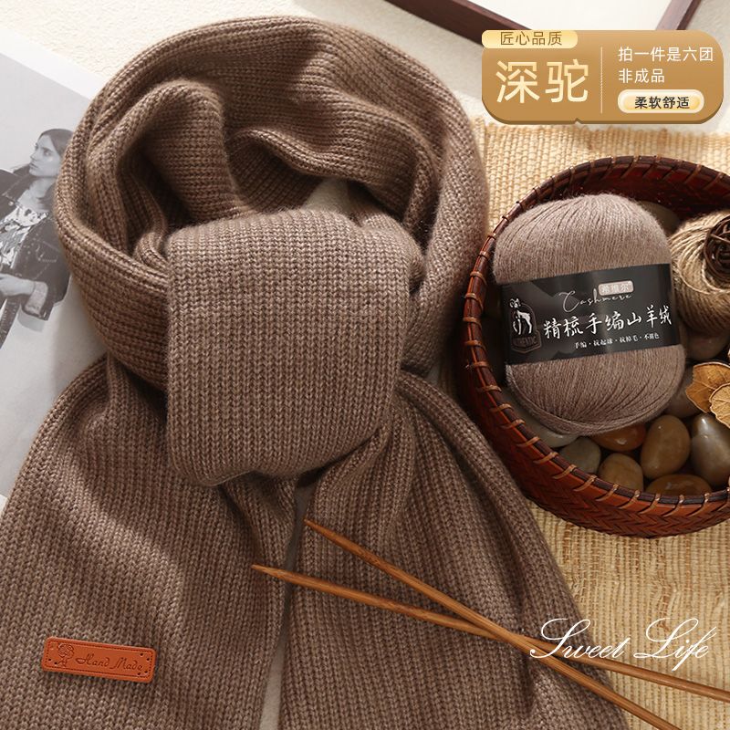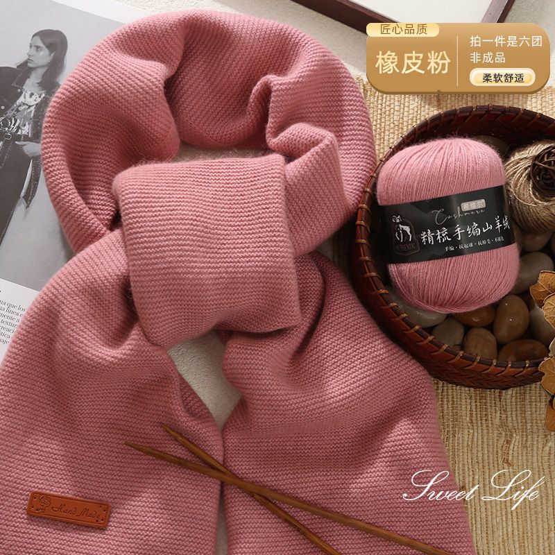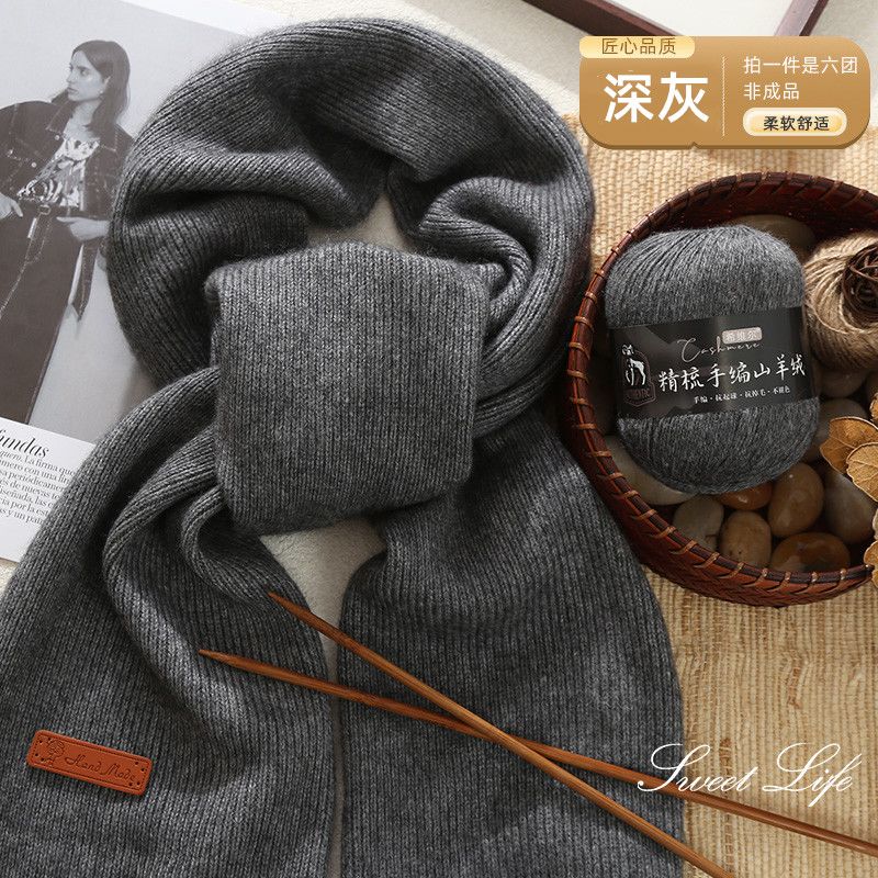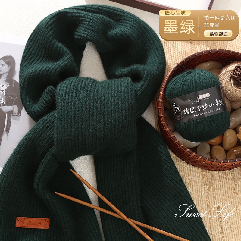 围巾毛线手工diy纯山羊绒中粗毛线团女自织围脖送男友编织材料包