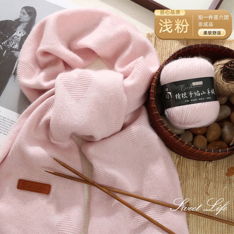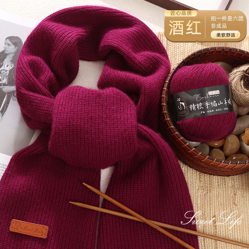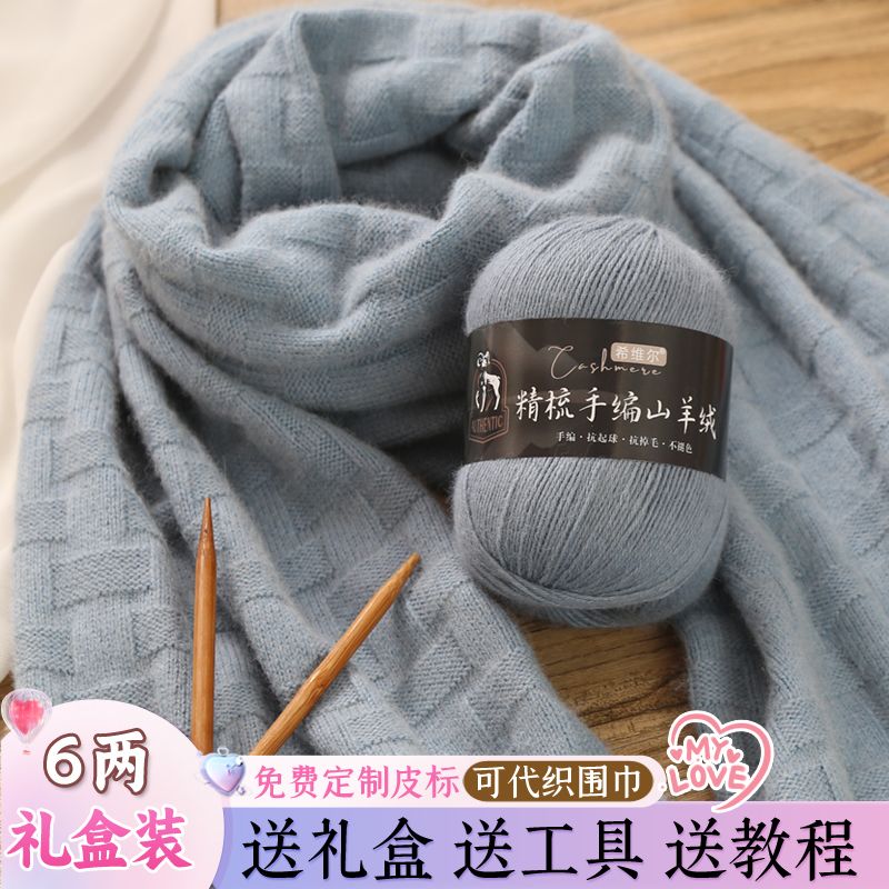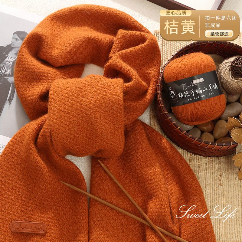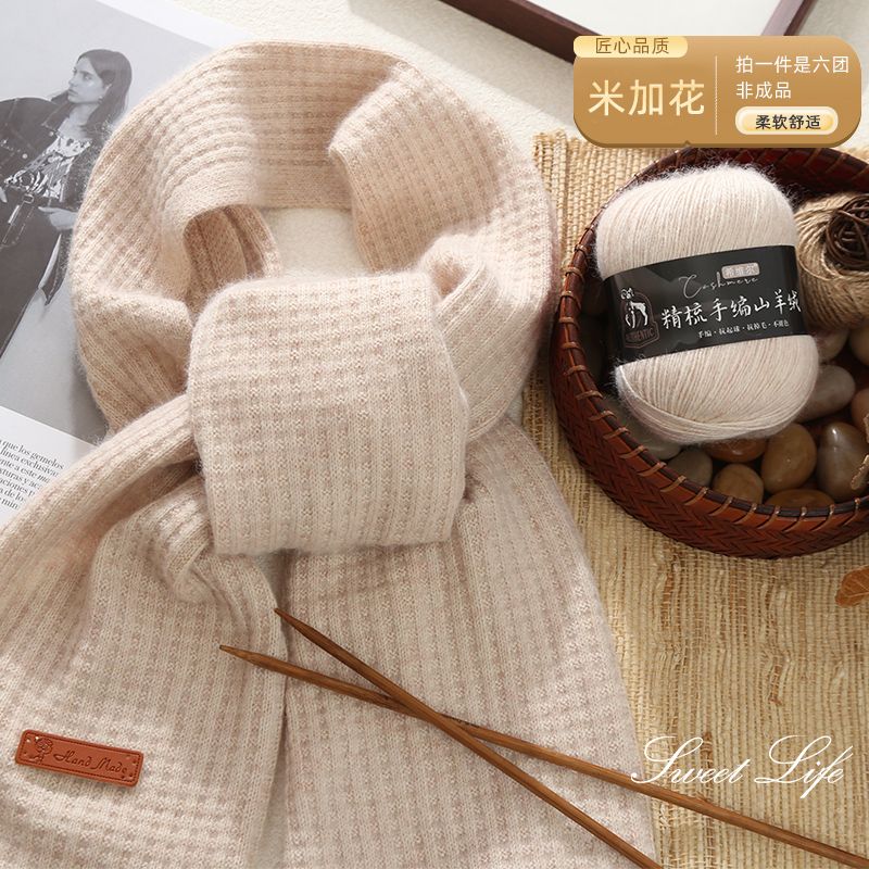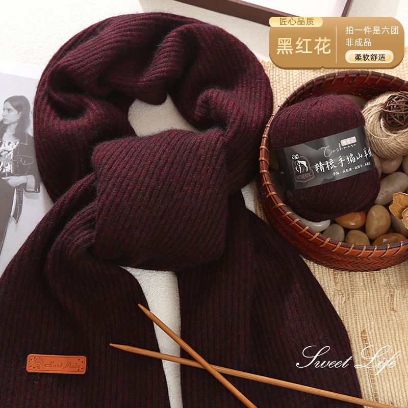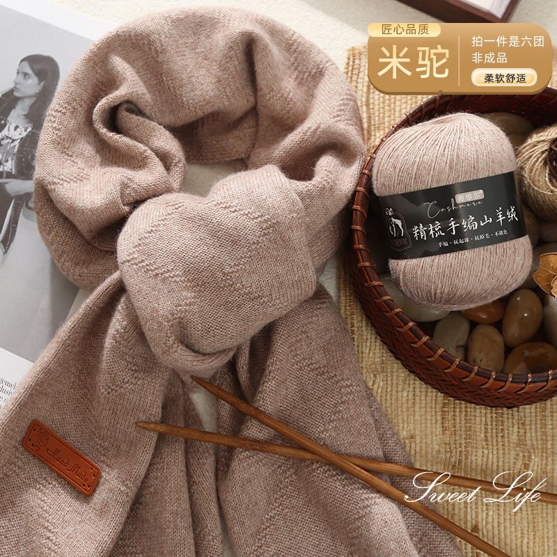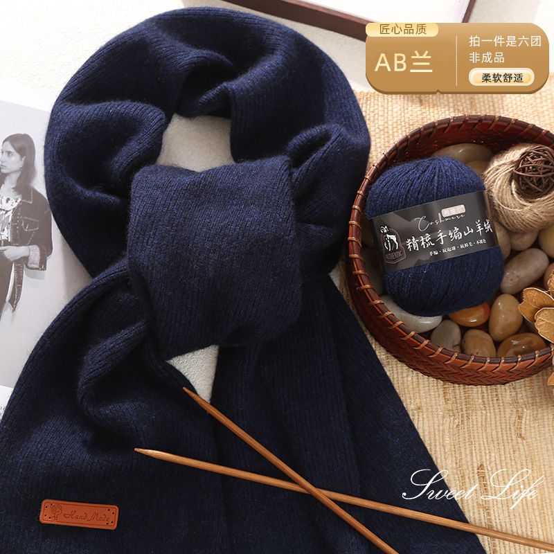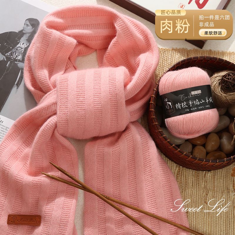 围巾毛线手工diy纯山羊绒中粗毛线团女自织围脖送男友编织材料包