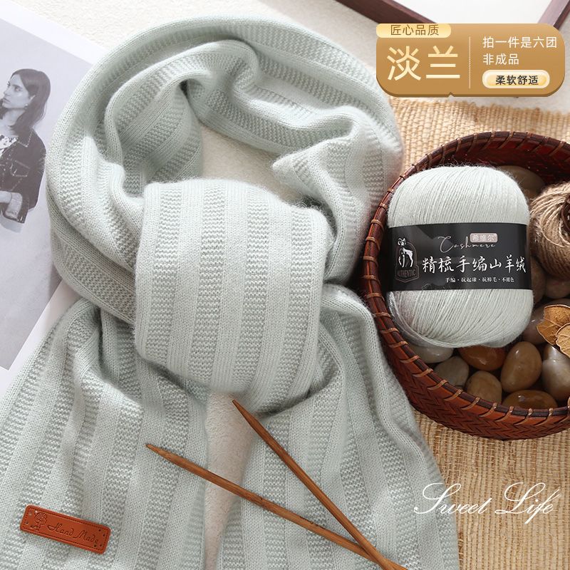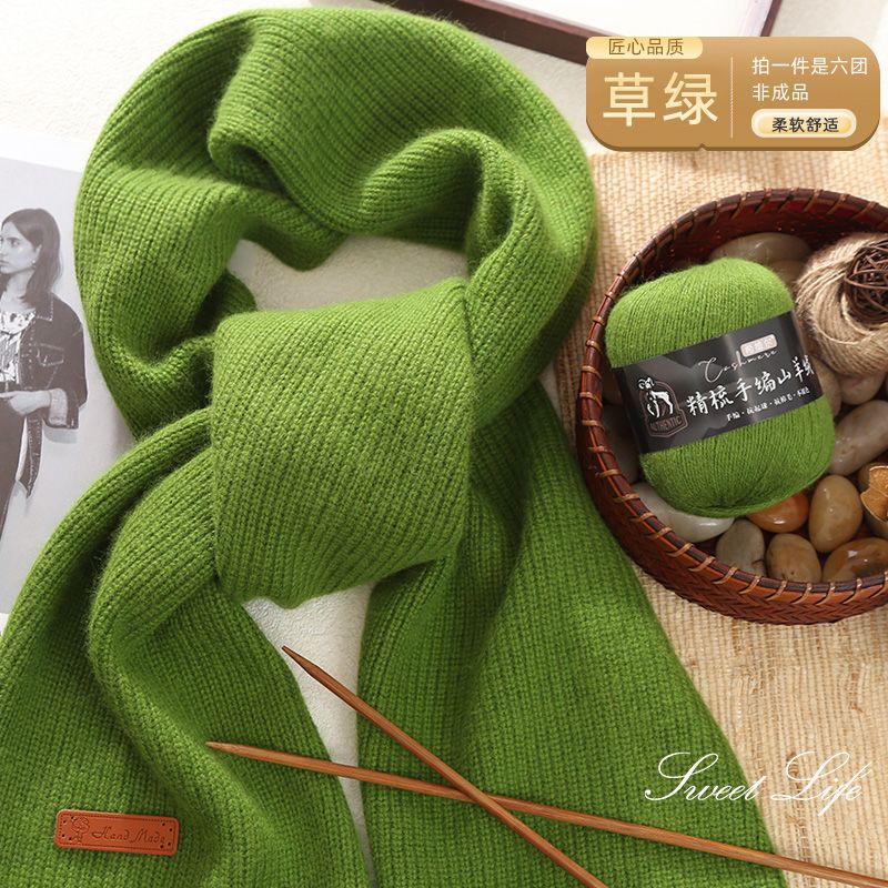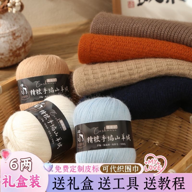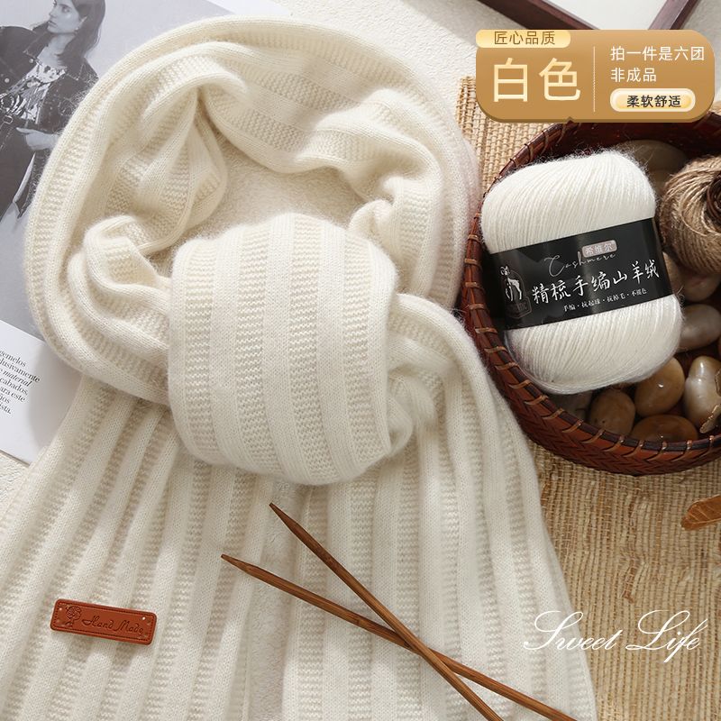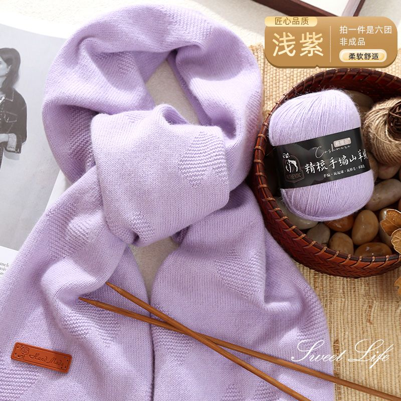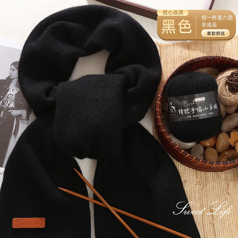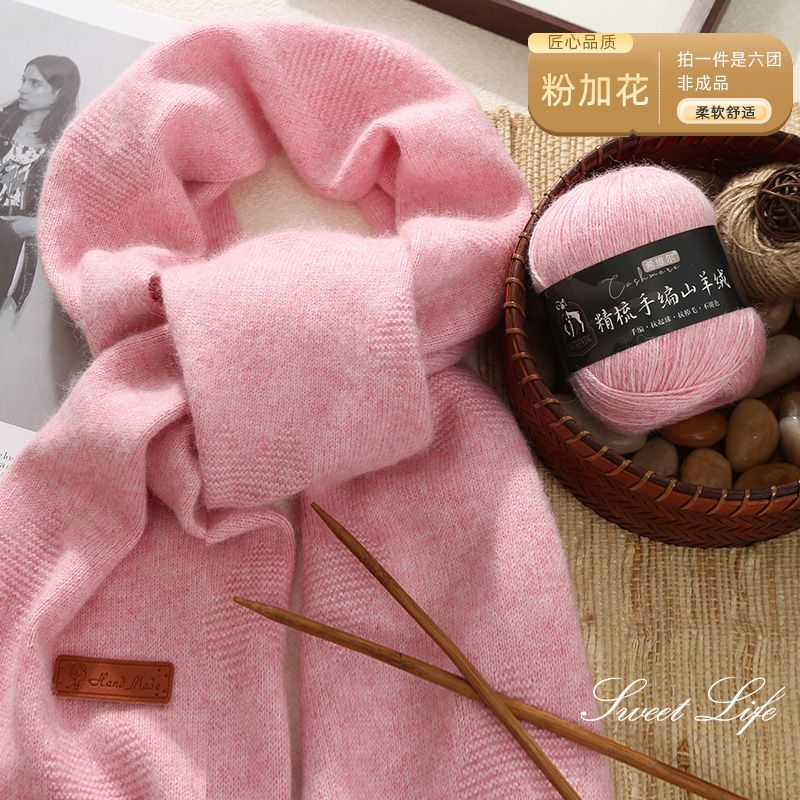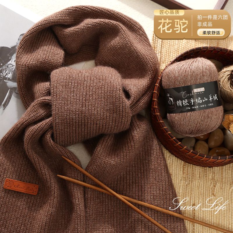 围巾毛线手工diy纯山羊绒中粗毛线团女自织围脖送男友编织材料包